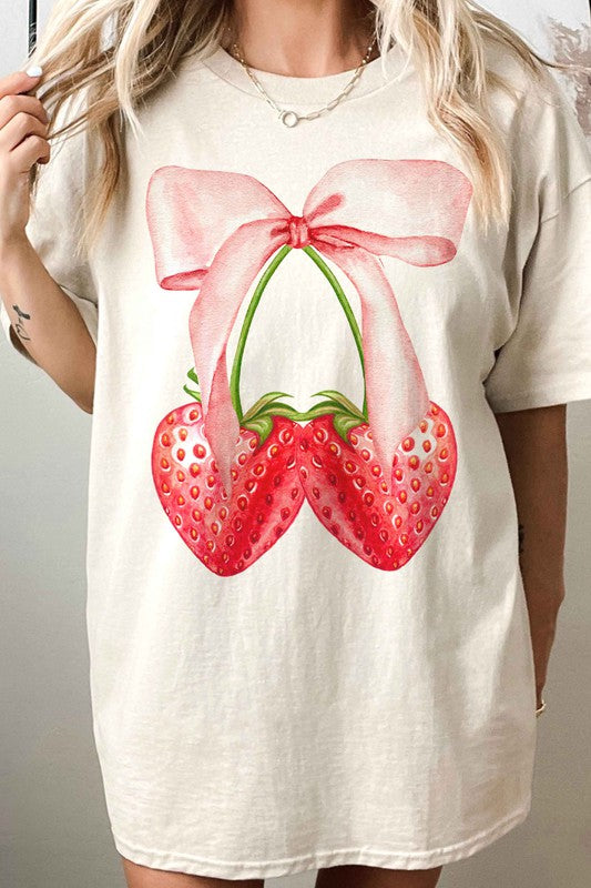 COQUETTE STRAWBERRY RIBBON OVERSIZED GRAPHIC TEE