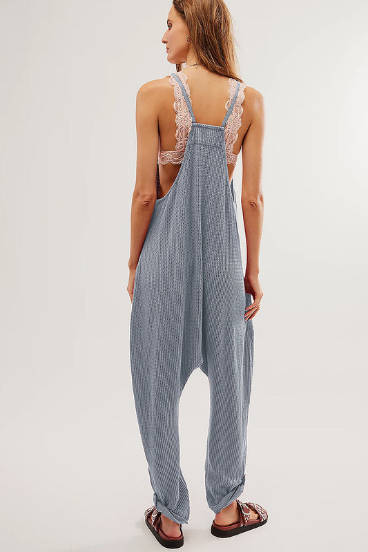 Gray Waffle Knit Spaghetti Straps Loose Fit Jumpsuit
