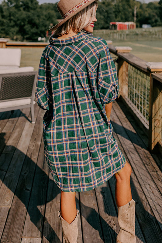 Green Oversized Plaid Half Sleeve Tunic Shirt