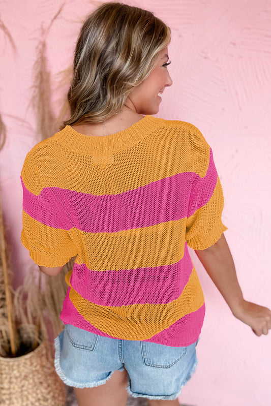 Orange Stripe Color Block Knitted T-shirt Sweater