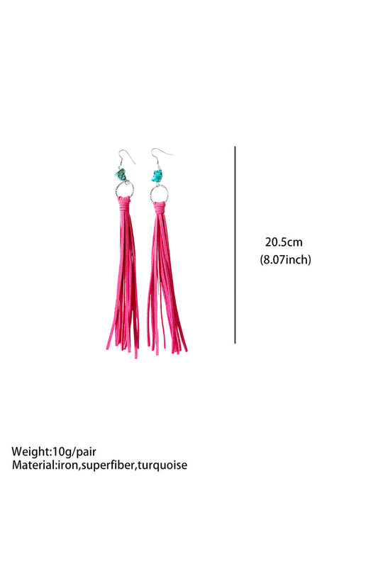Rose Red Western Turquoise O-ring Tassel Earrings