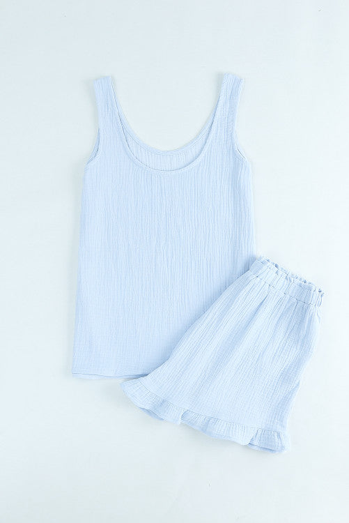Sky Blue 2-tone Colorblock Patchwork Corded 2pcs Outfit