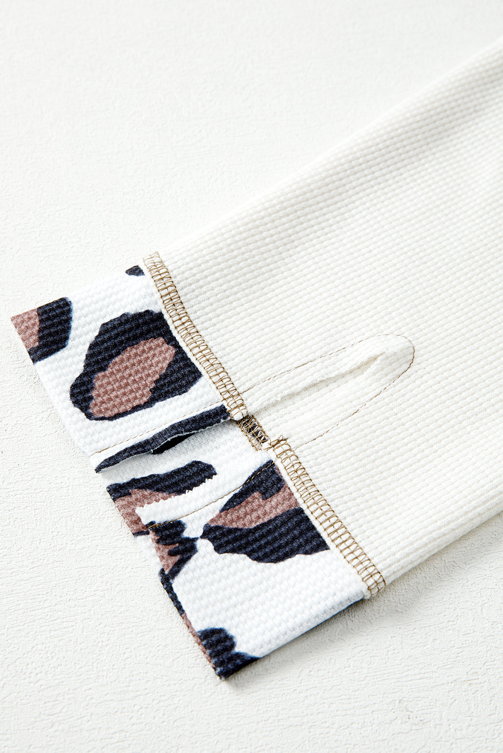 Mixed fabric textures elevate this leopard print zip up hoodie with modern appeal.