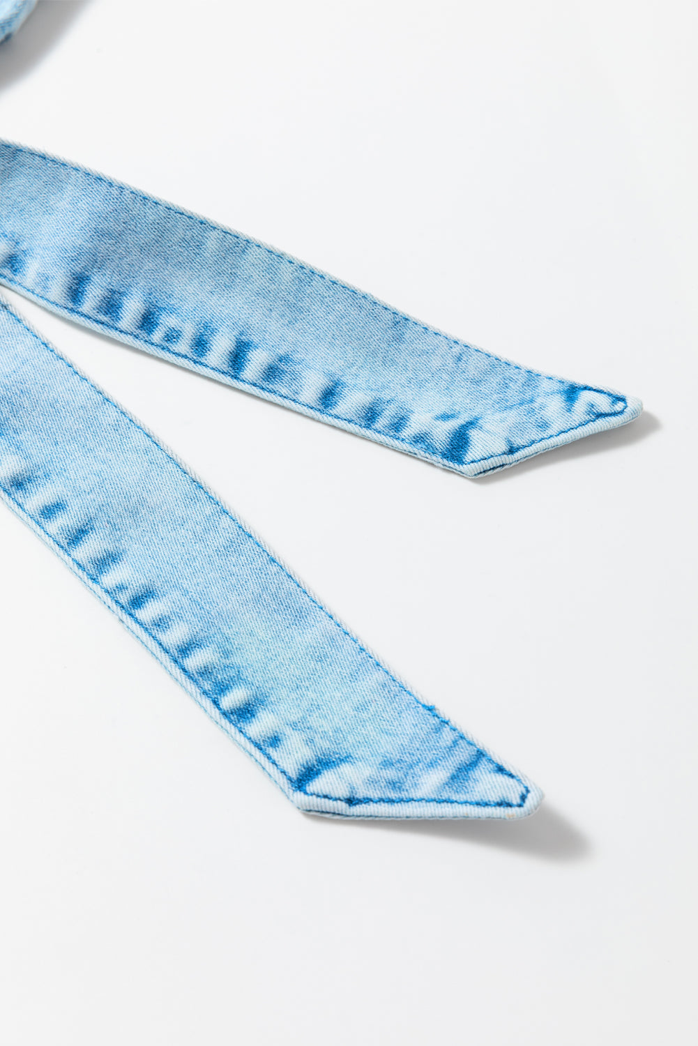 Beau Blue Spaghetti Straps Belted Denim Romper