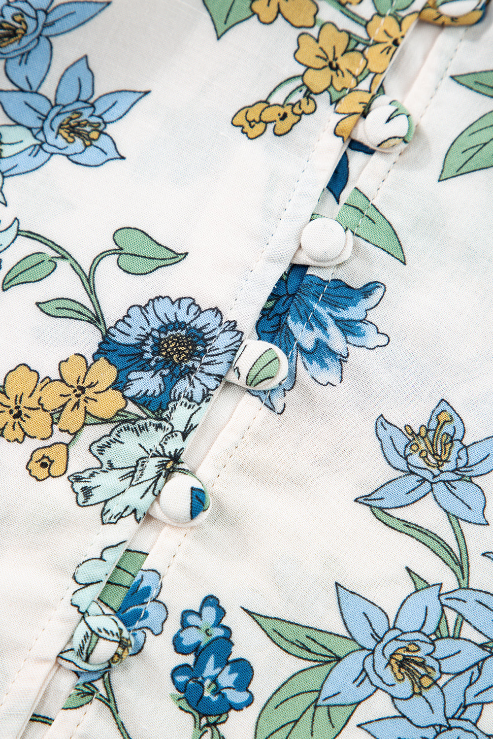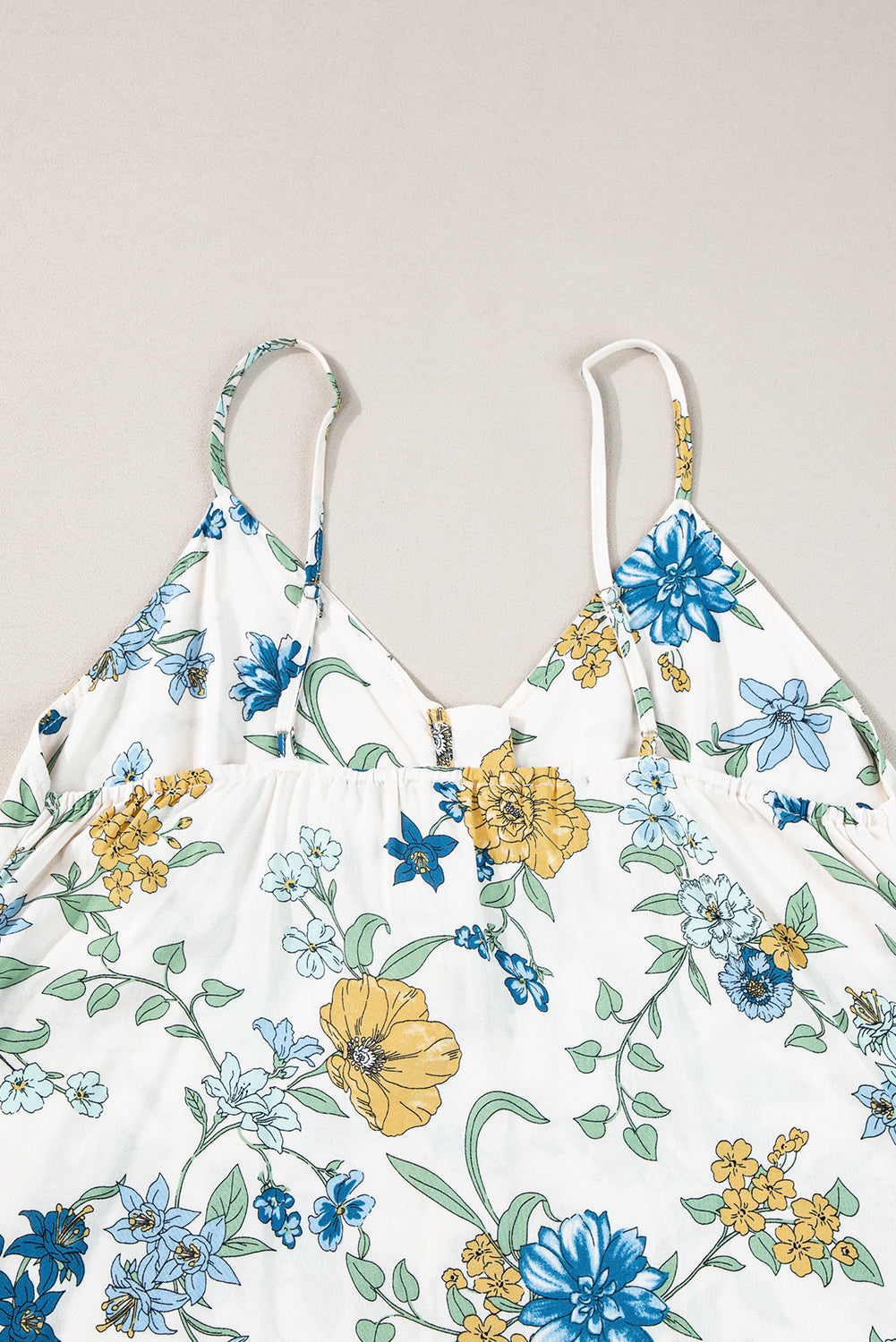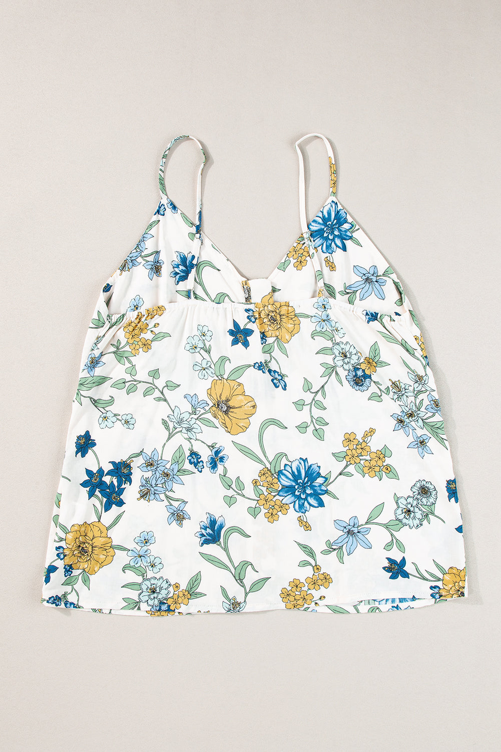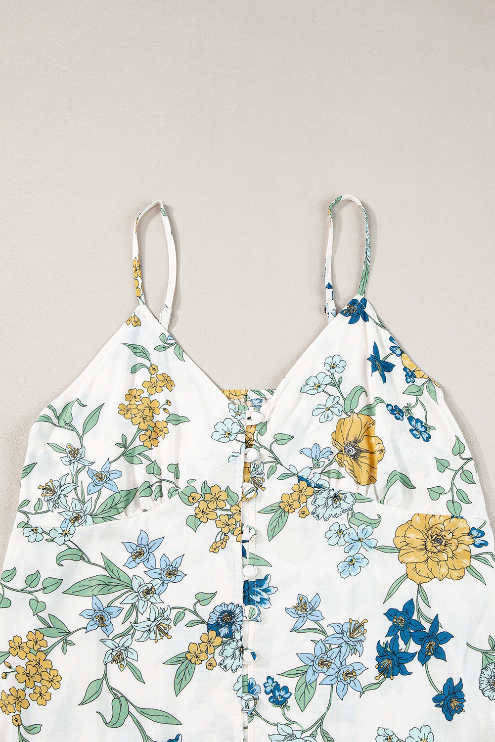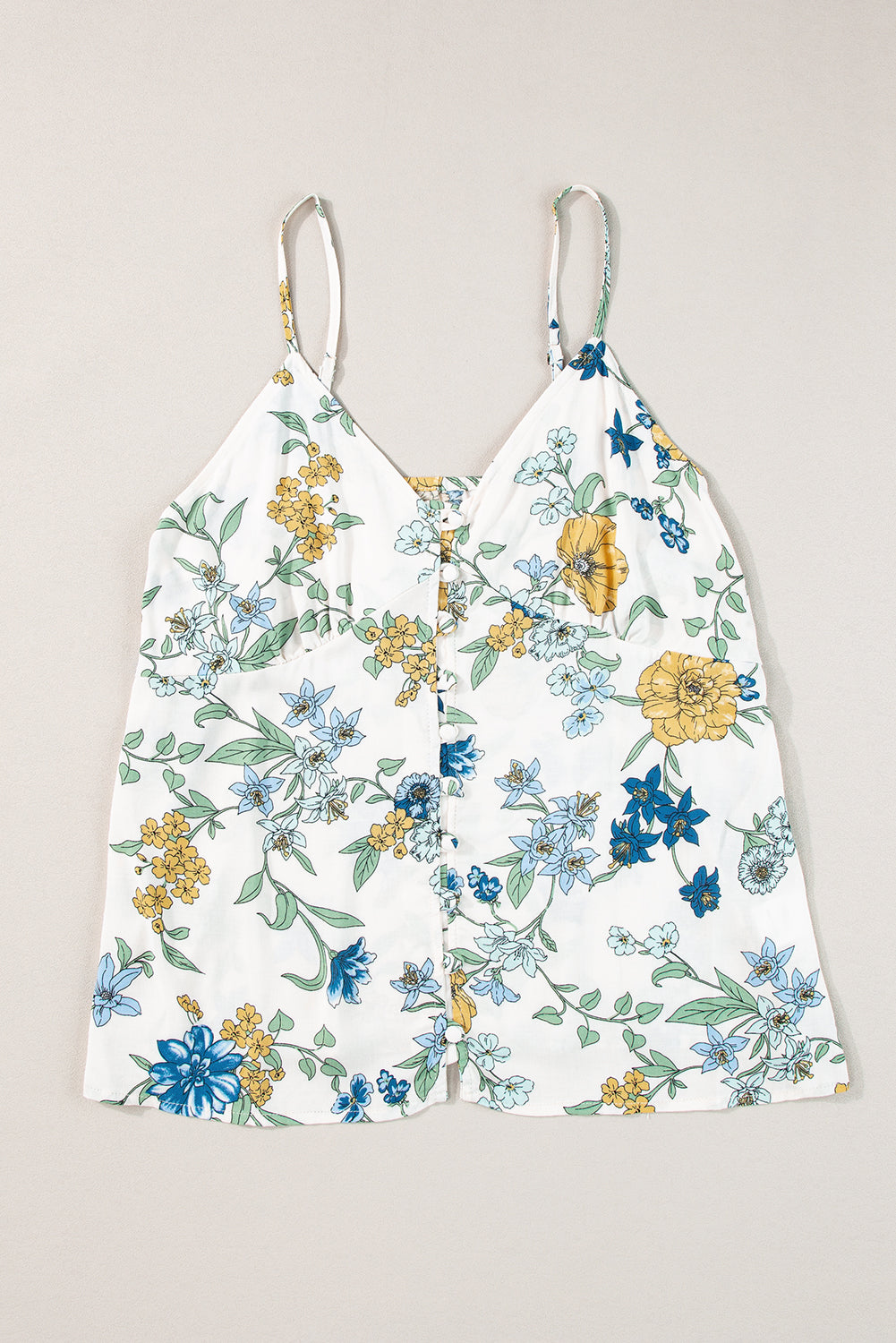 Beige Floral Buttoned Spaghetti Straps Tank Top