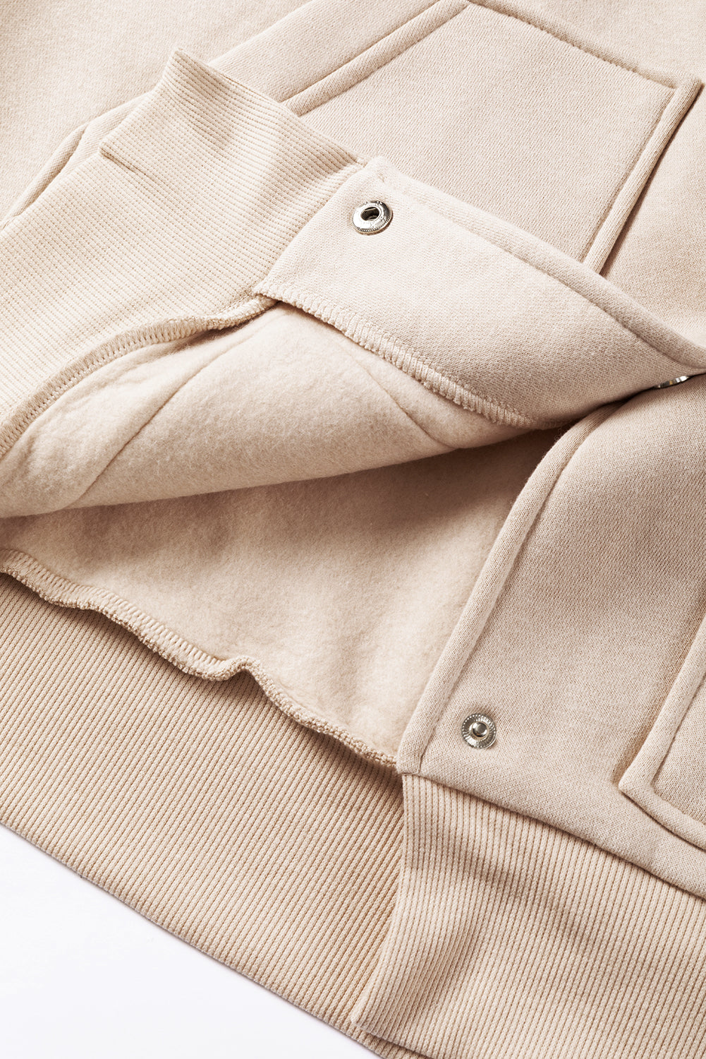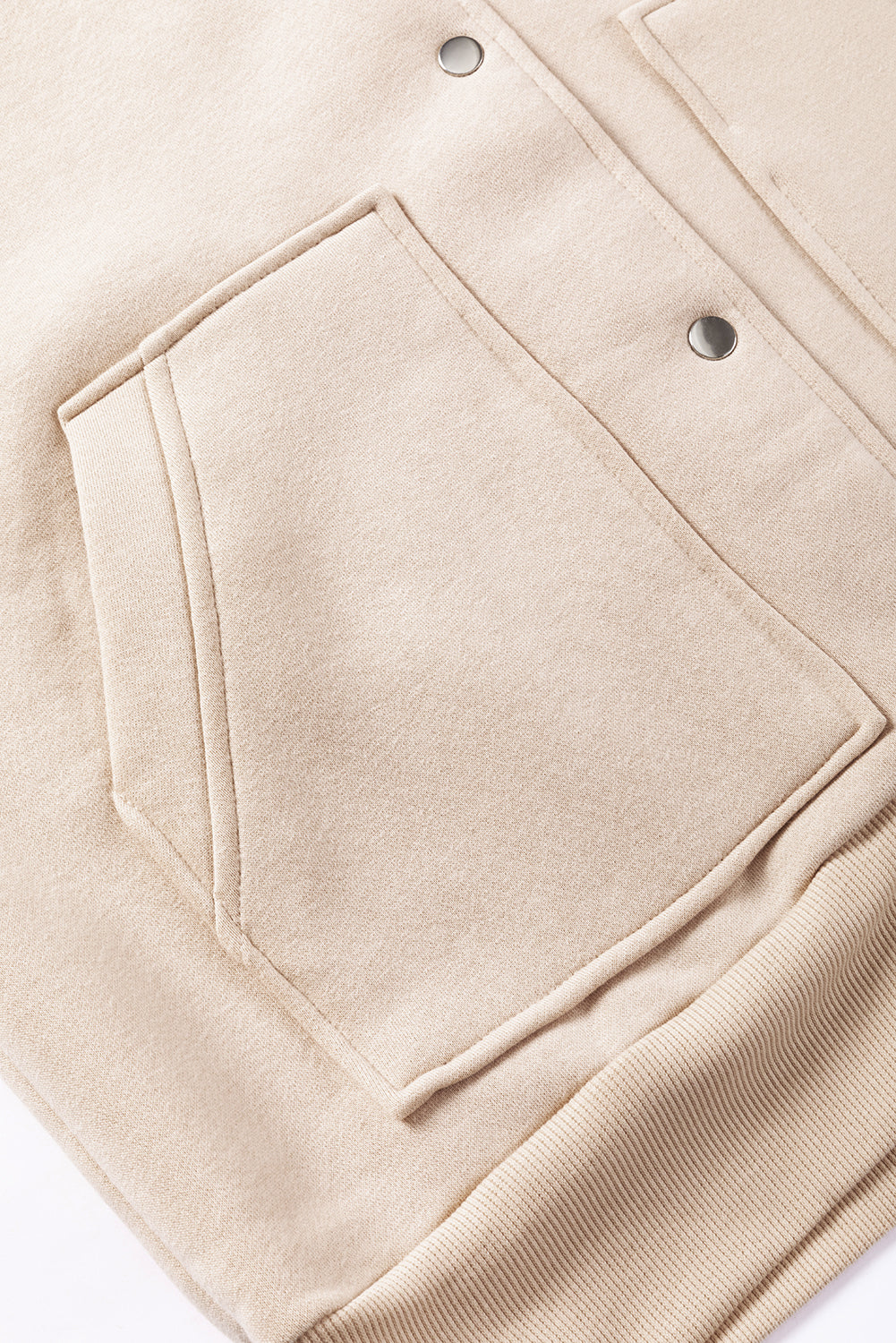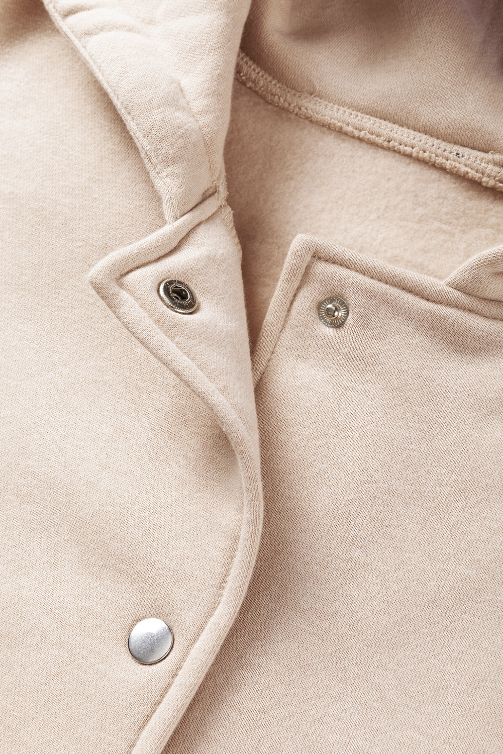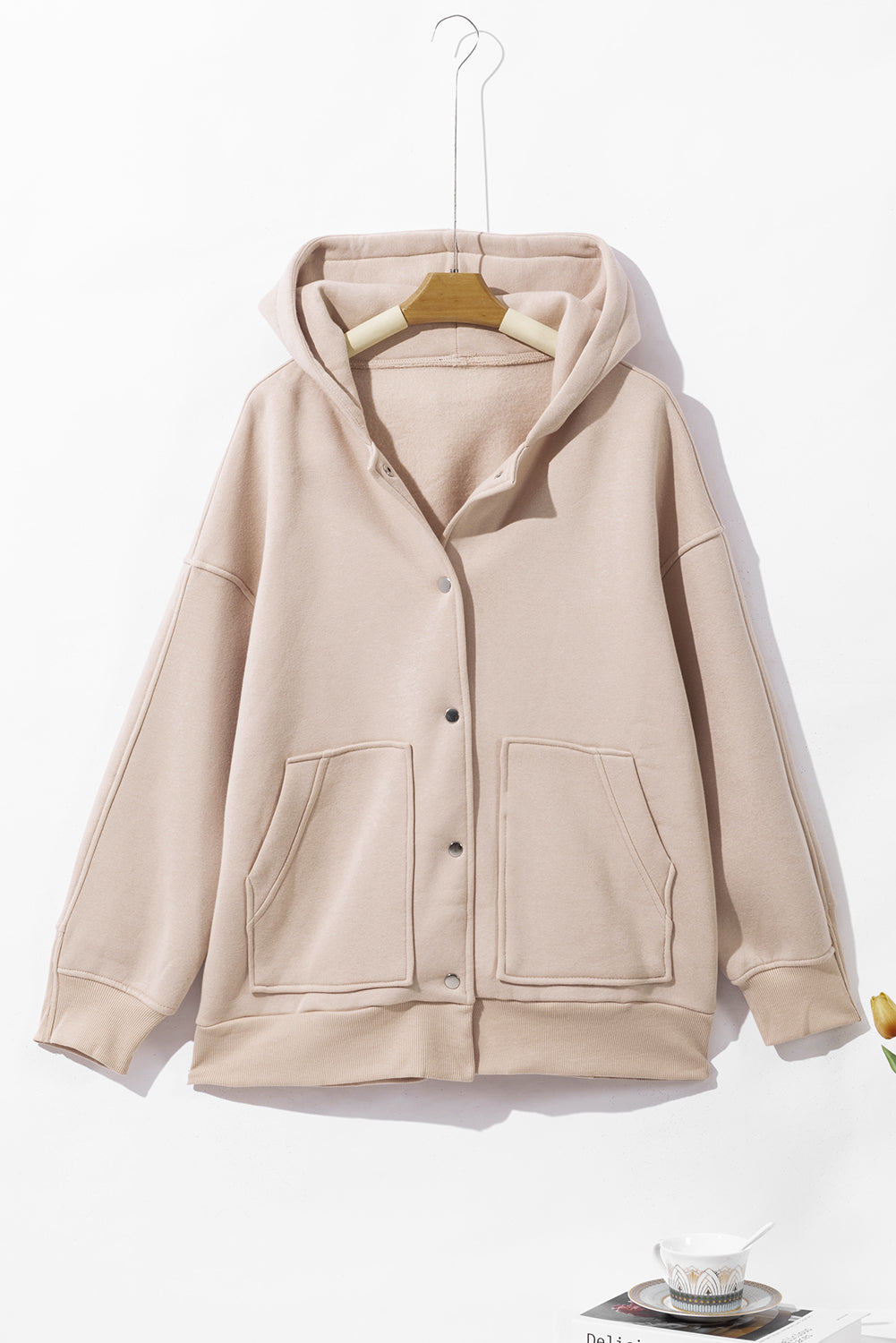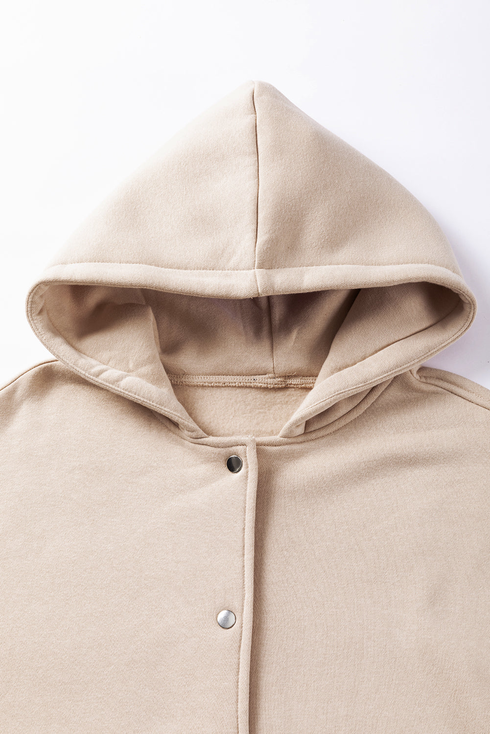 Beige Solid Color Pocketed Button Up Loose Hoodie