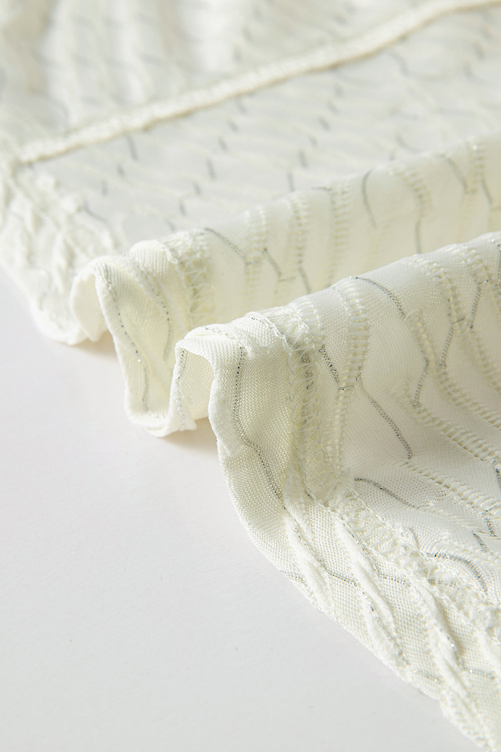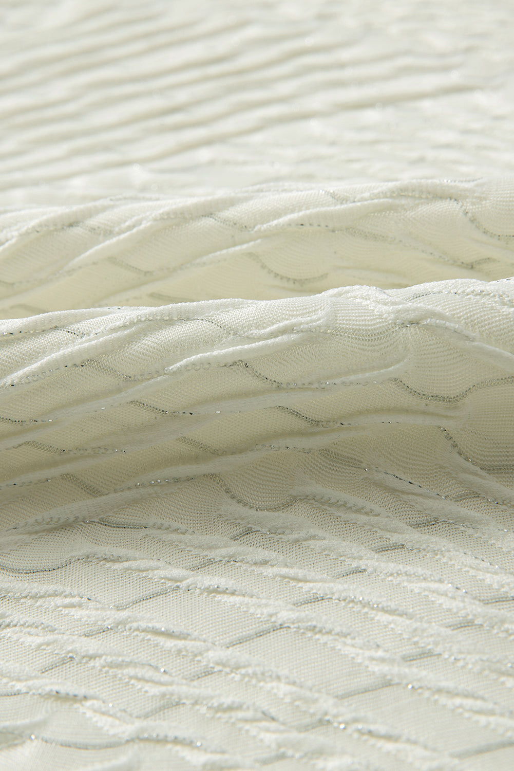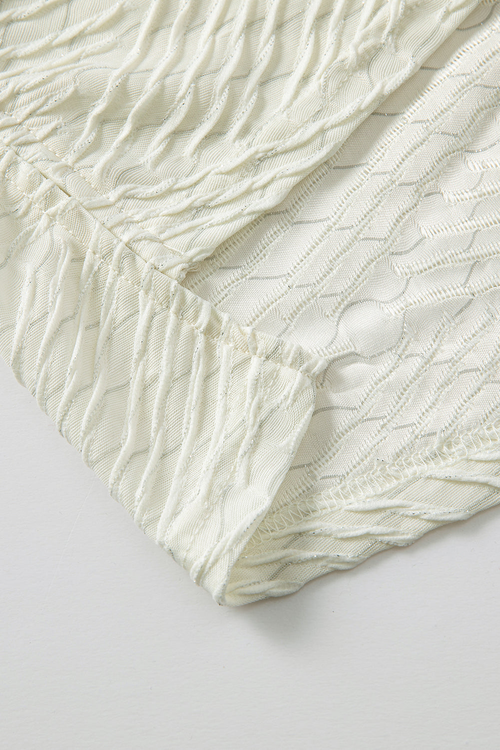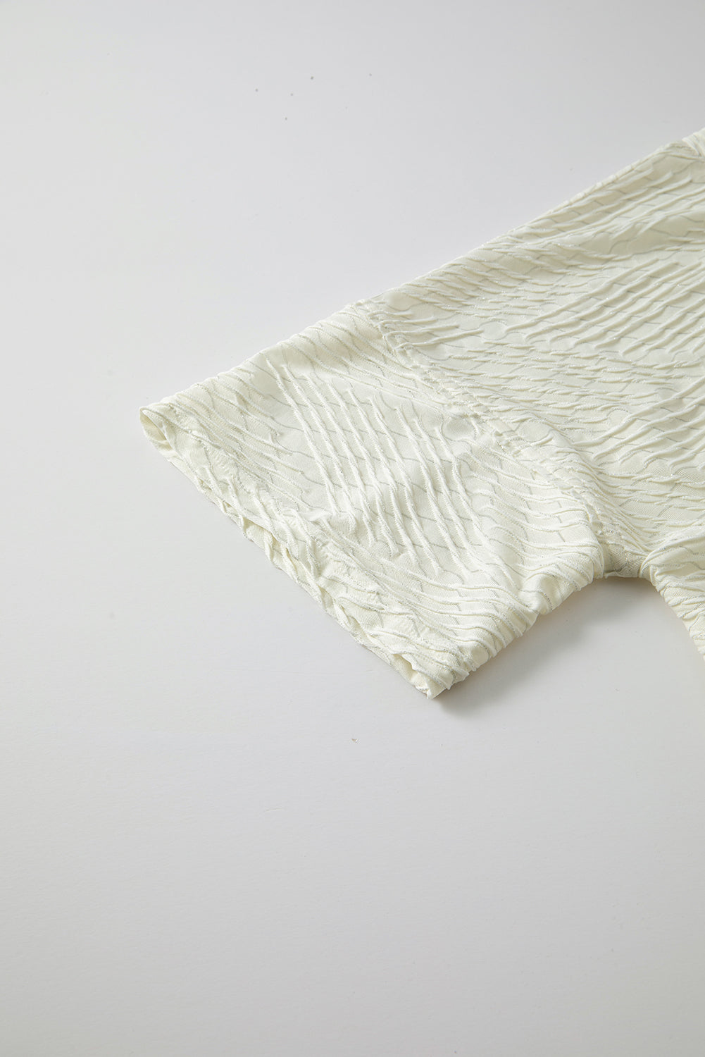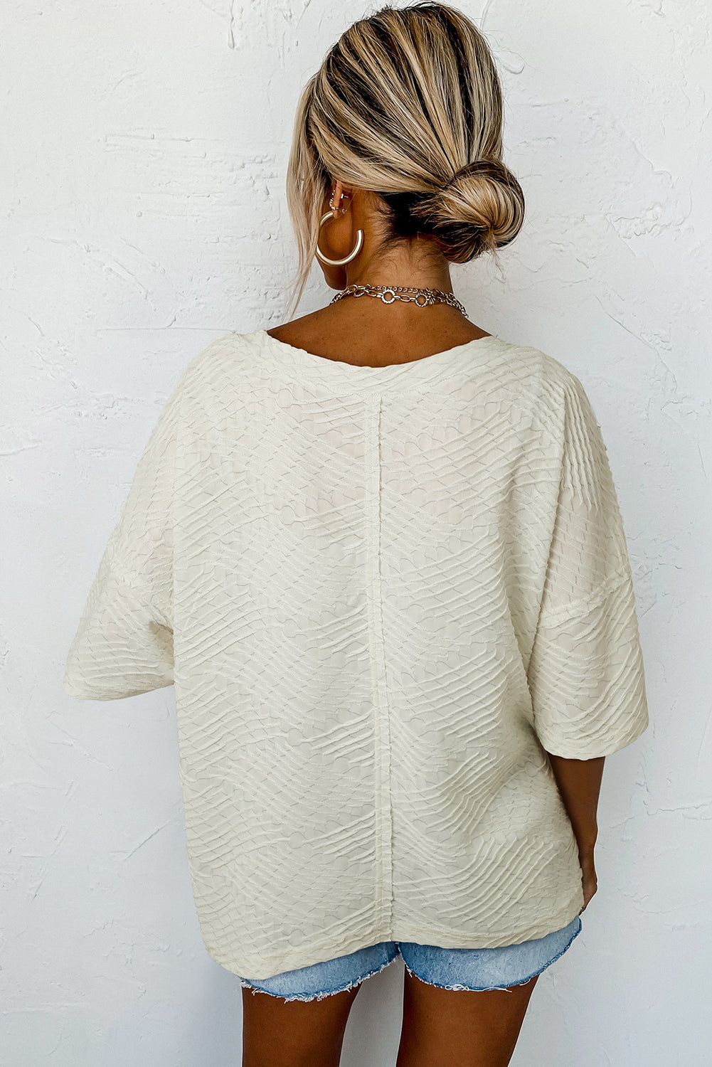 Beige V Neck Textured Split Hem Oversized Top