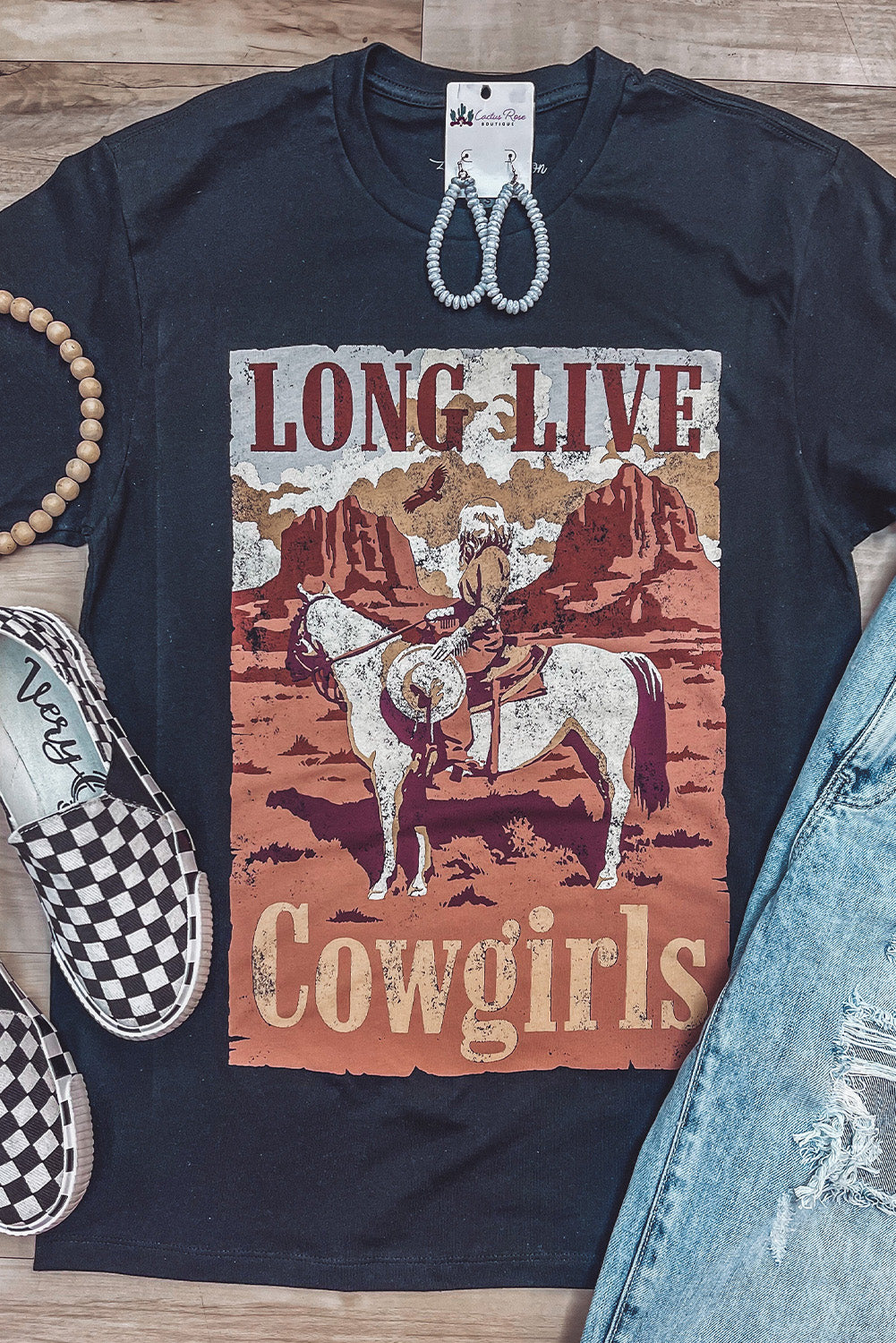 Black LONG LIVE Cowgirls Graphic Print T Shirt