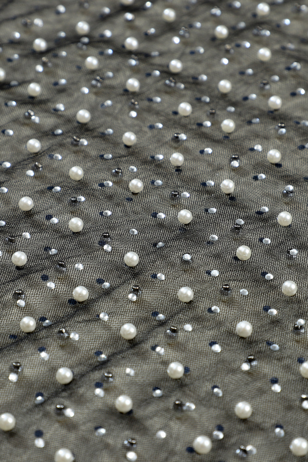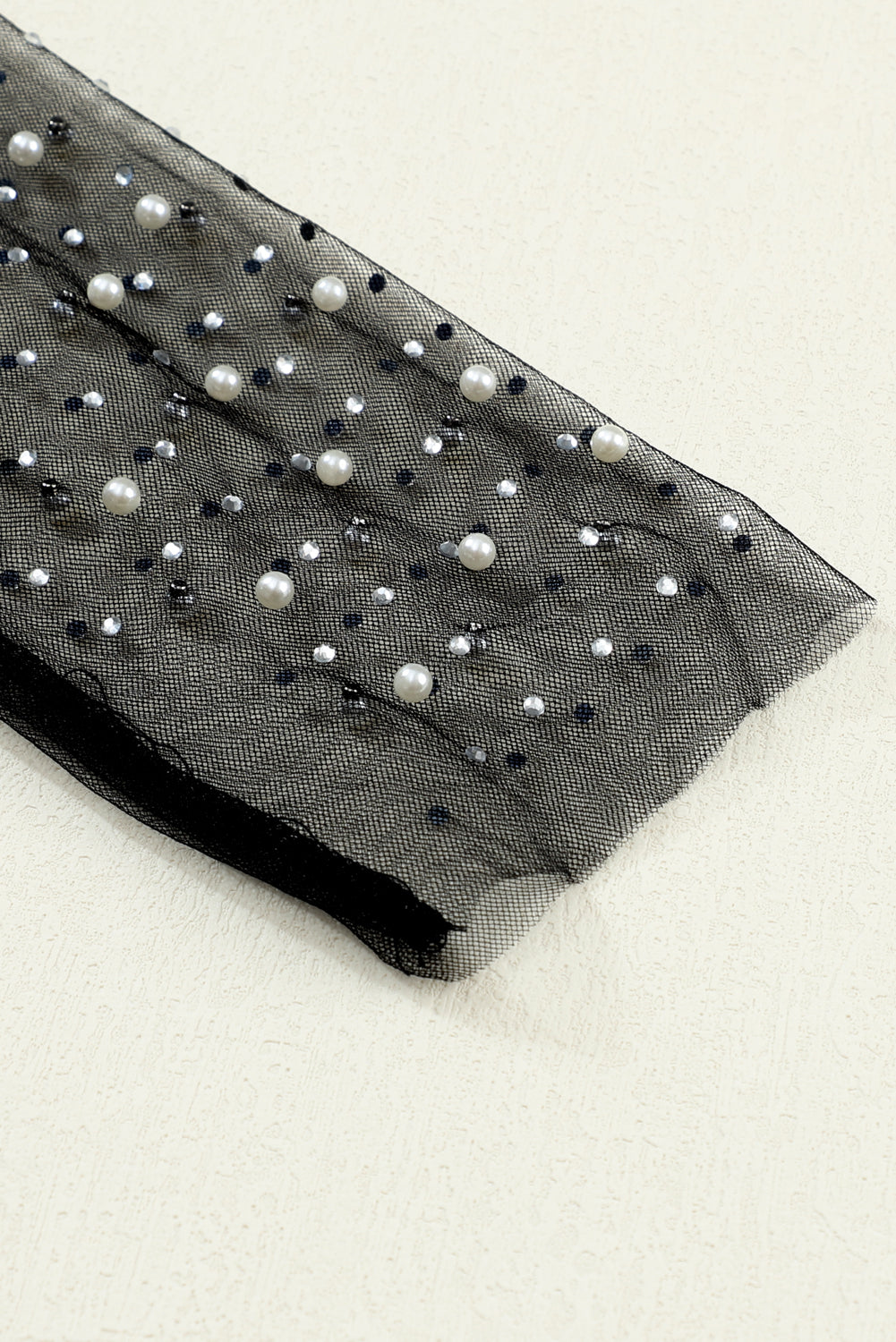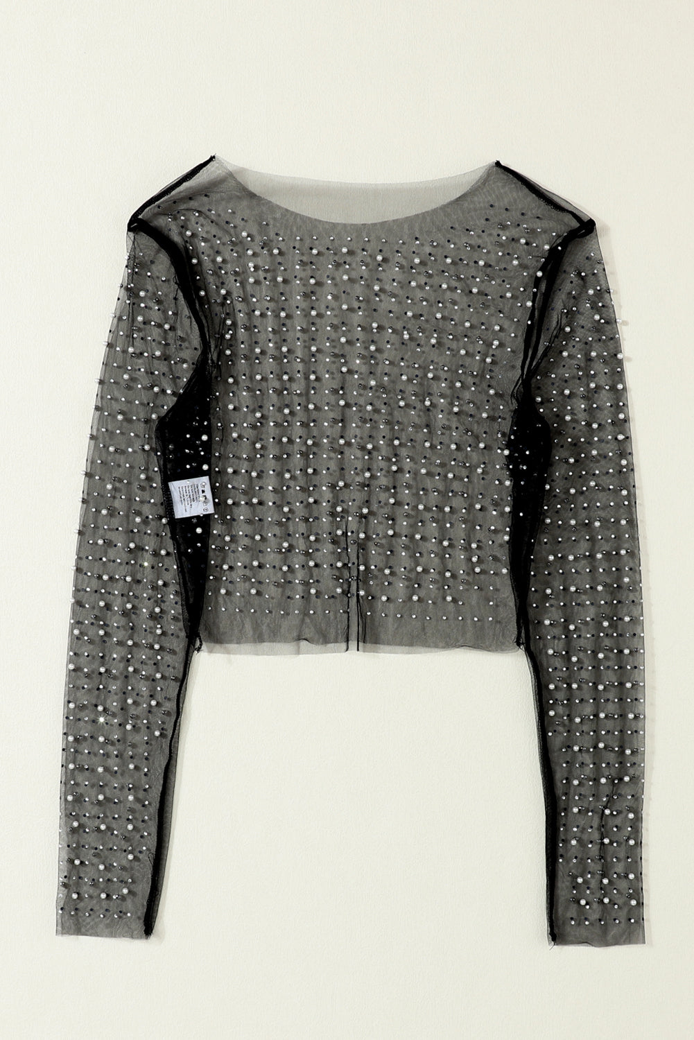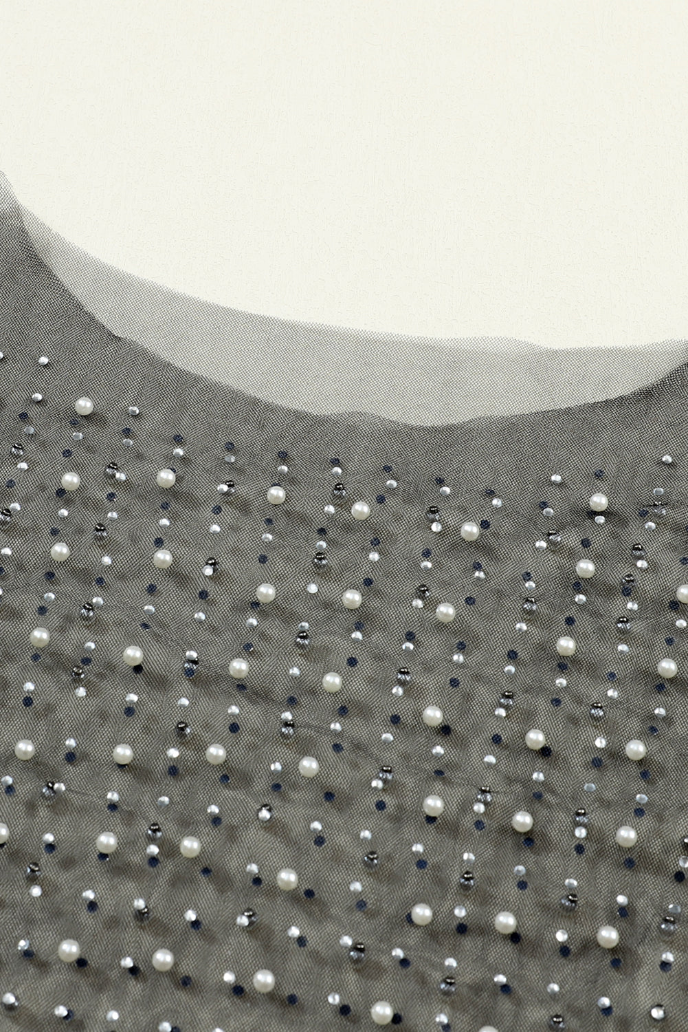 Black Pearl and Rhinestone Detail Sheer Mesh Top
