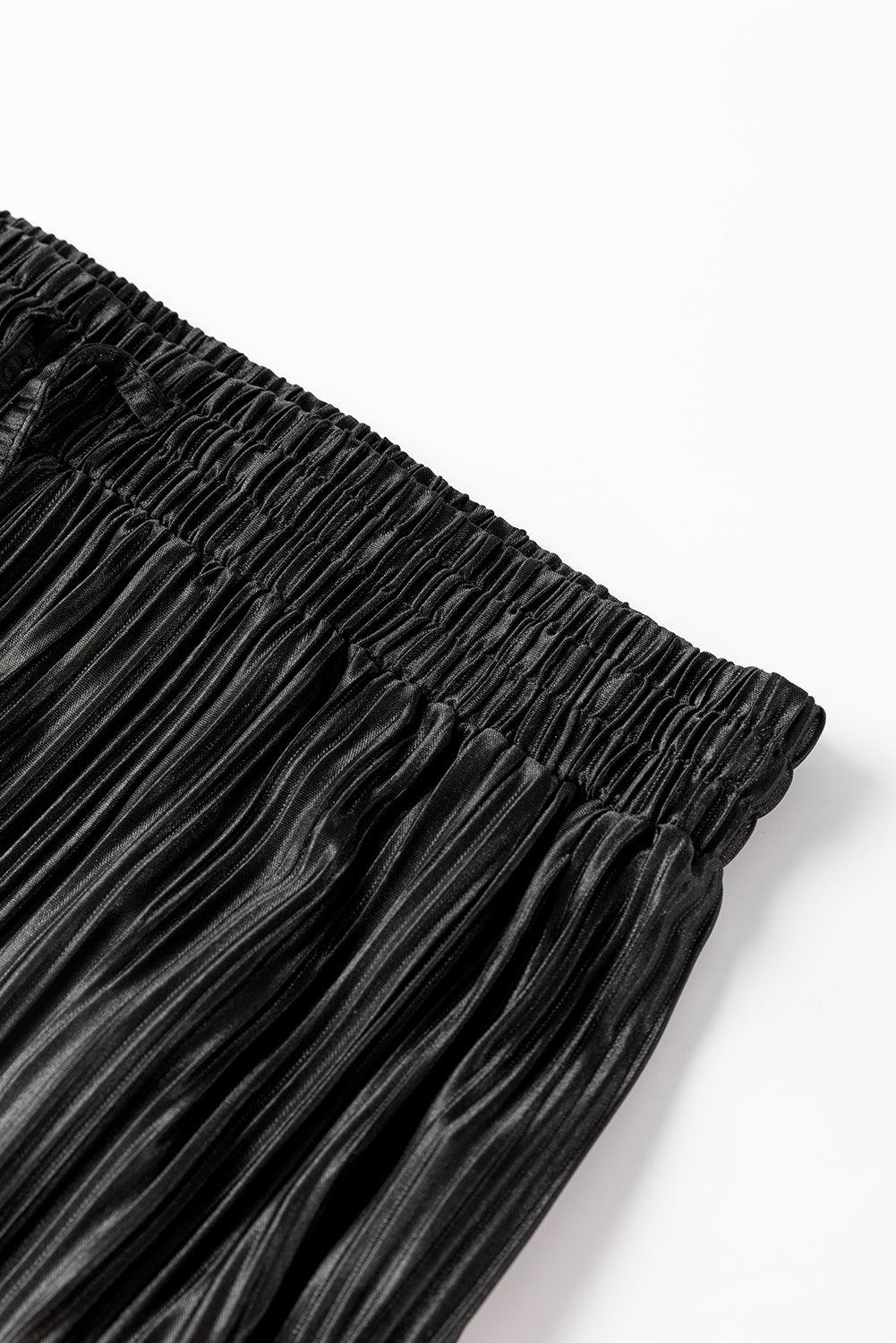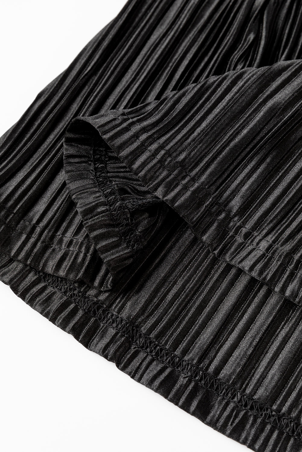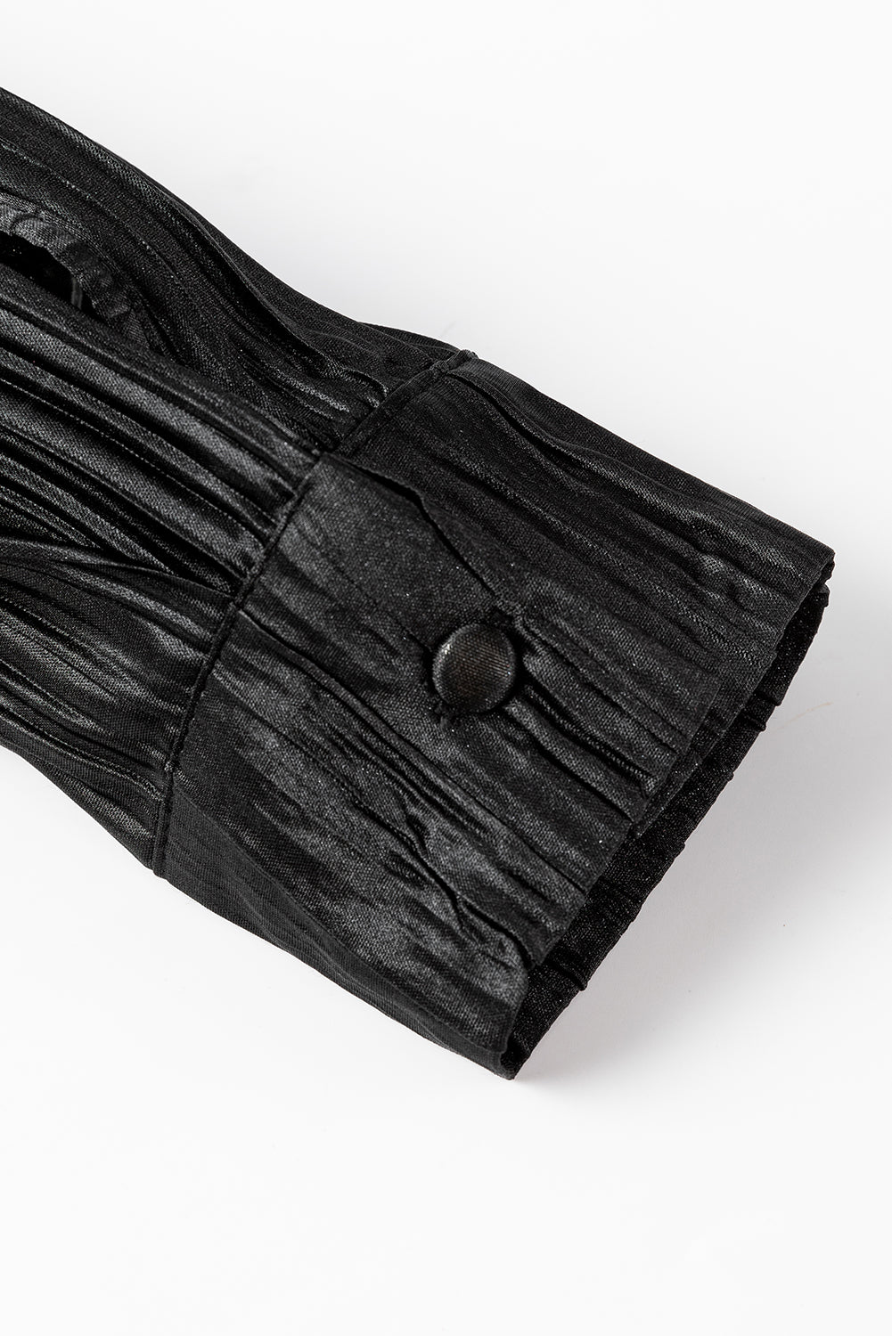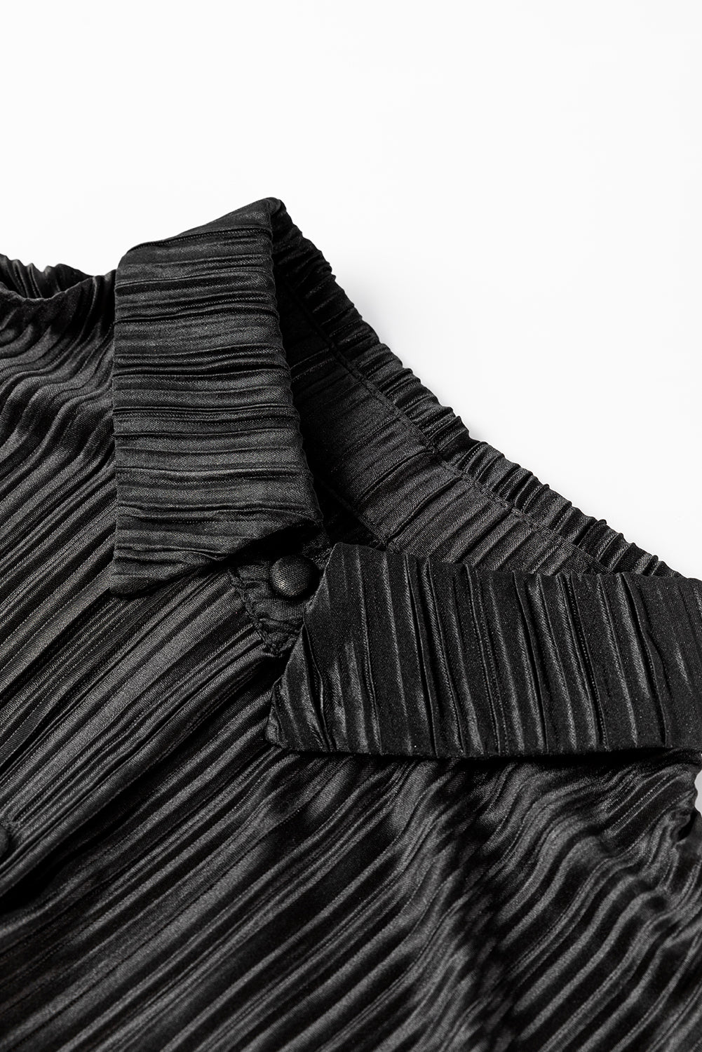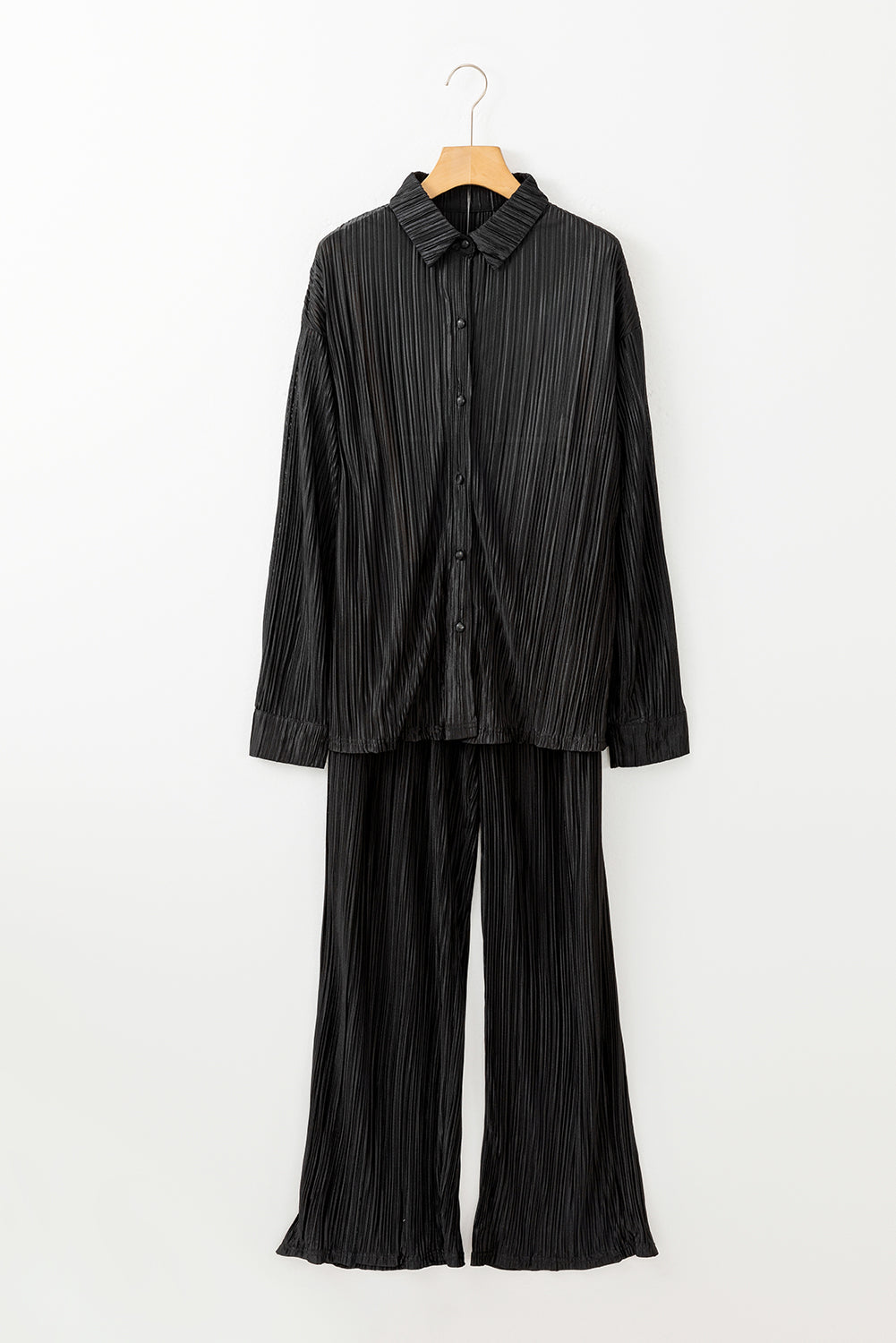 Black Pleated Long Sleeve Shirt and Wide-Leg Pants Set