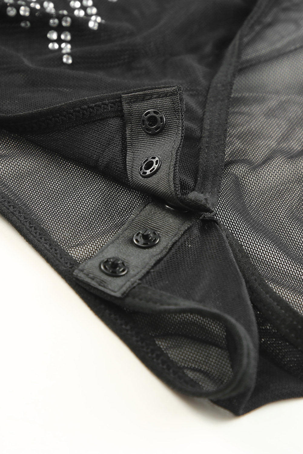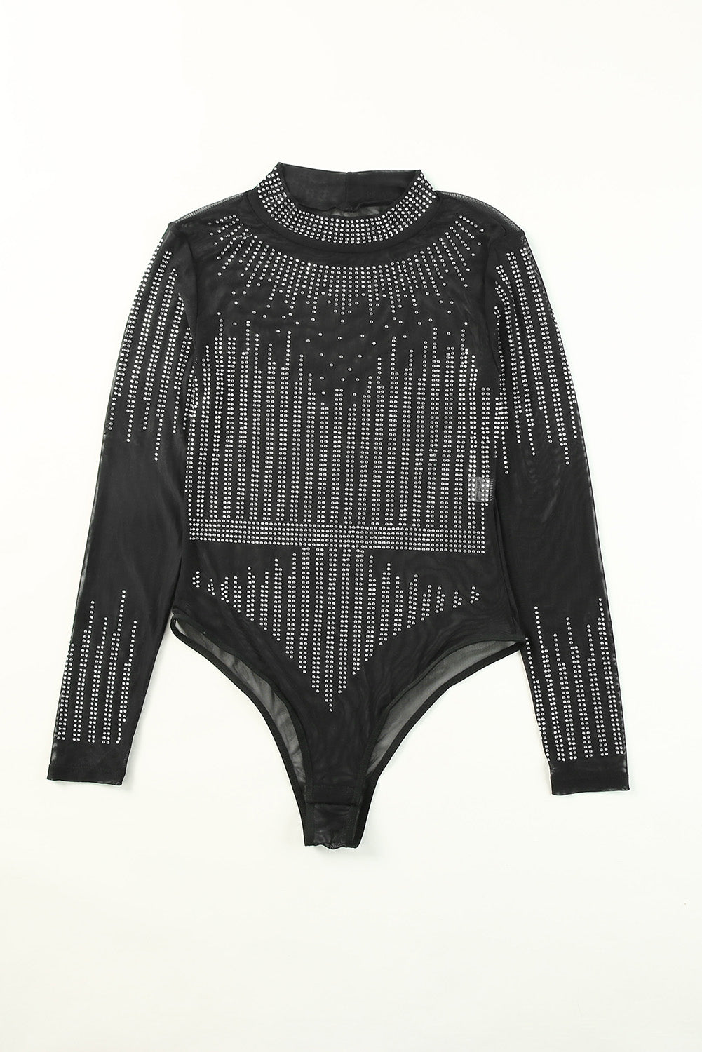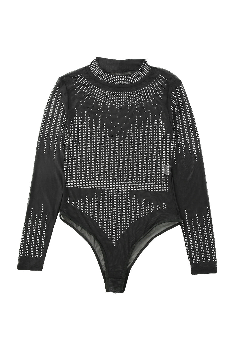 Black Rhinestone Sheer Mesh Long Sleeve Bodysuit