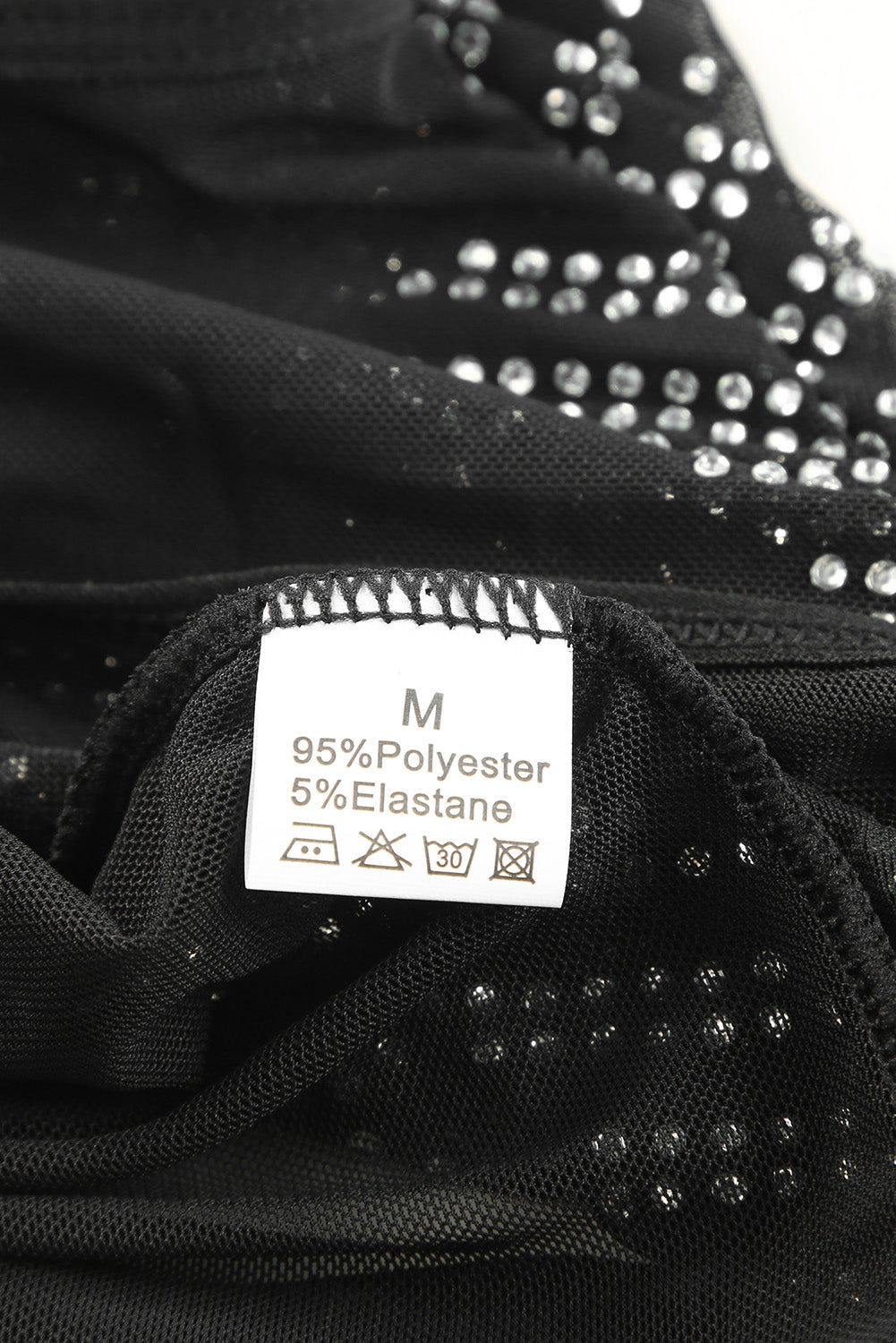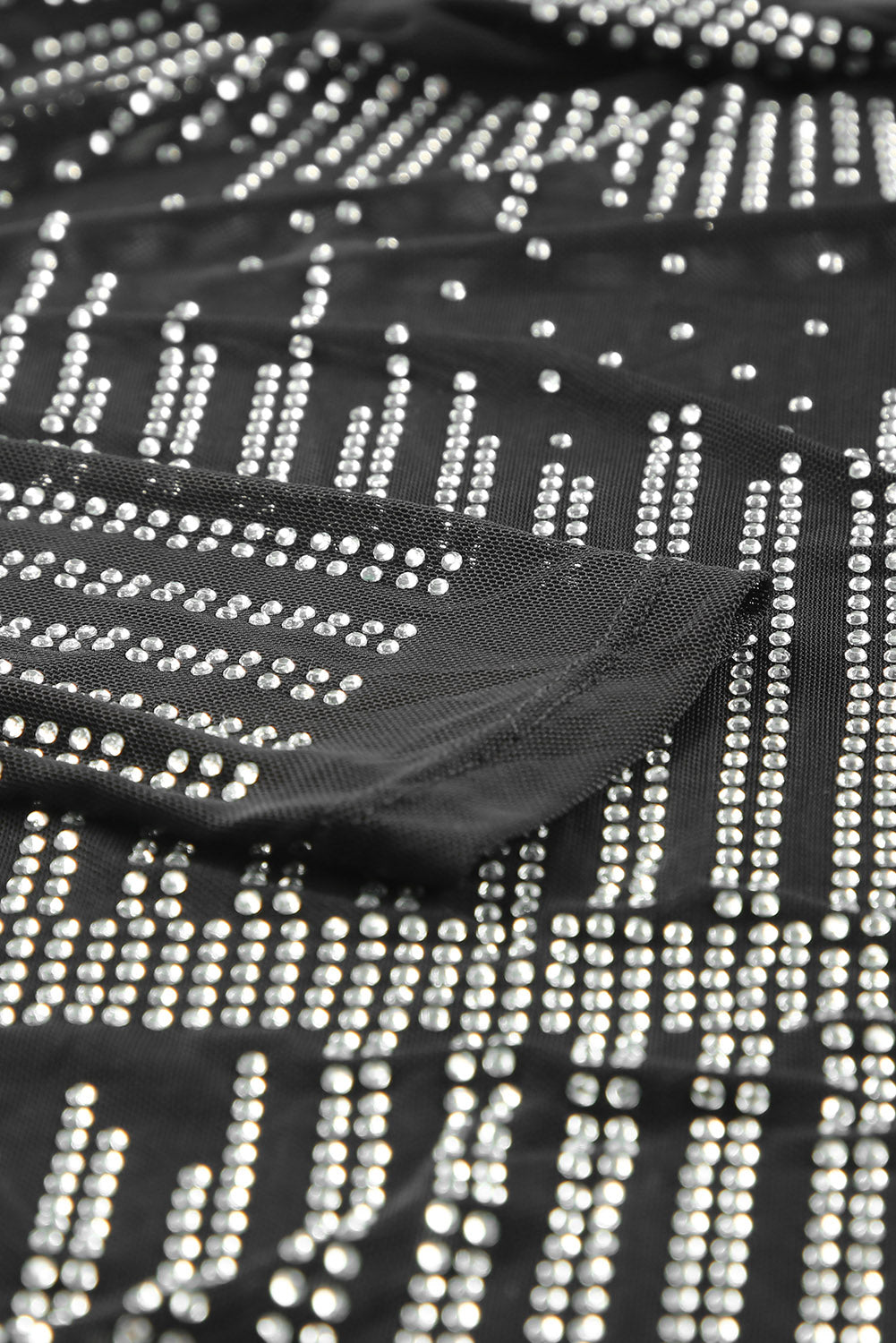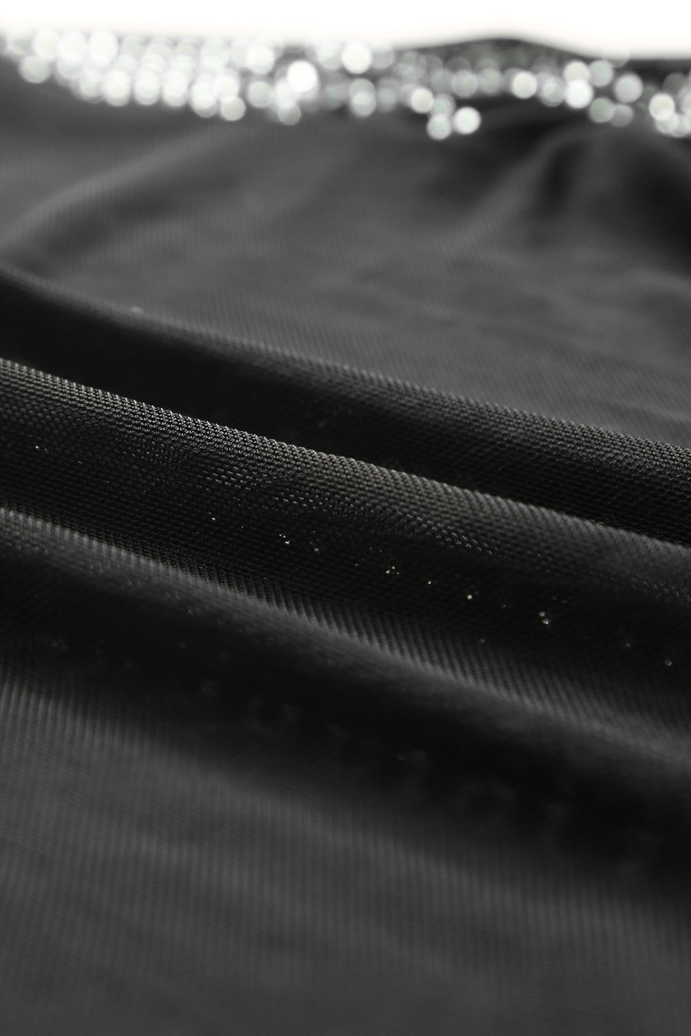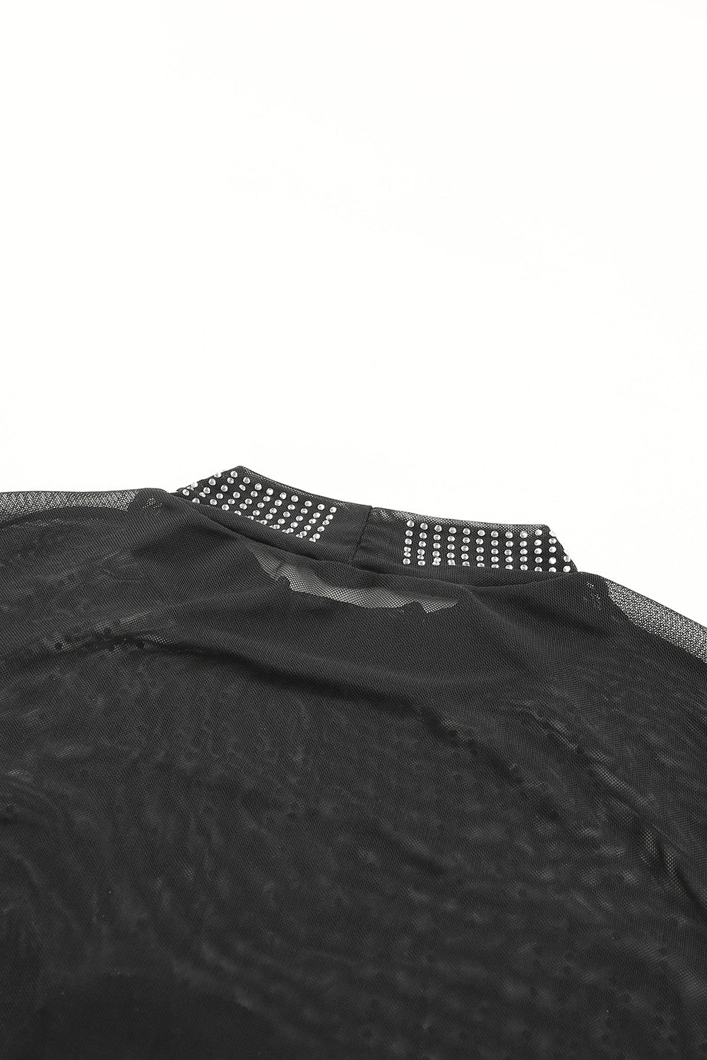 Black Rhinestone Sheer Mesh Long Sleeve Bodysuit