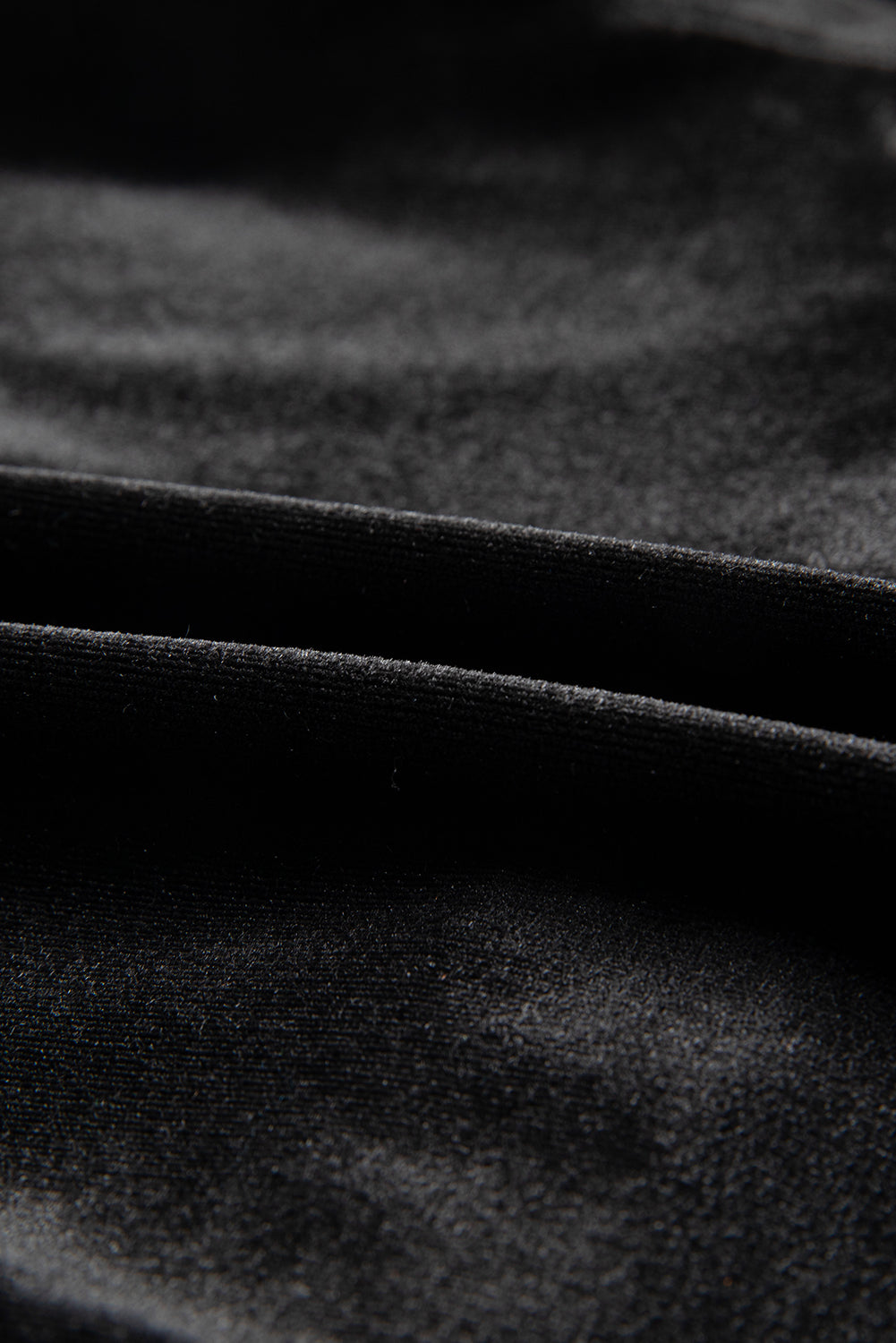 Black Sequin Puff Sleeve Buttoned Velvet Peplum Shirt
