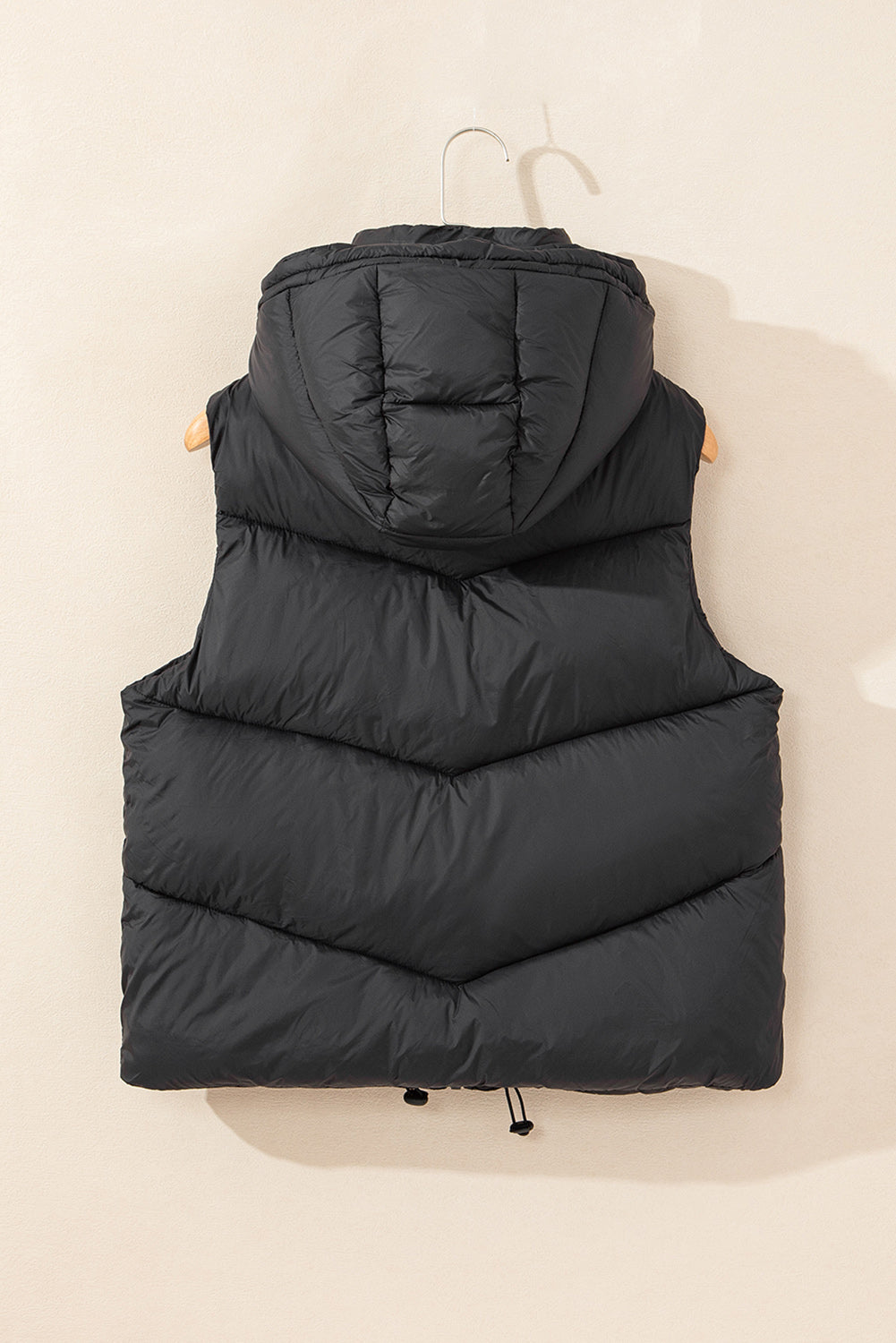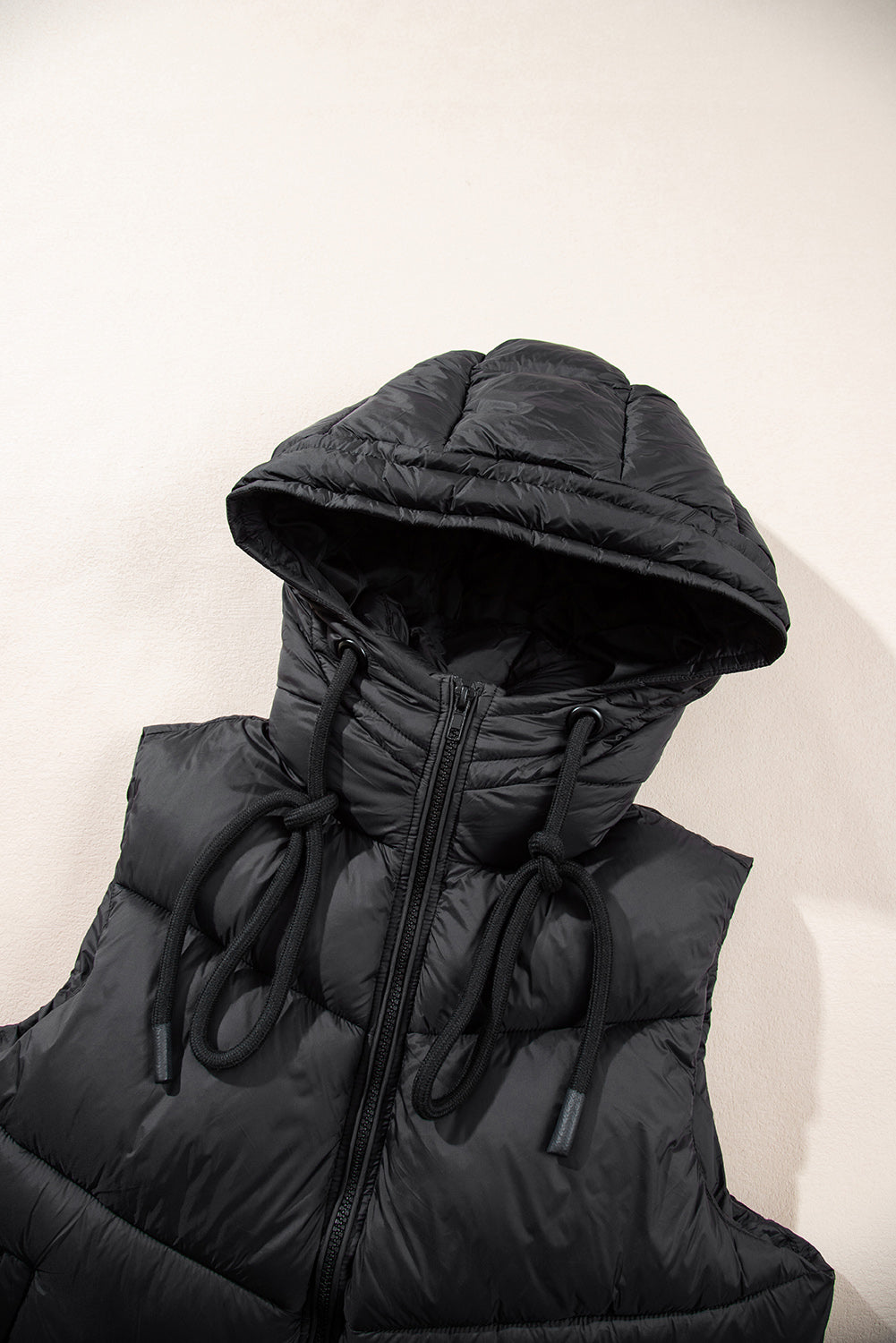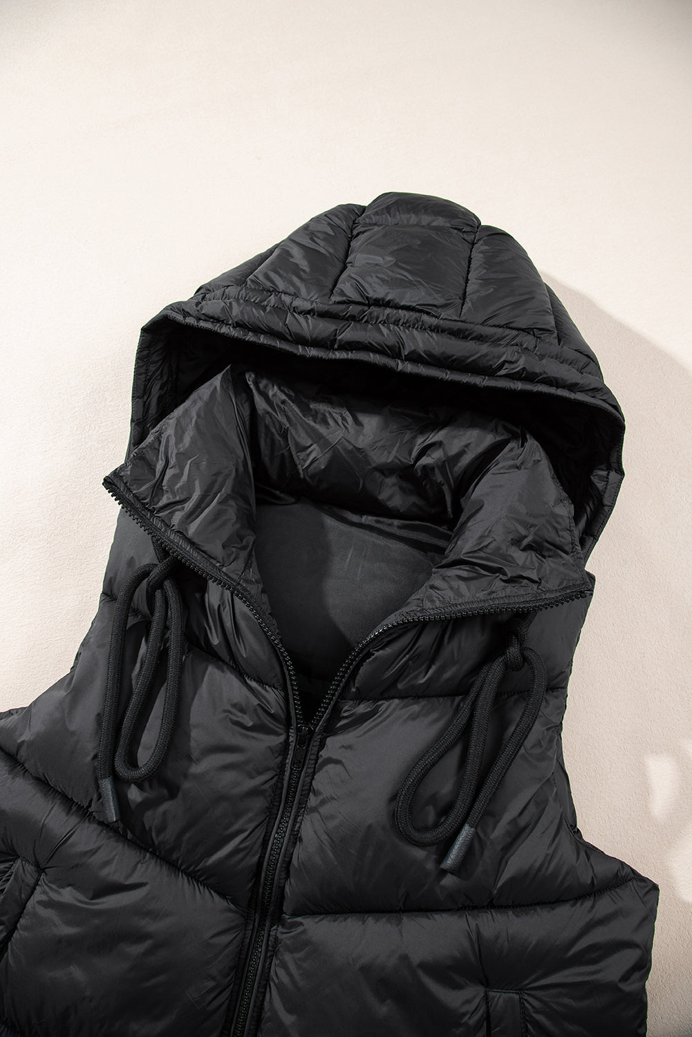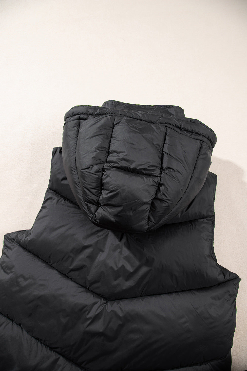 Black Sleek Quilted Puffer Hooded Vest Coat