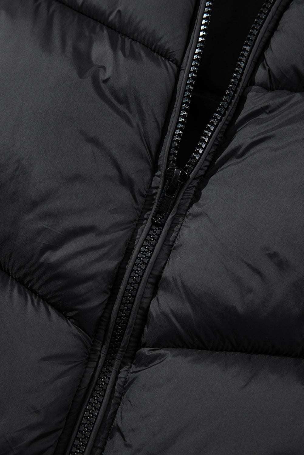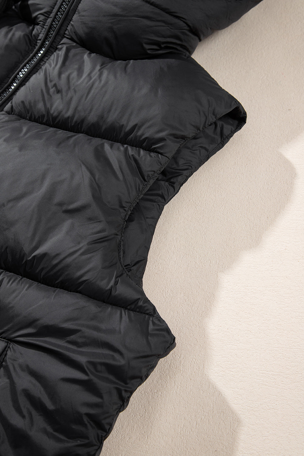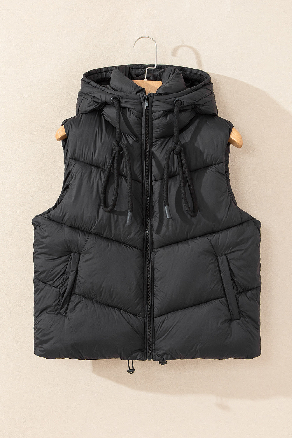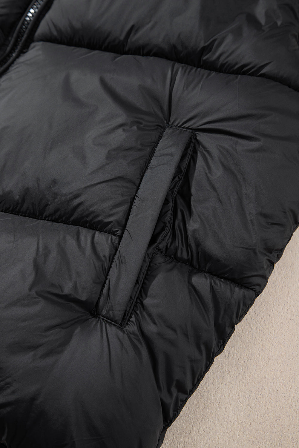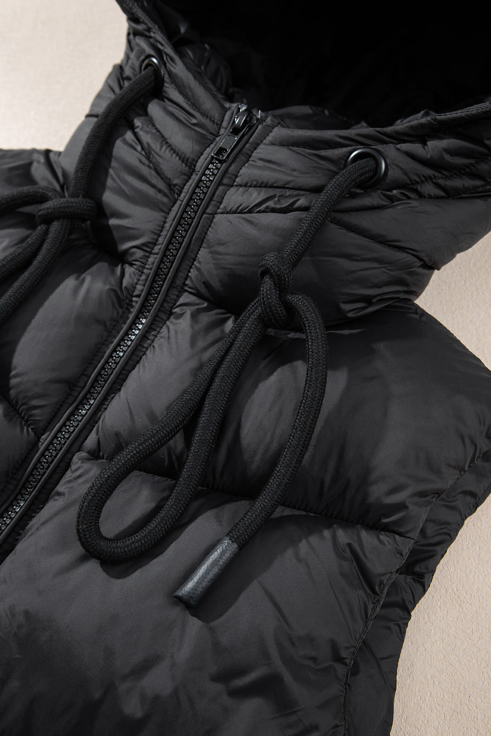 Black Sleek Quilted Puffer Hooded Vest Coat