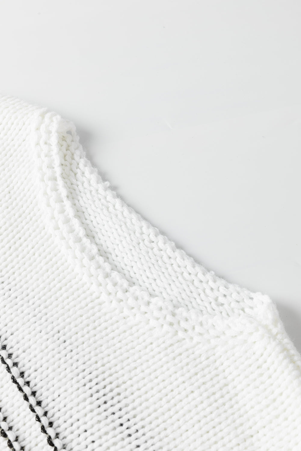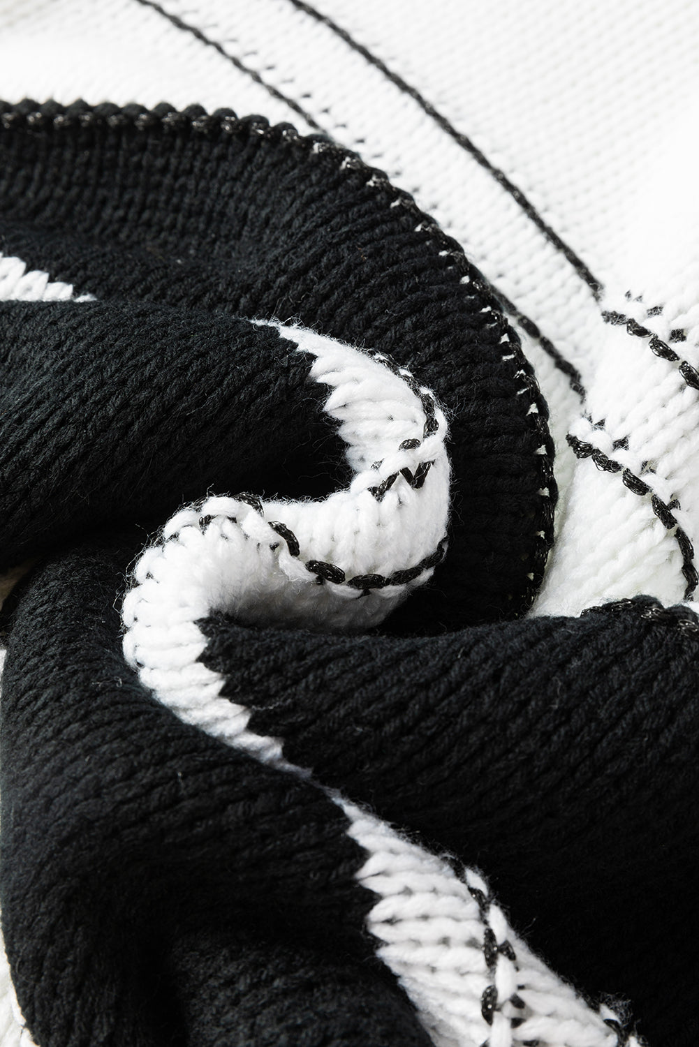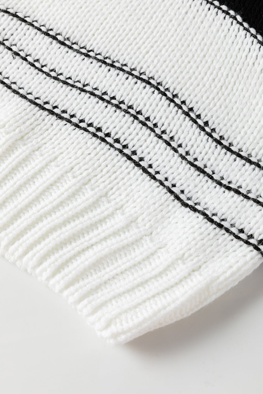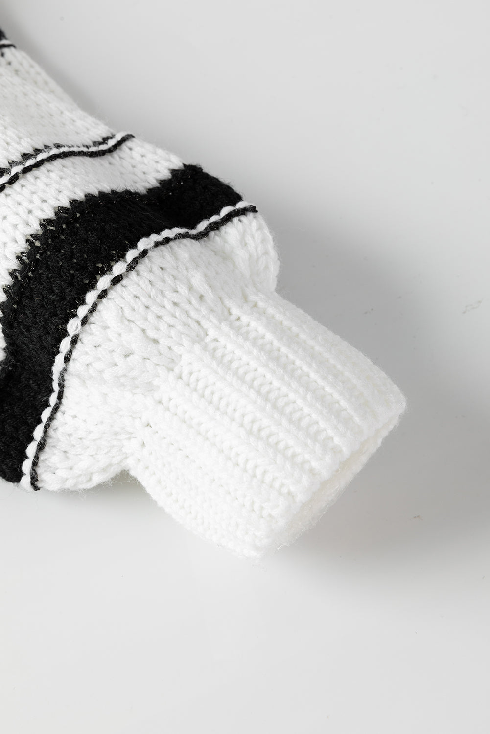 Black Stripe Striped Knit Puff Sleeve Casual Sweater