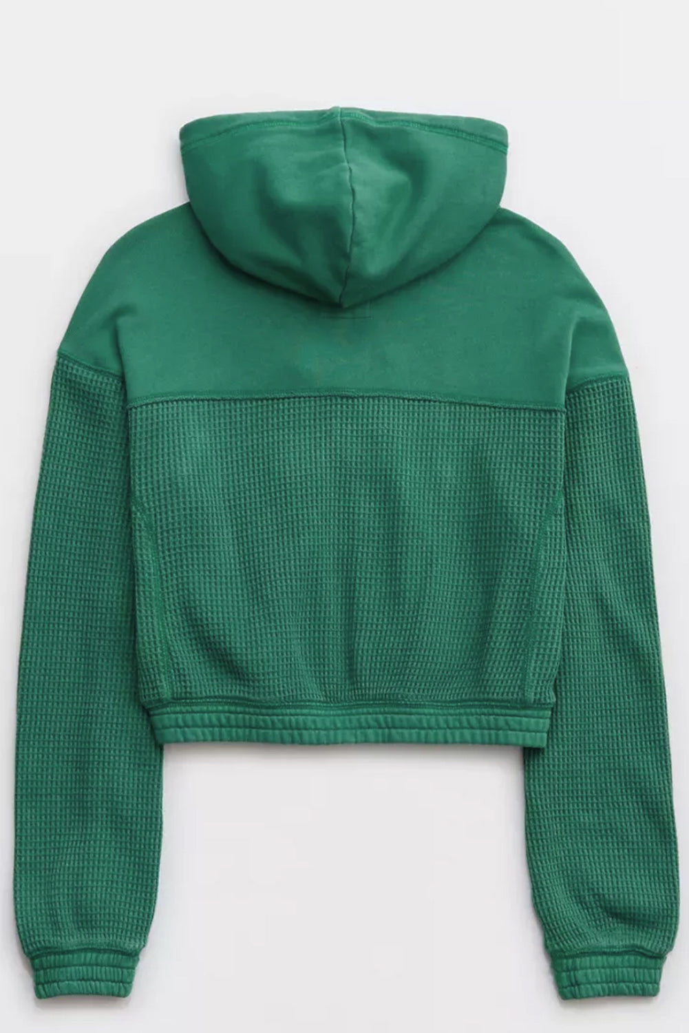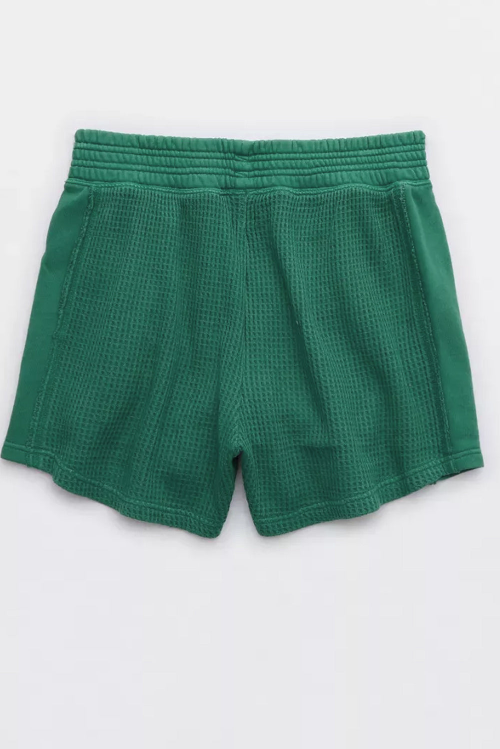 Blackish Green Waffle Knit Hooded Jacket and Shorts Outfit