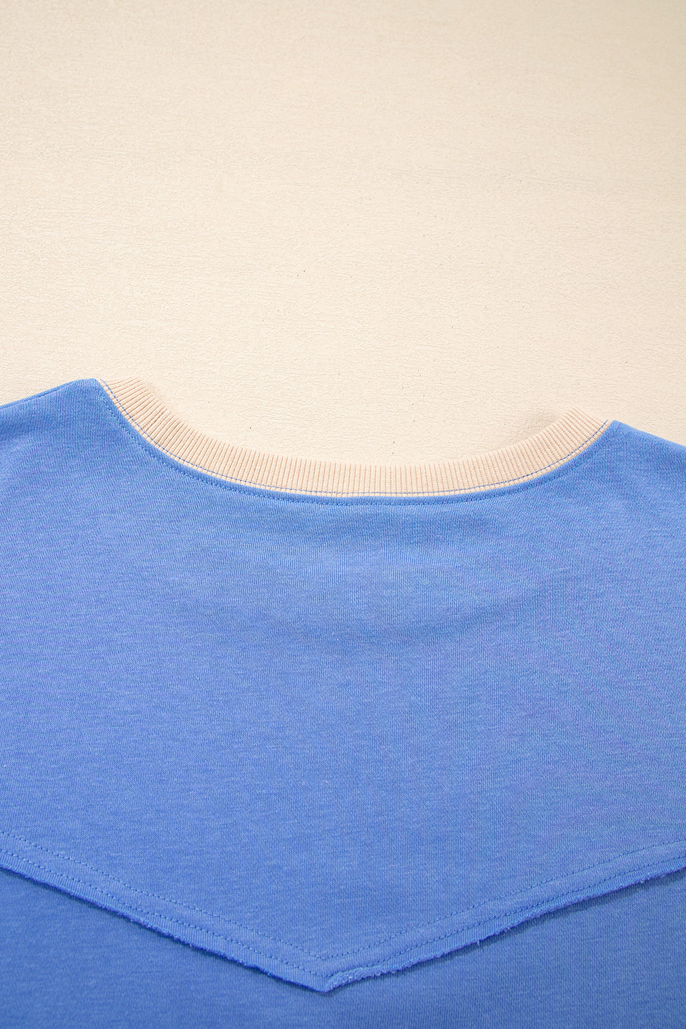 Blue Exposed Seam Floral Mixed Patchwork Relaxed Plus Size Top