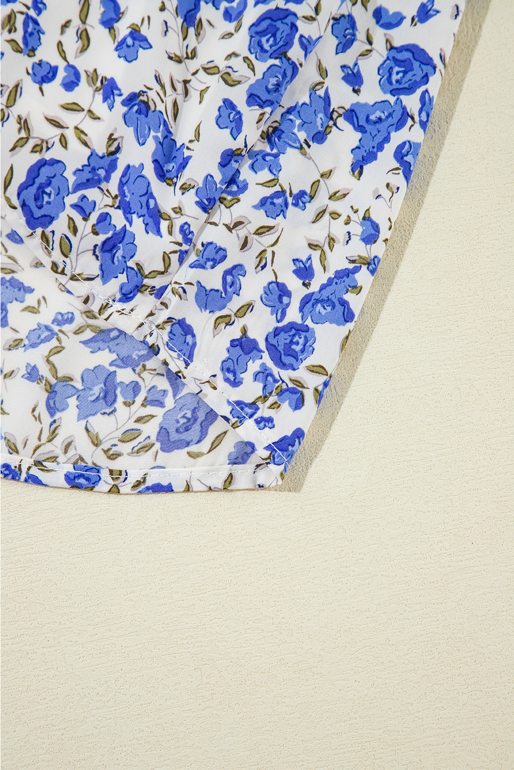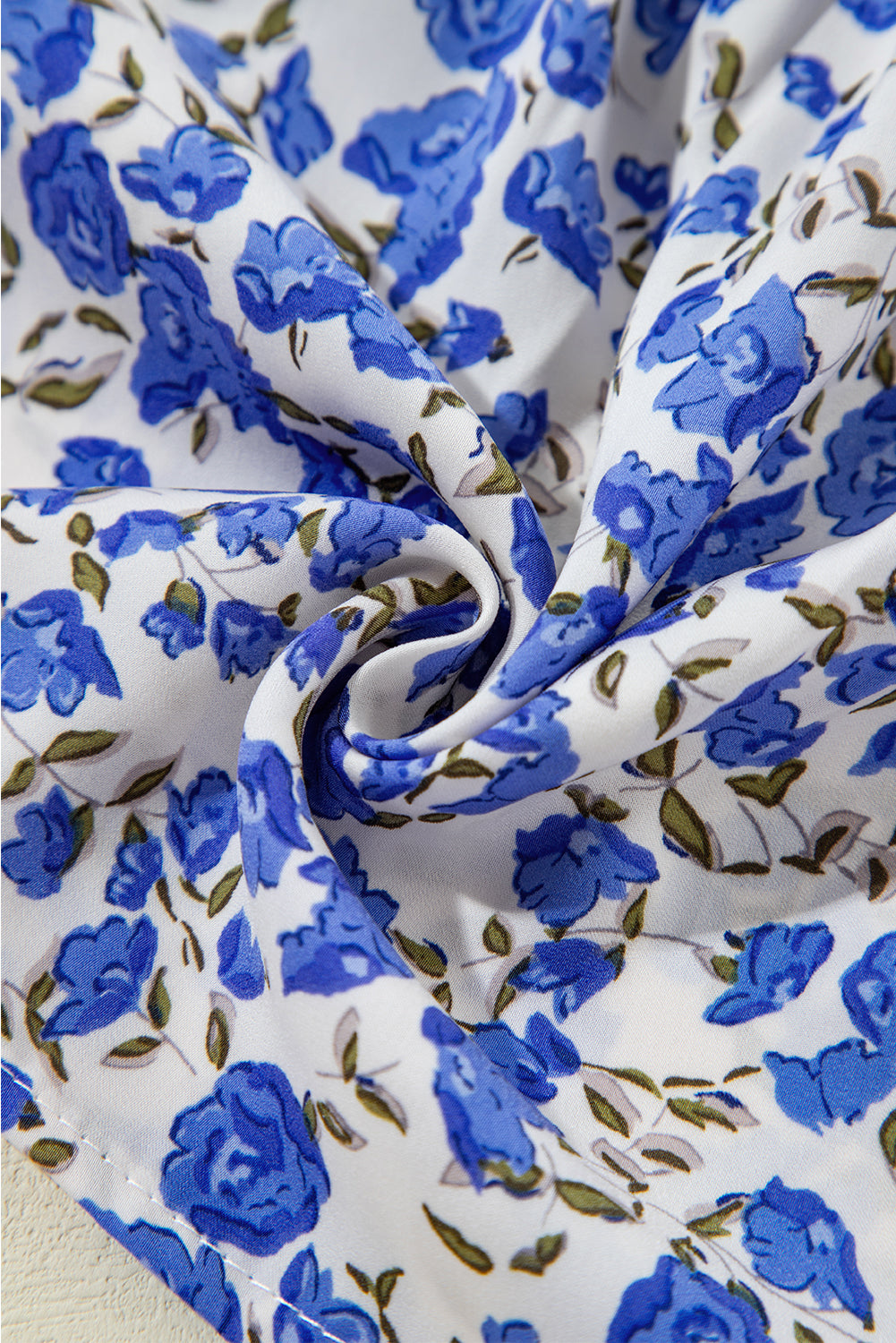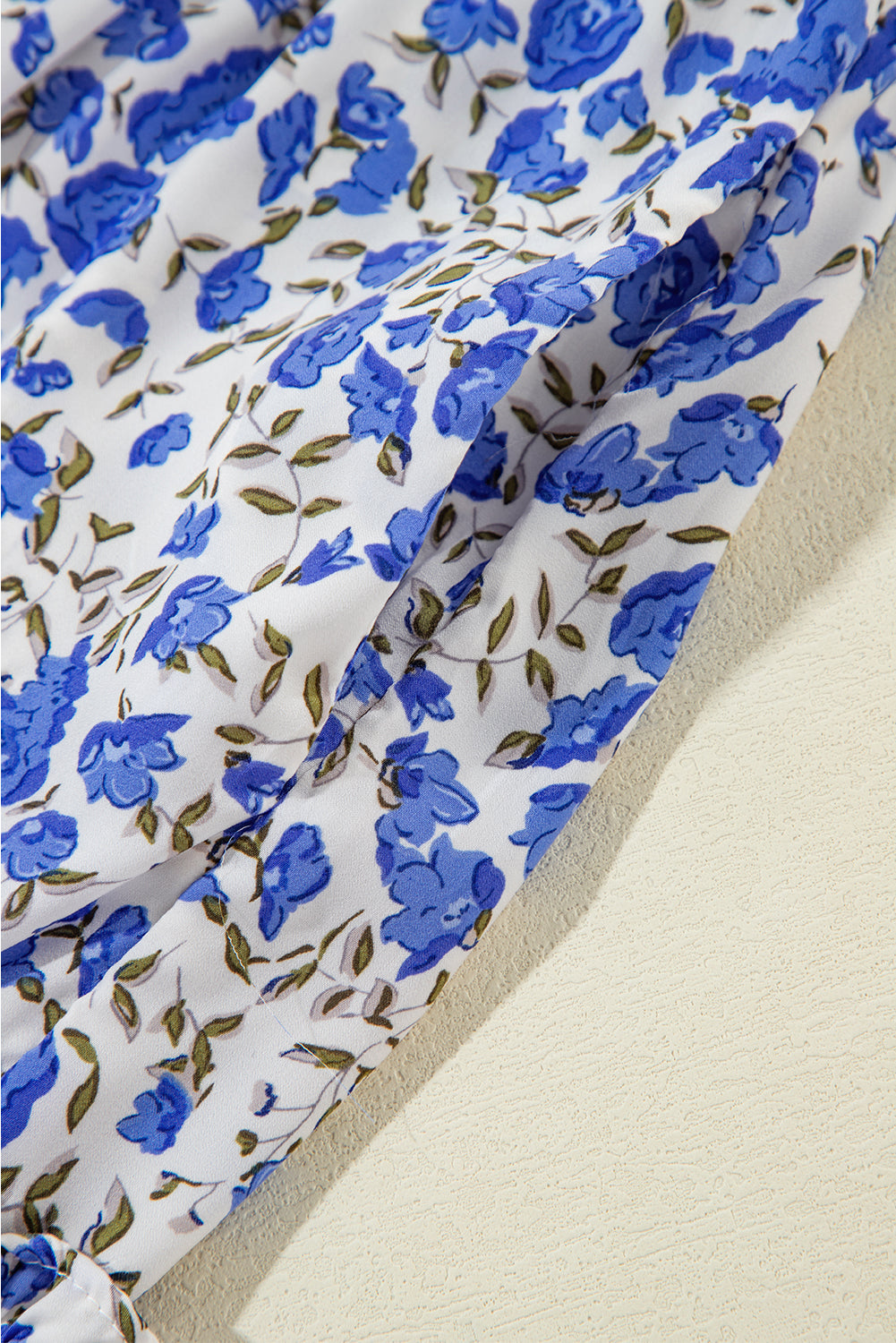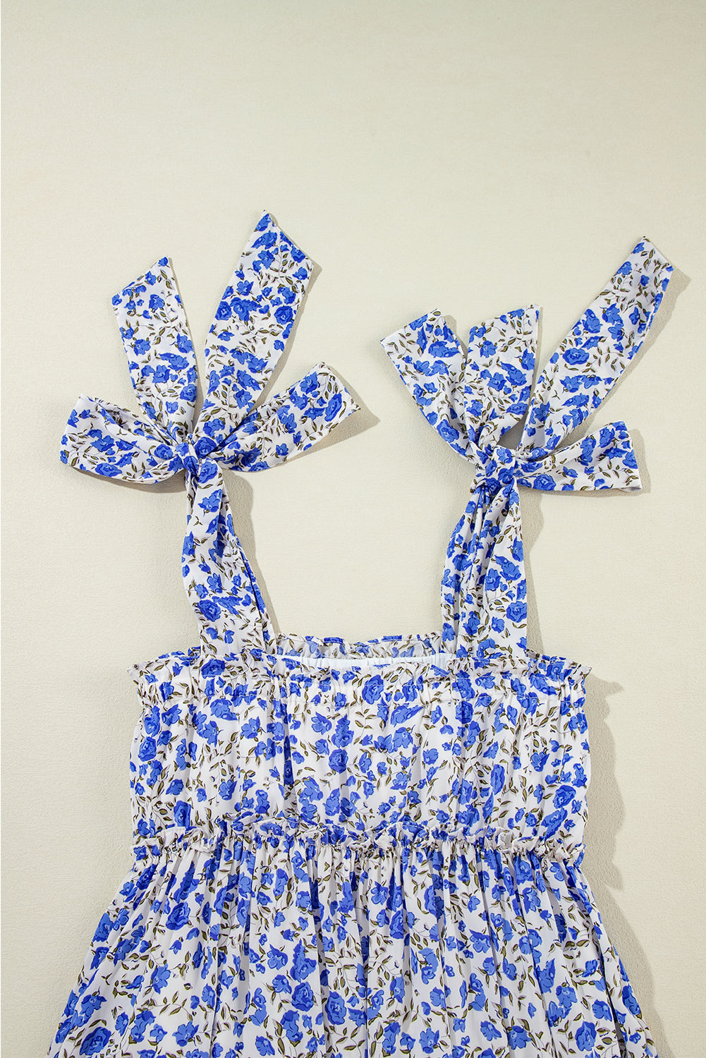 Blue Floral Knotted Straps Tiered Babydoll Dress