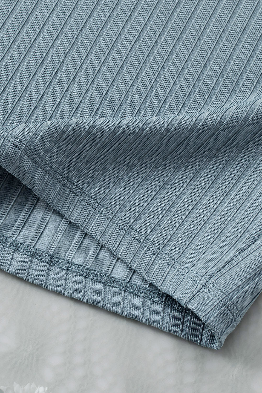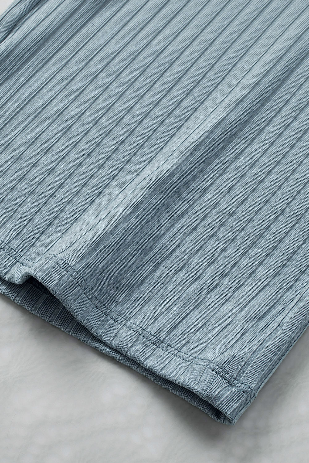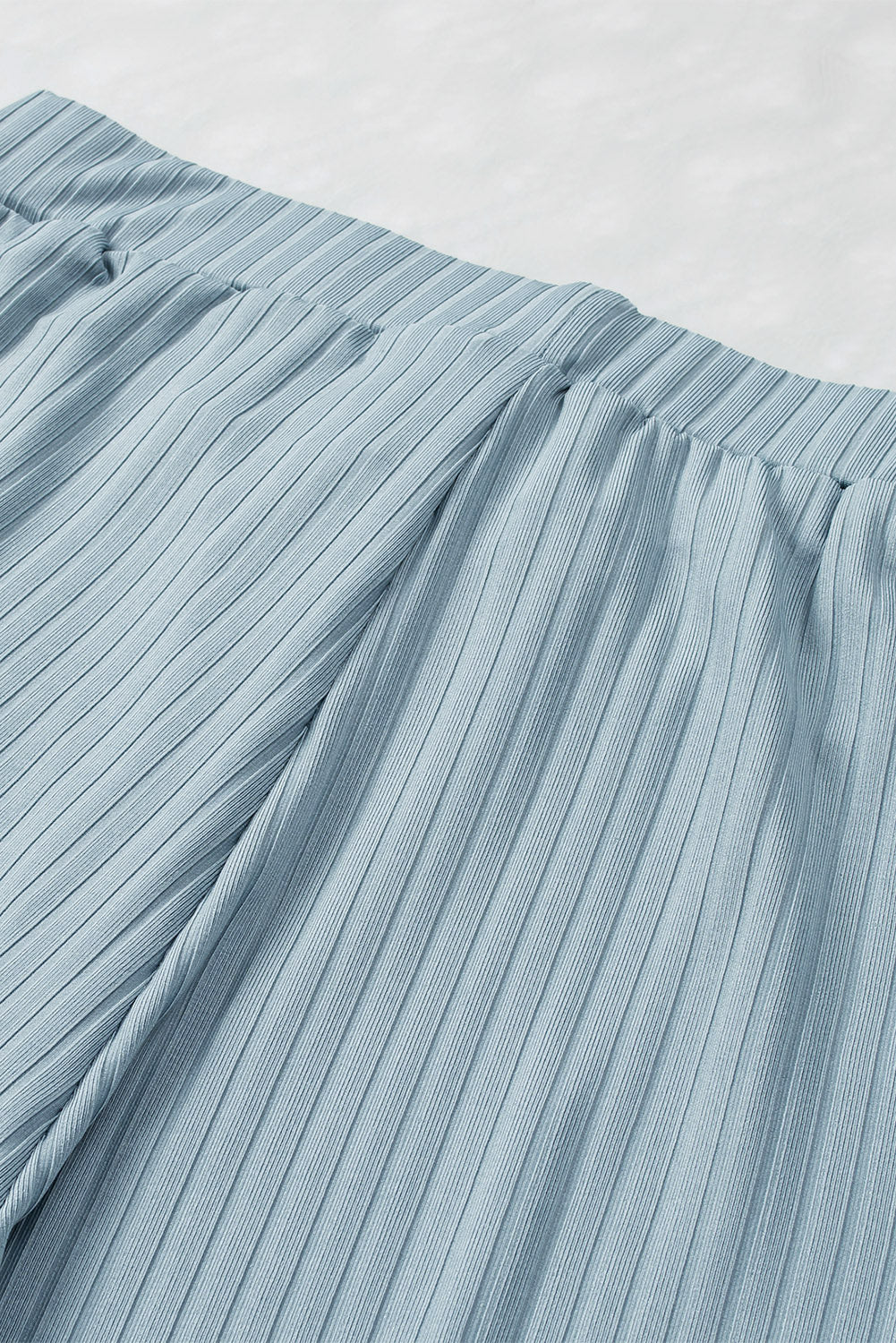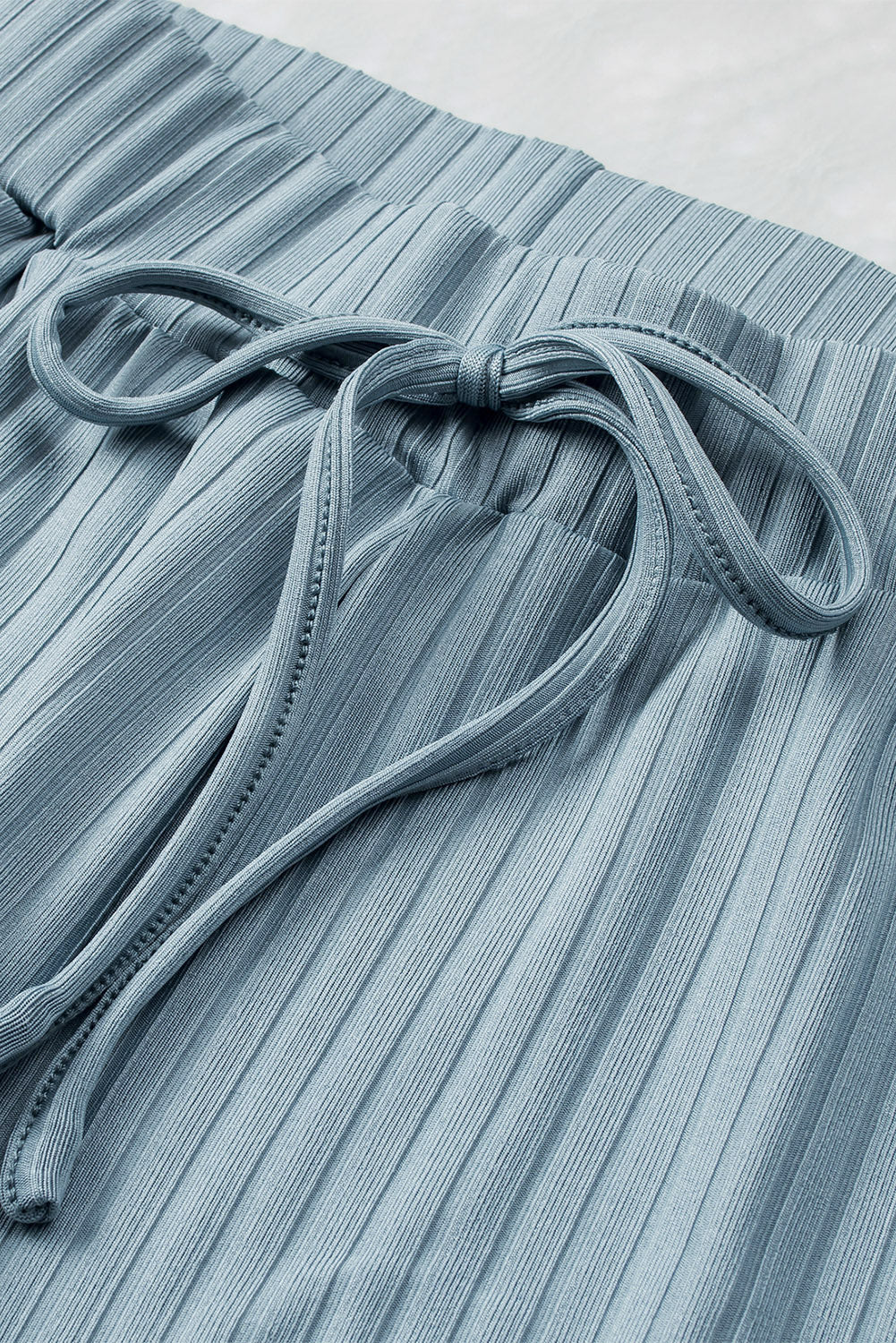 Blue Ribbed Crop Tank Drawstring Lounge Pants Set
