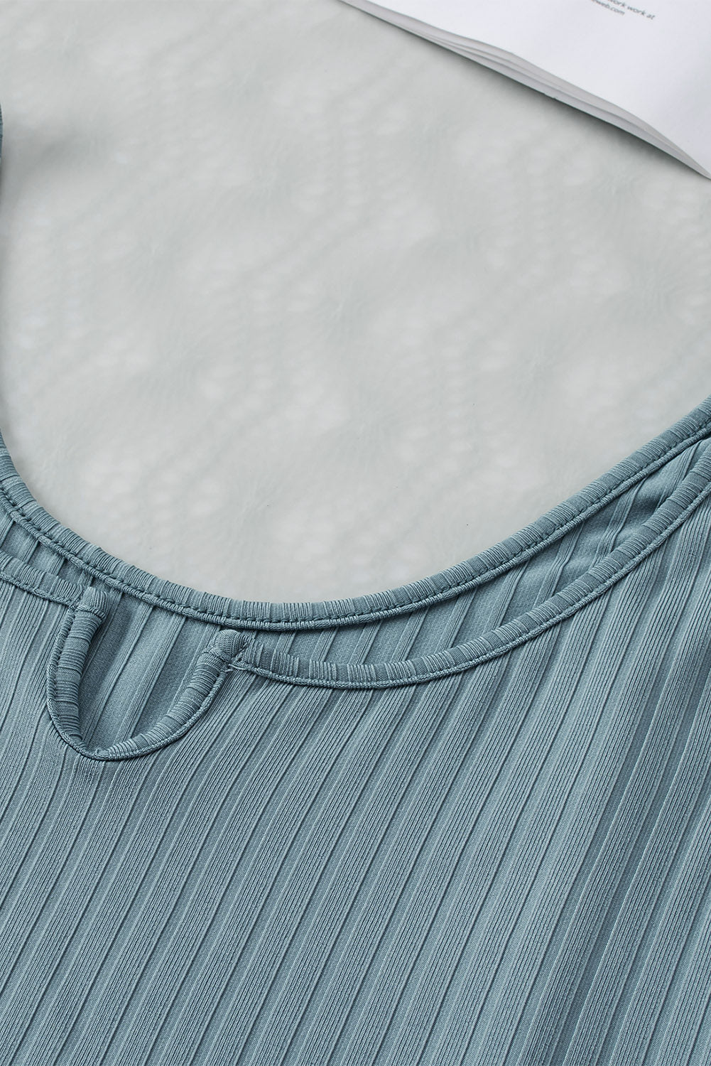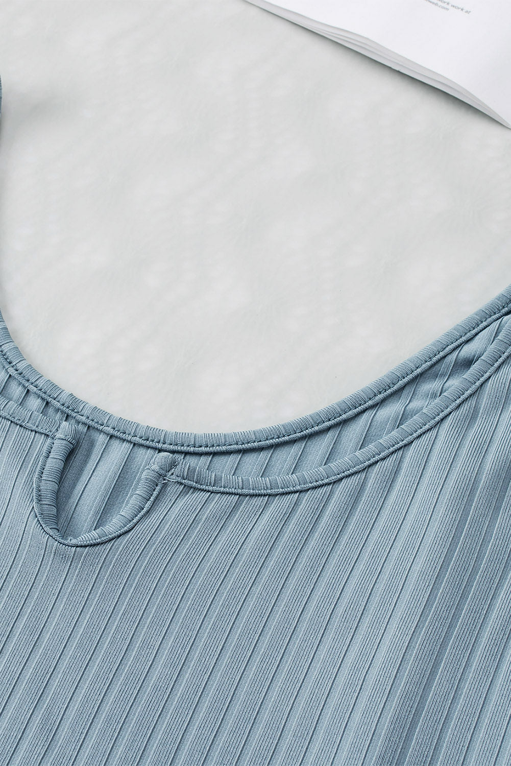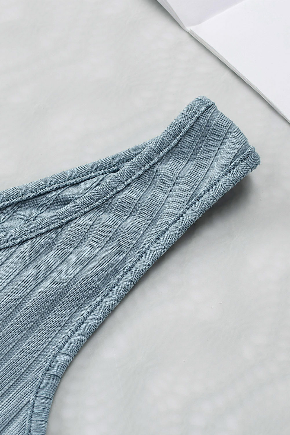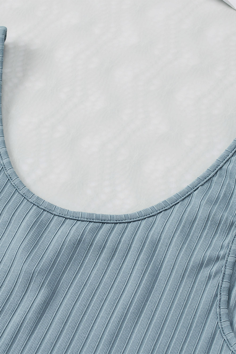 Blue Ribbed Crop Tank Drawstring Lounge Pants Set