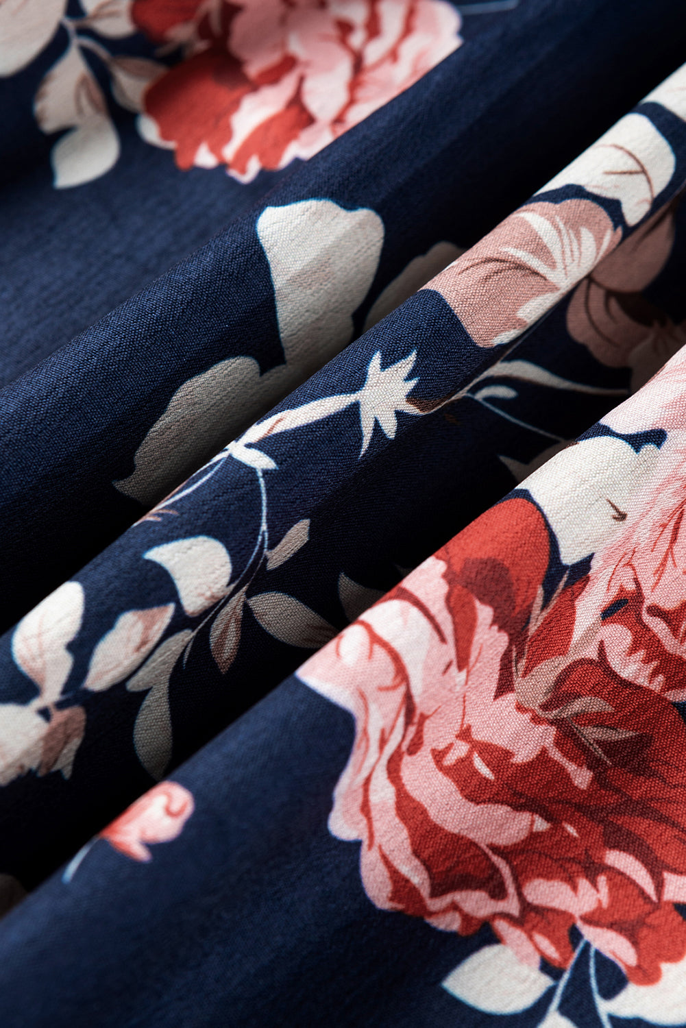 Blue Ruffle Off Shoulder Flounce Sleeve Floral Blouse