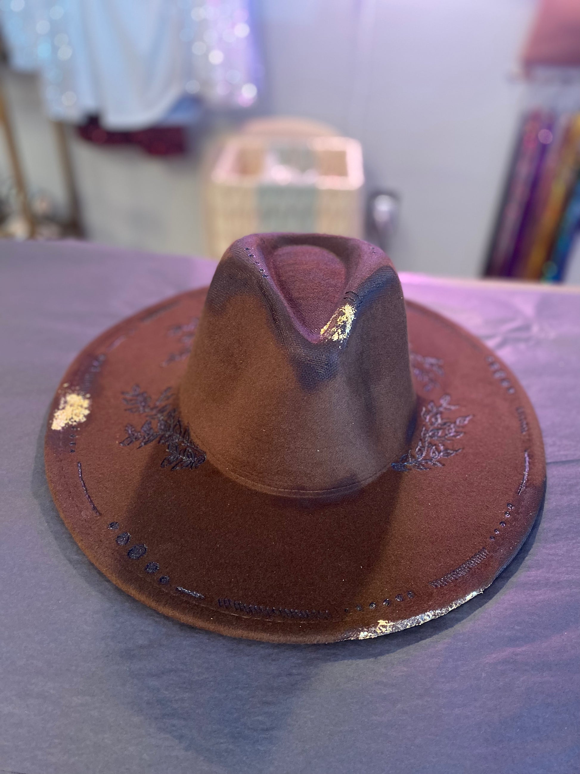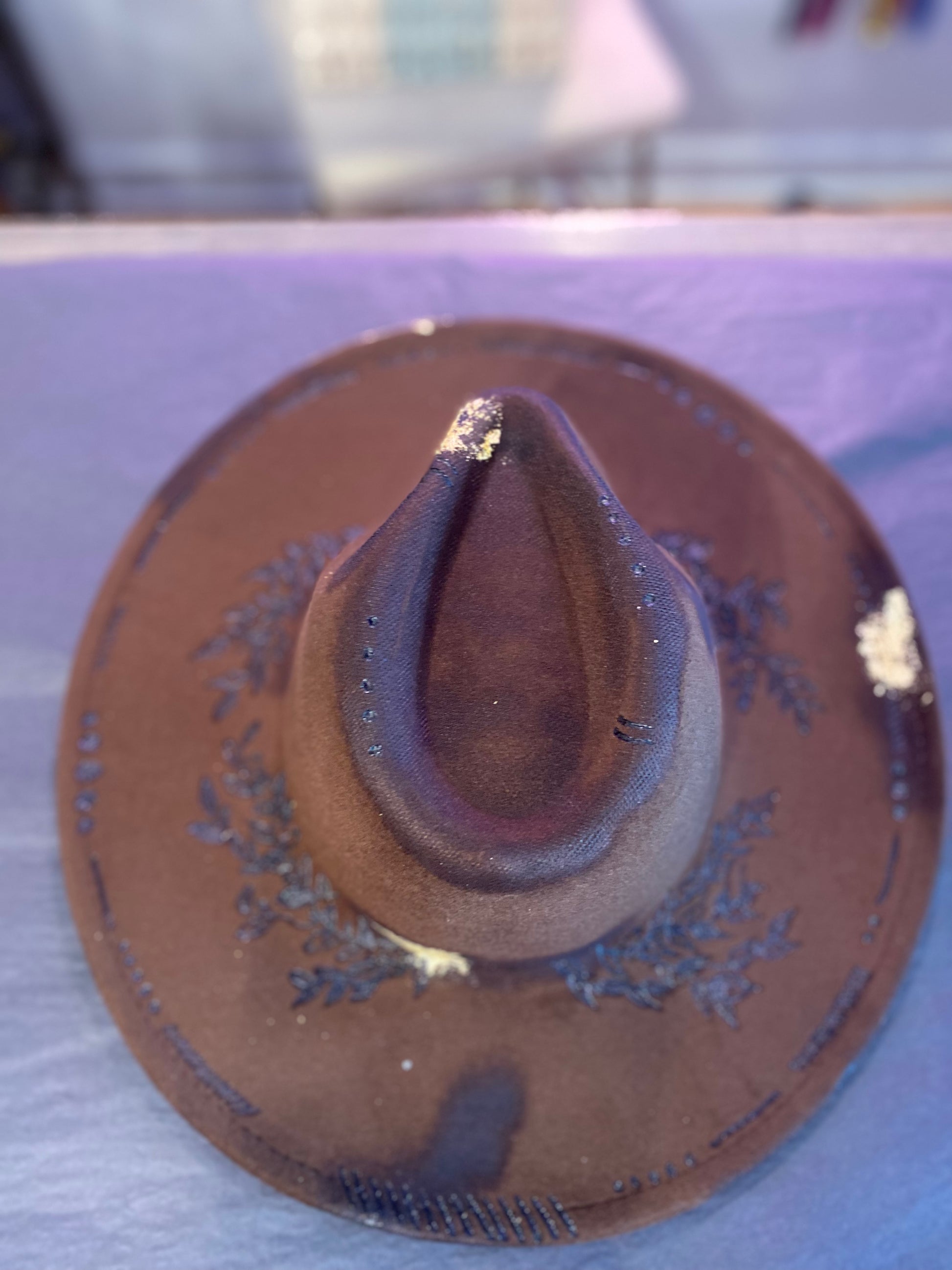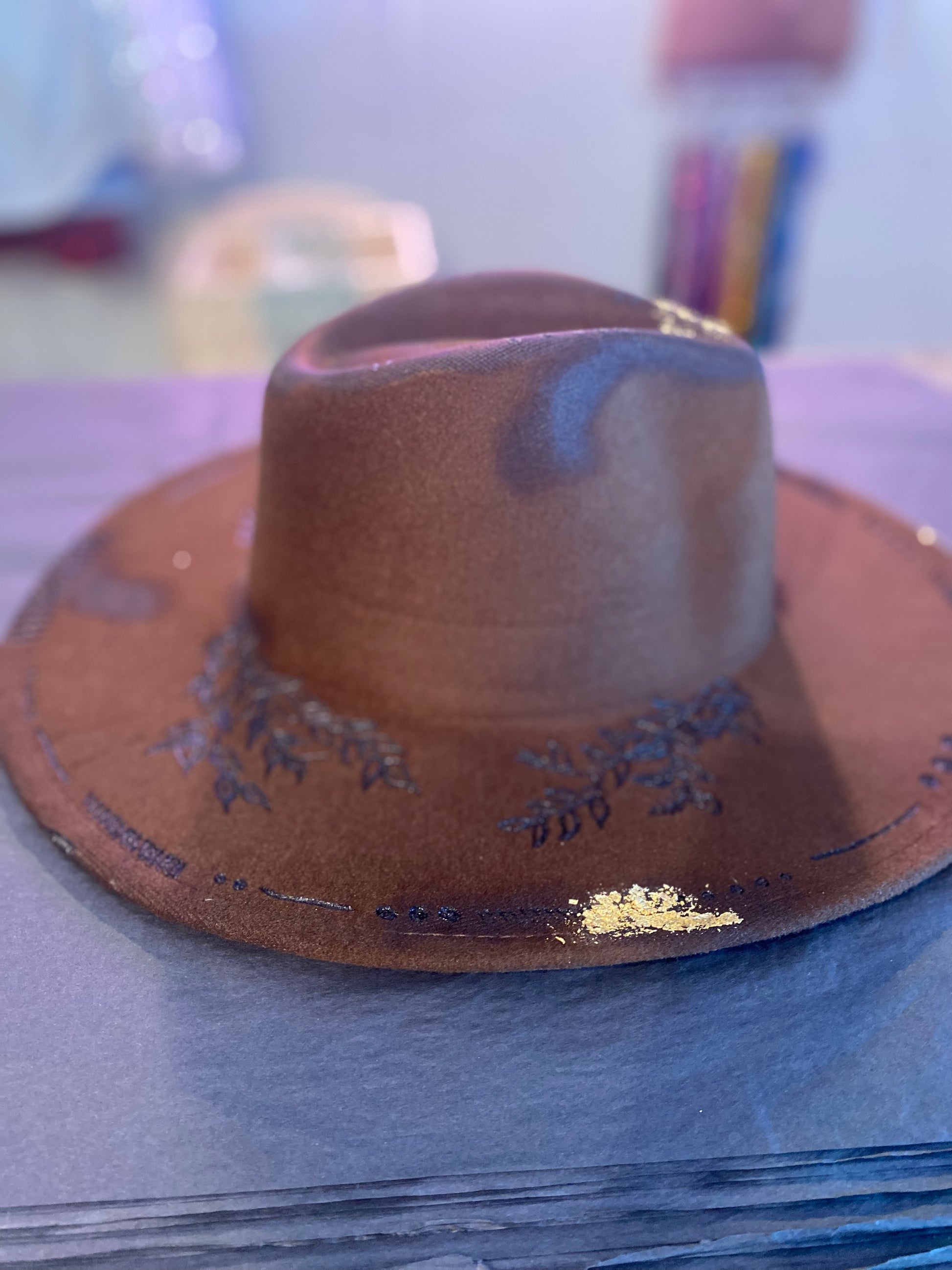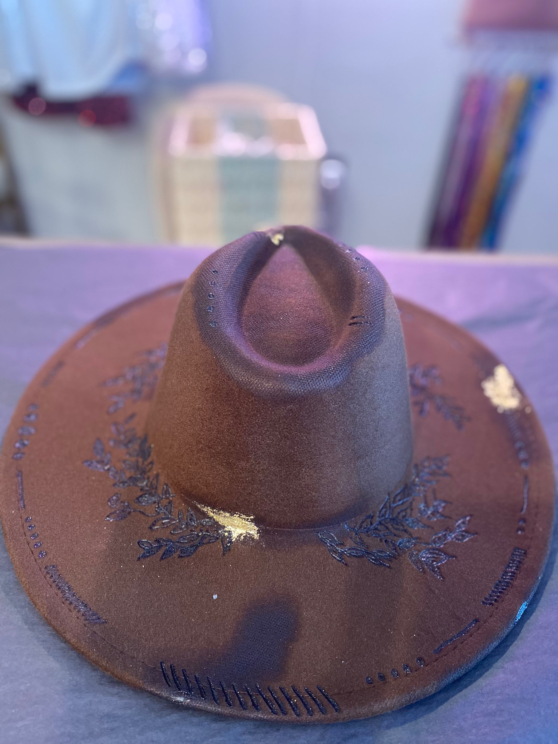 Engraved leaves with Gold leaf ascents. Rustic burned look