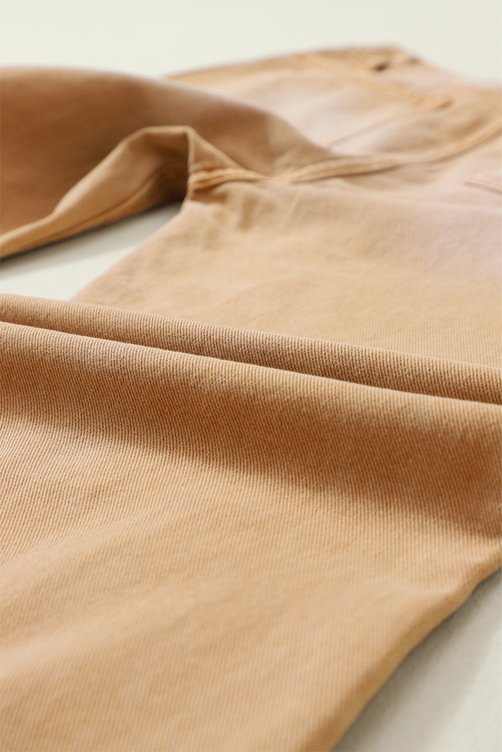 Brown Distressed Hollow-out High Waist Cropped Flare Jeans