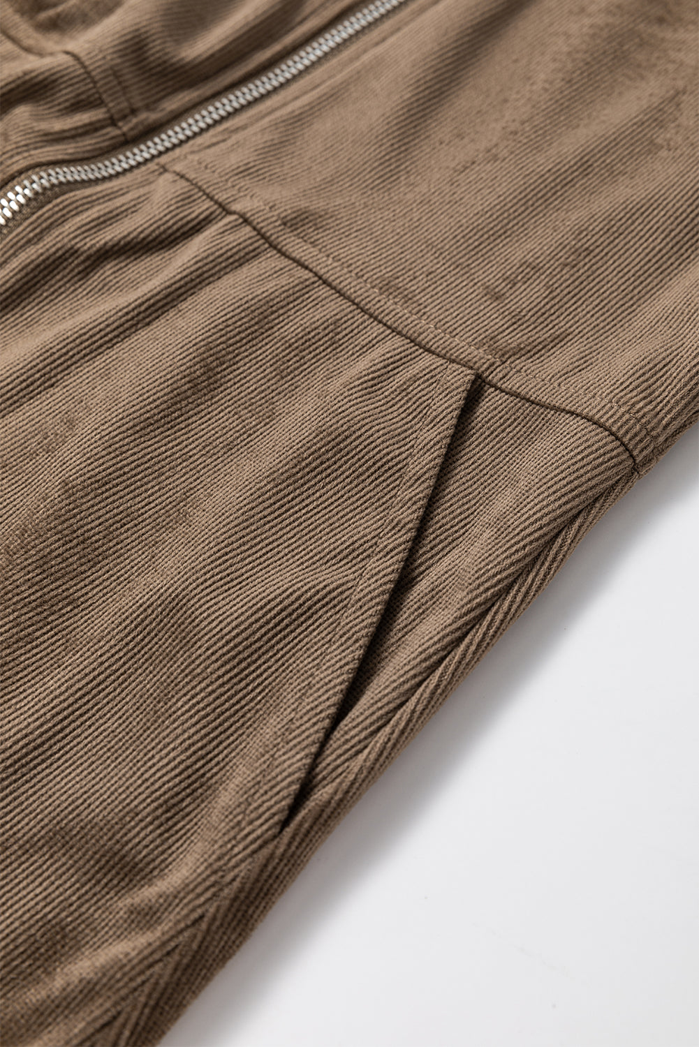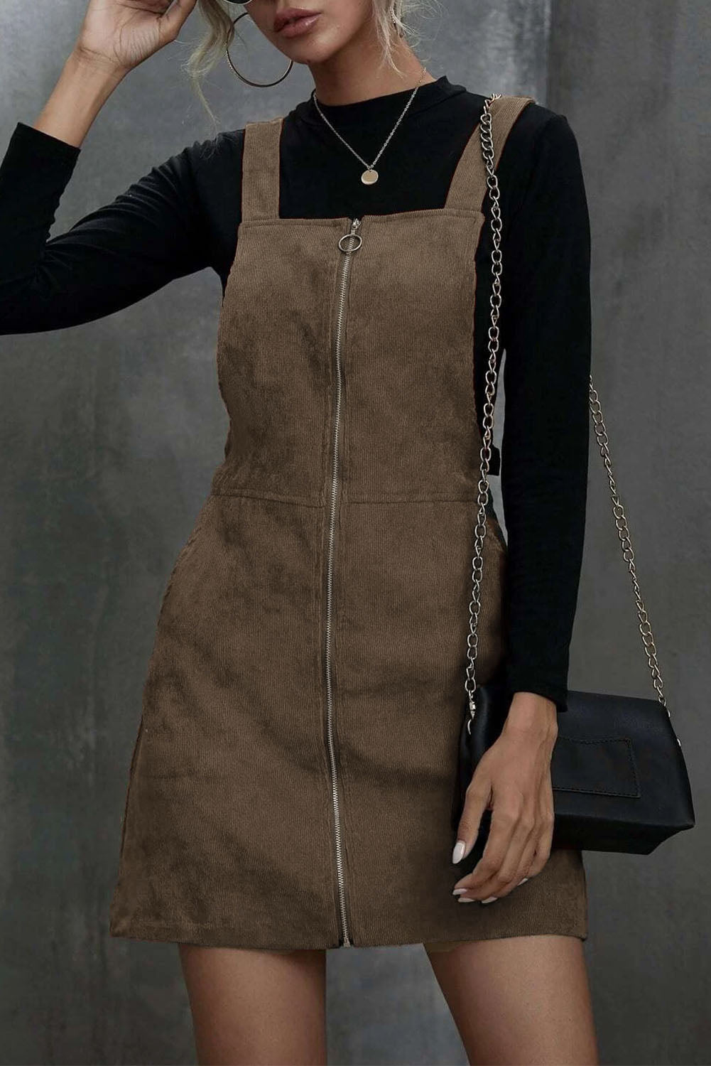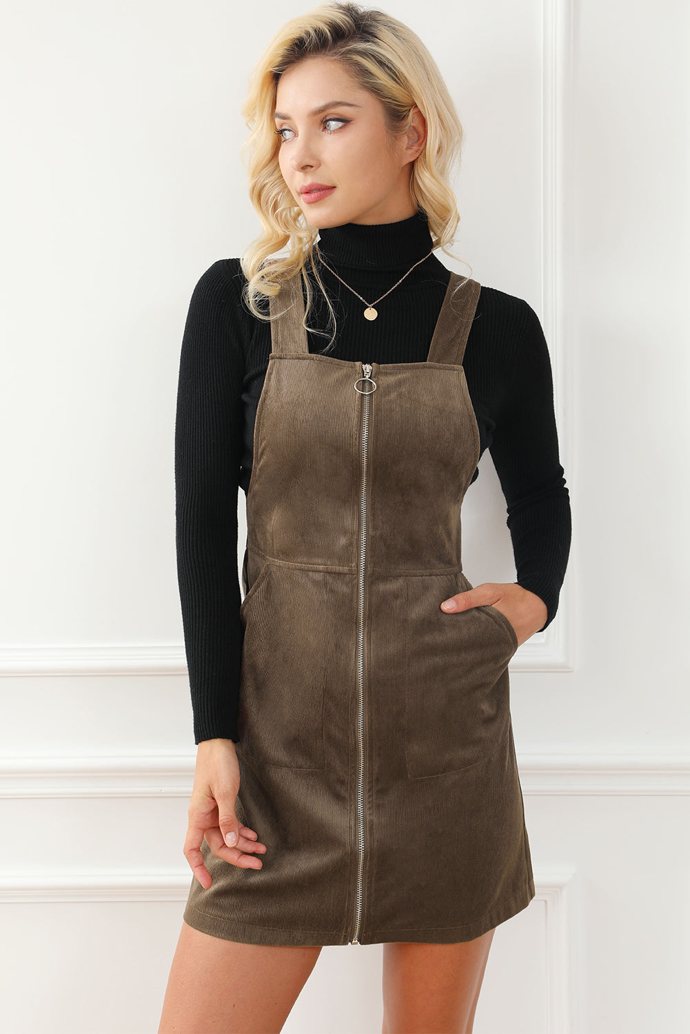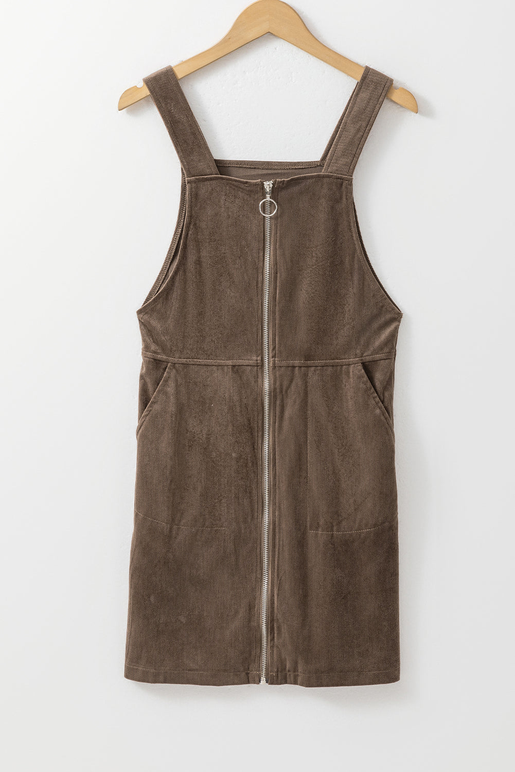 Brown O-ring Zip Up Pocketed Corduroy Dress