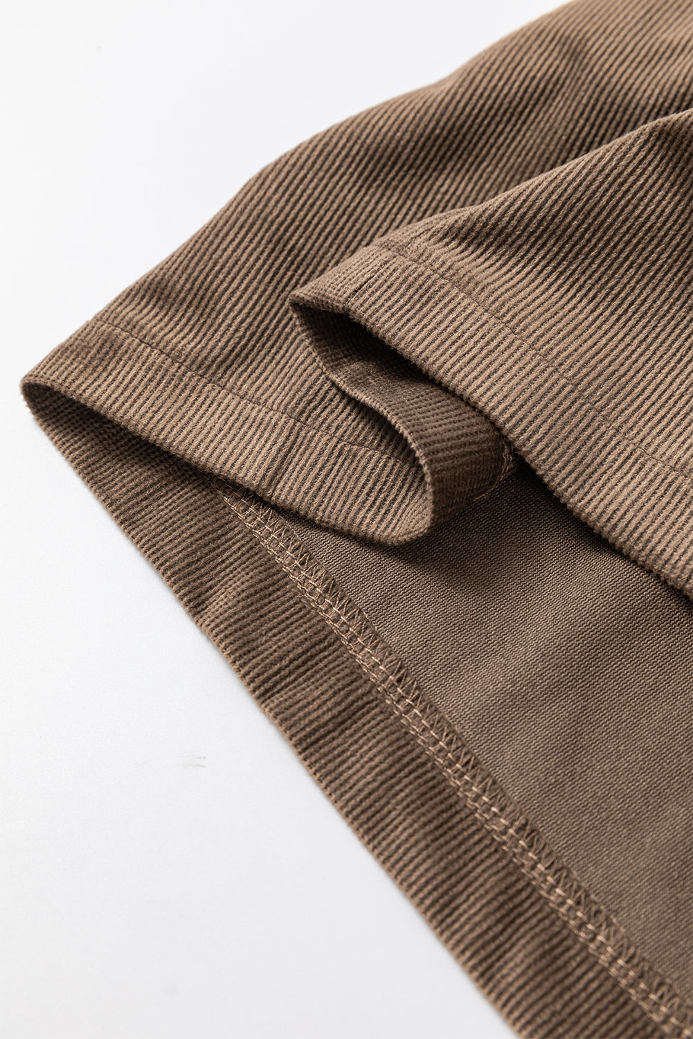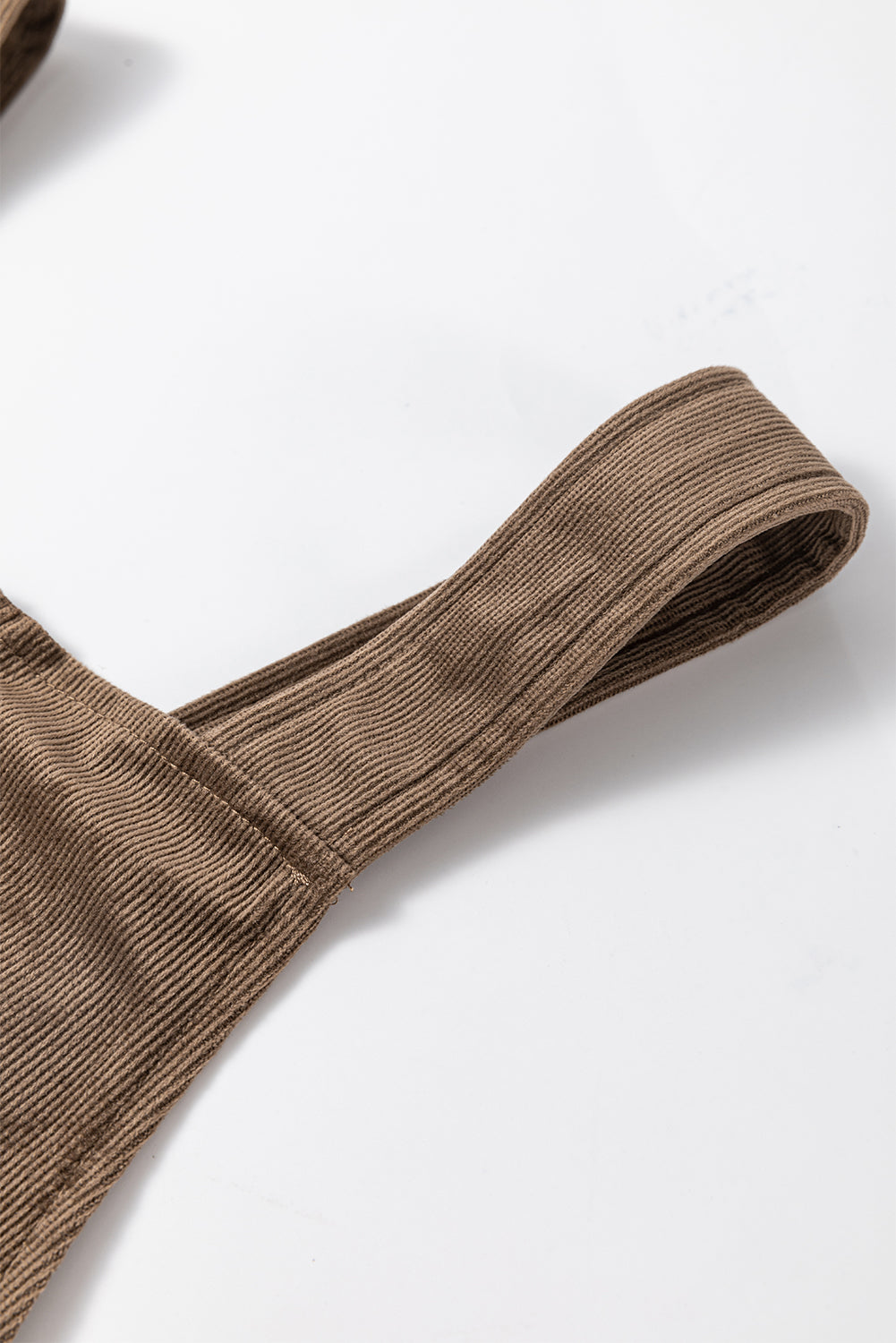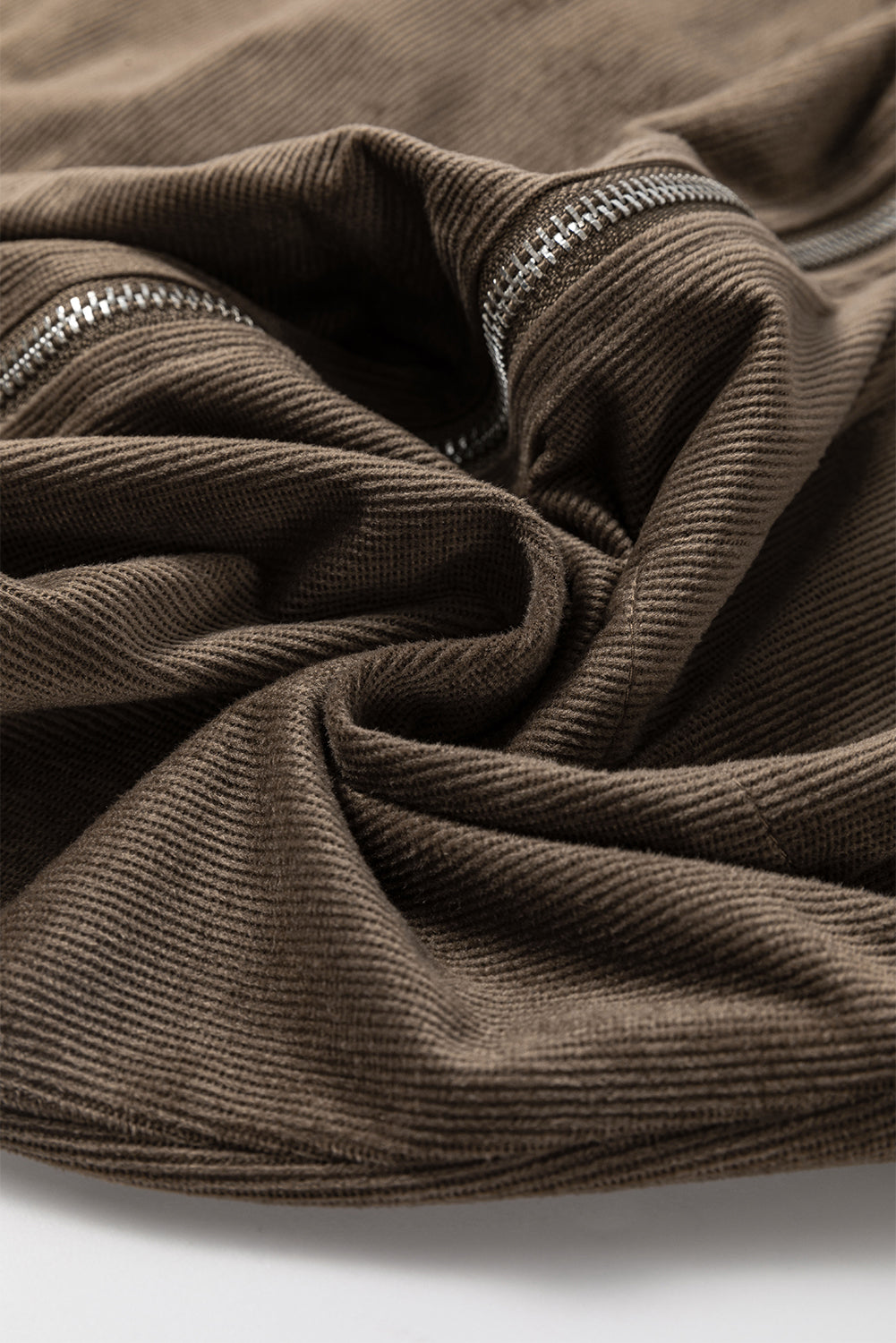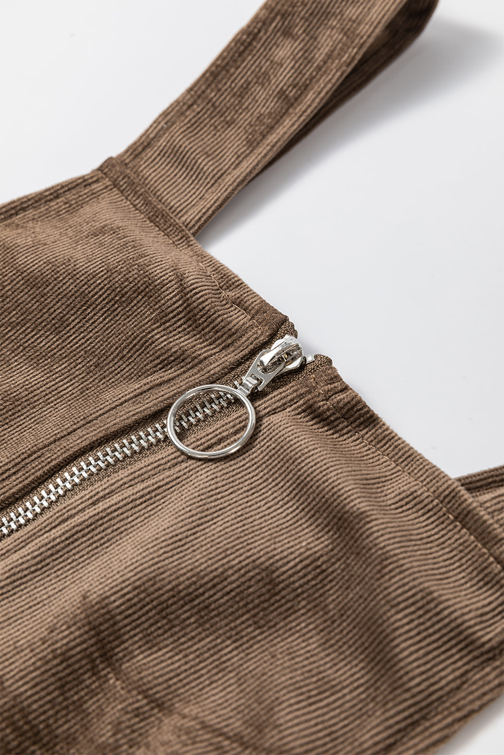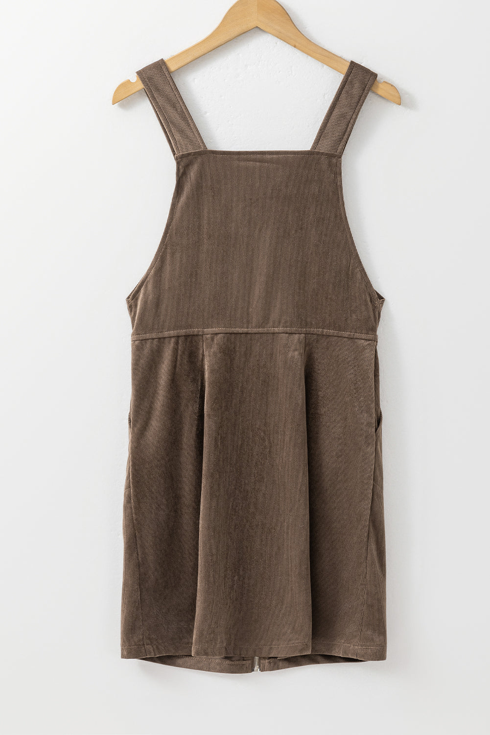 Brown O-ring Zip Up Pocketed Corduroy Dress