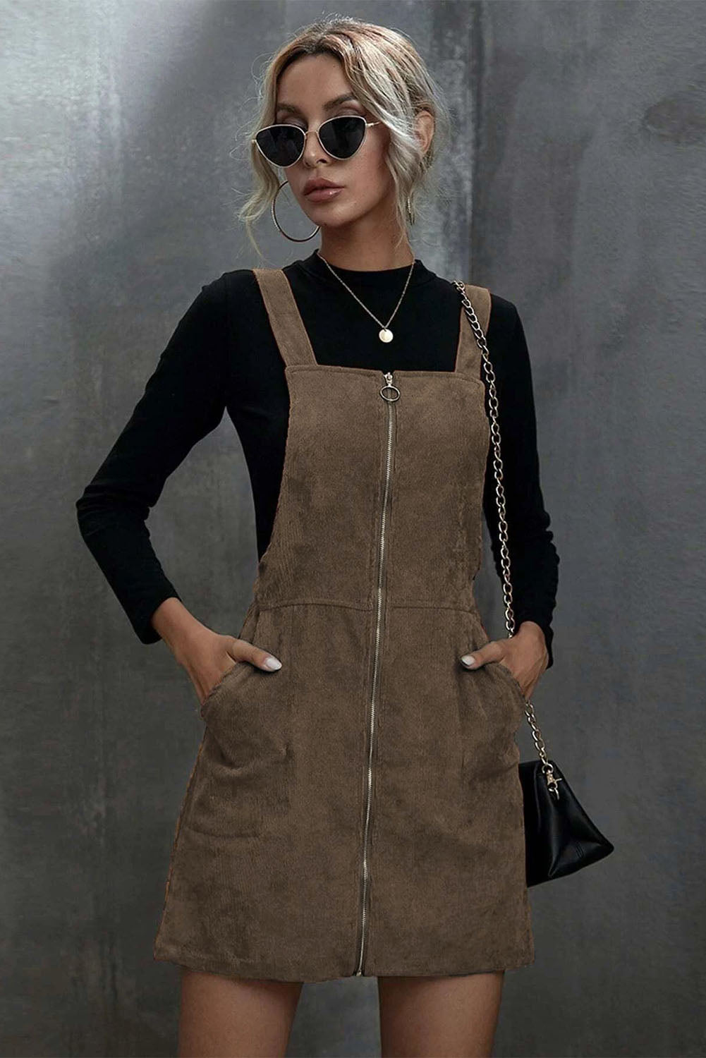 - Add a sophisticated touch to your wardrobe with this overall dress