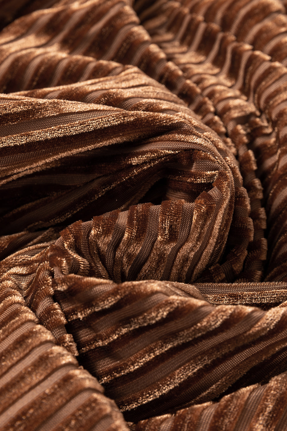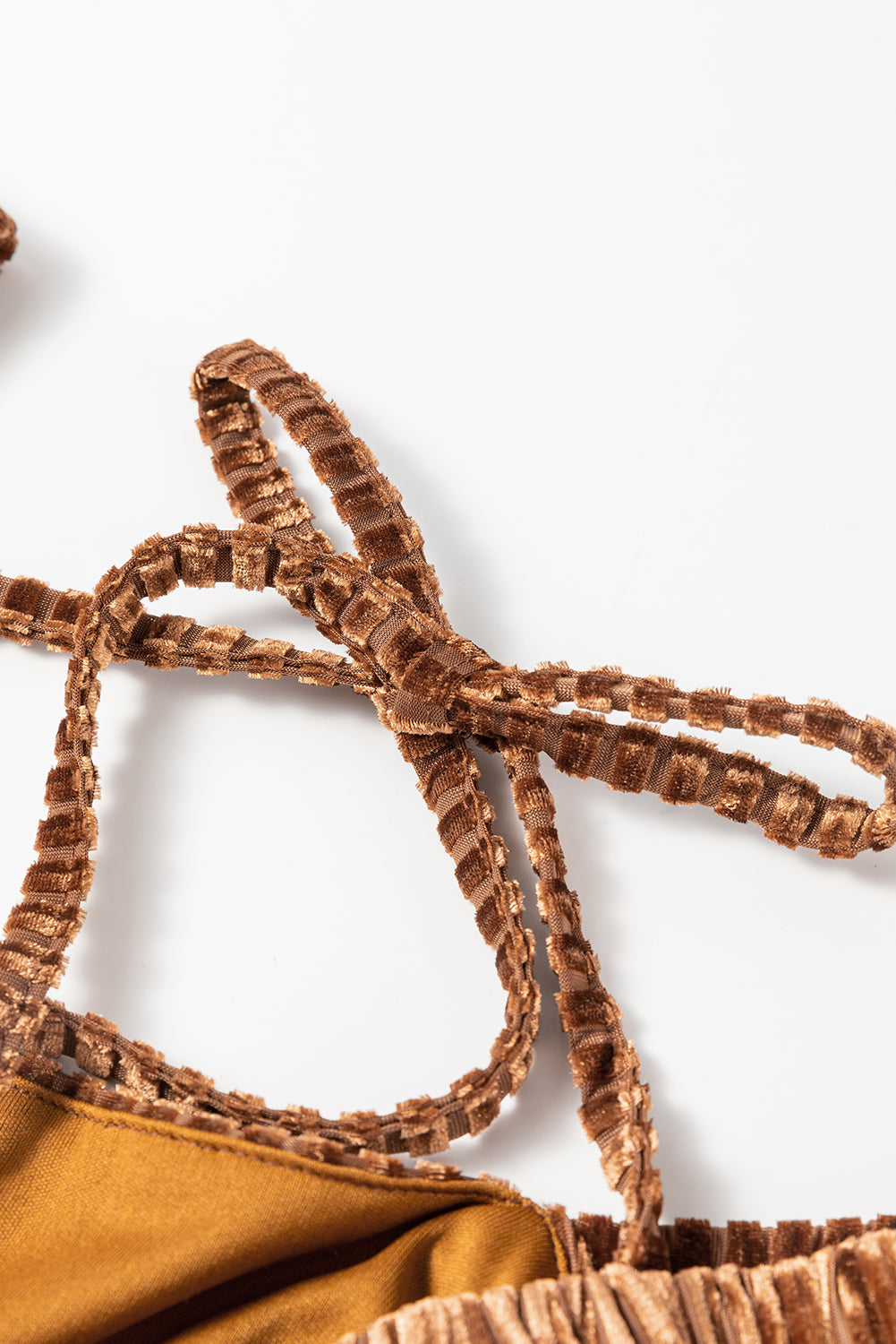 Brown Tie Back Square Neck Velvet Babydoll Dress