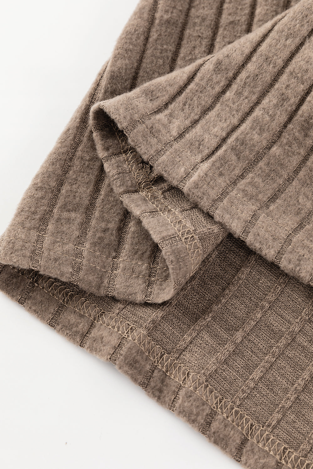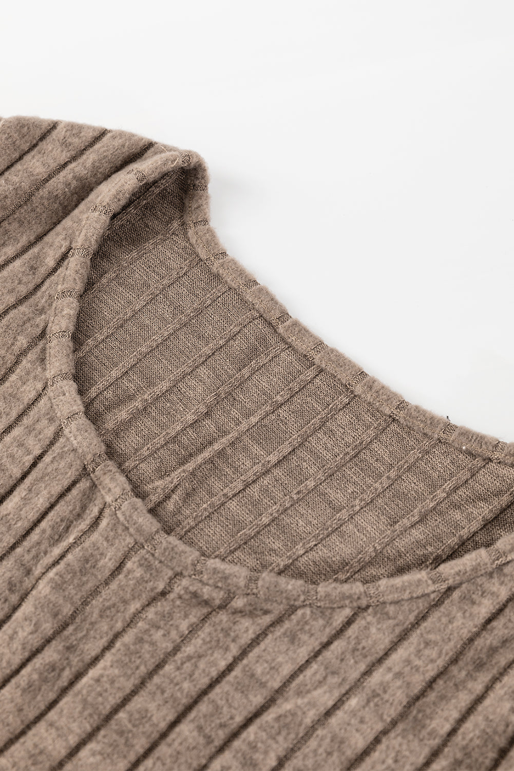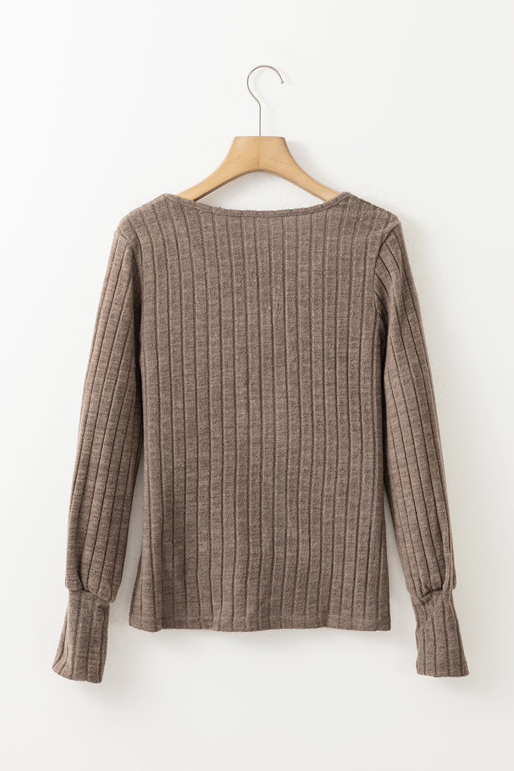 Camel Ribbed Bishop Sleeve Round Neck Top