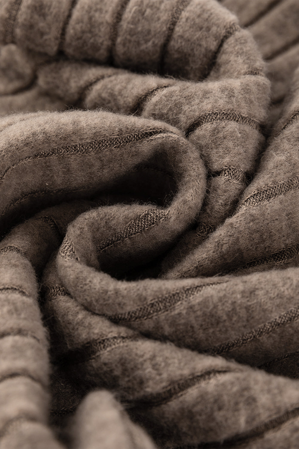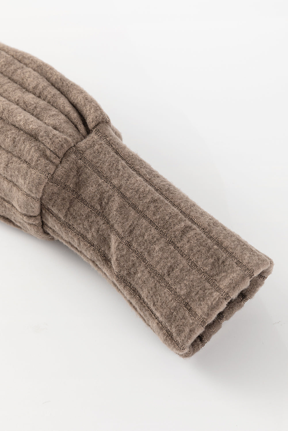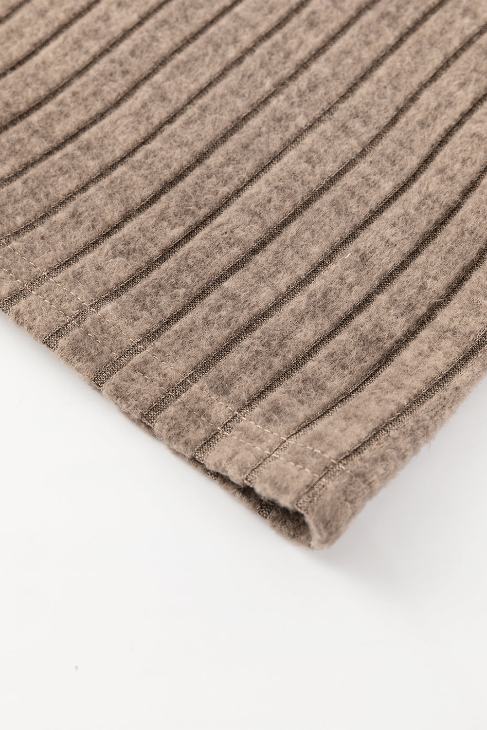 Camel Ribbed Bishop Sleeve Round Neck Top