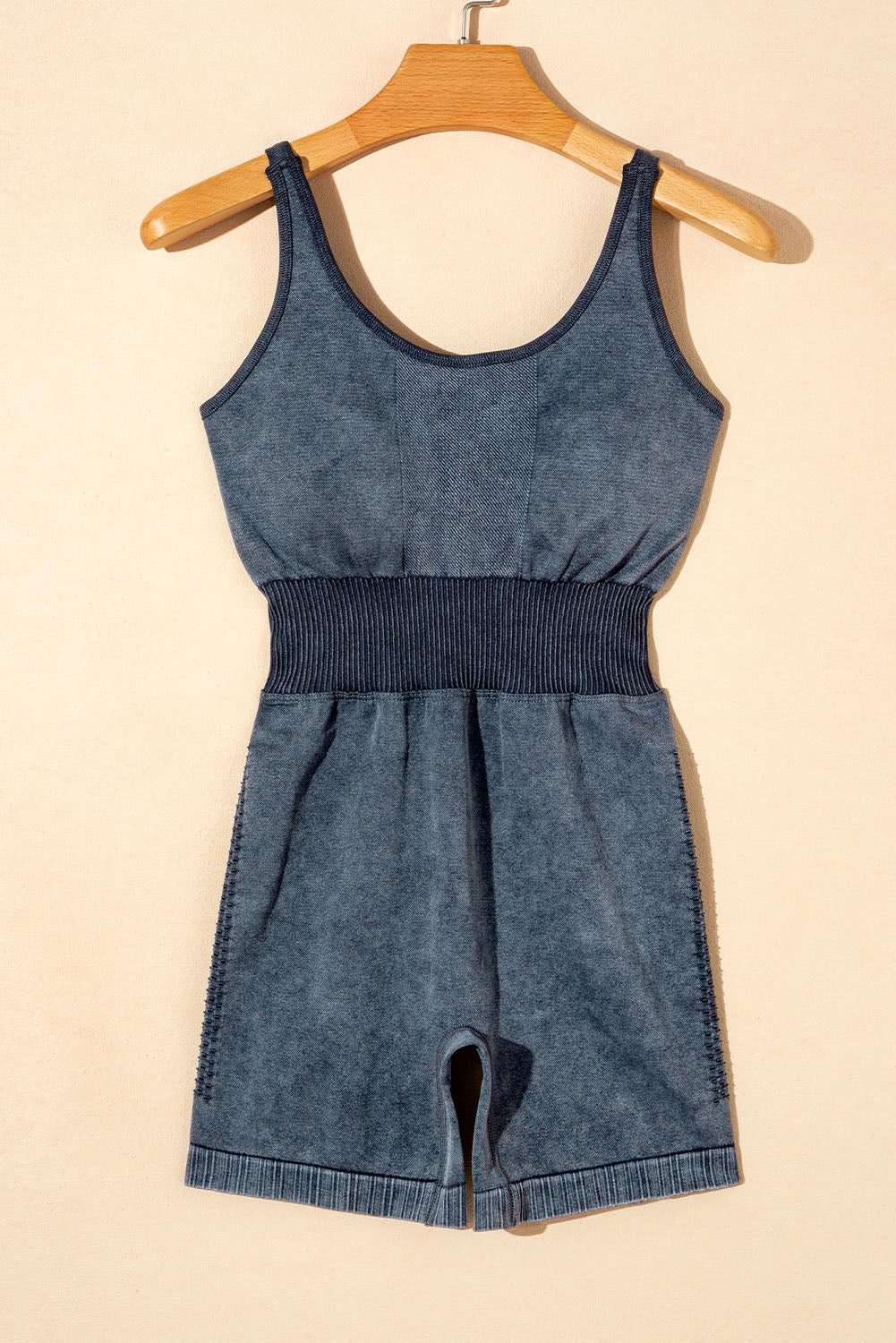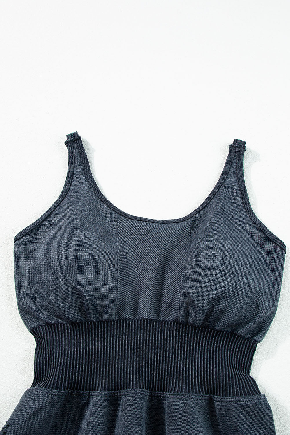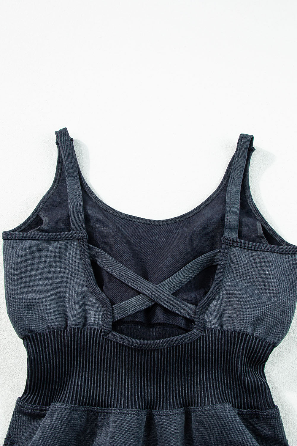 Carbon Grey Mineral Wash Ribbed High Waist Athleisure Romper