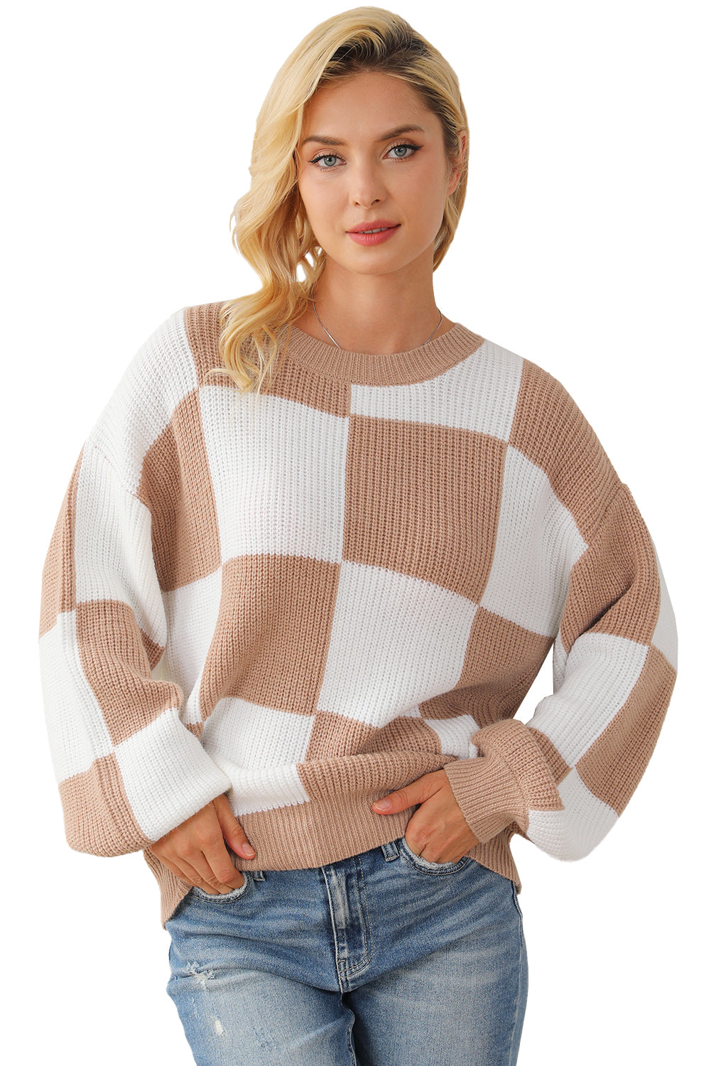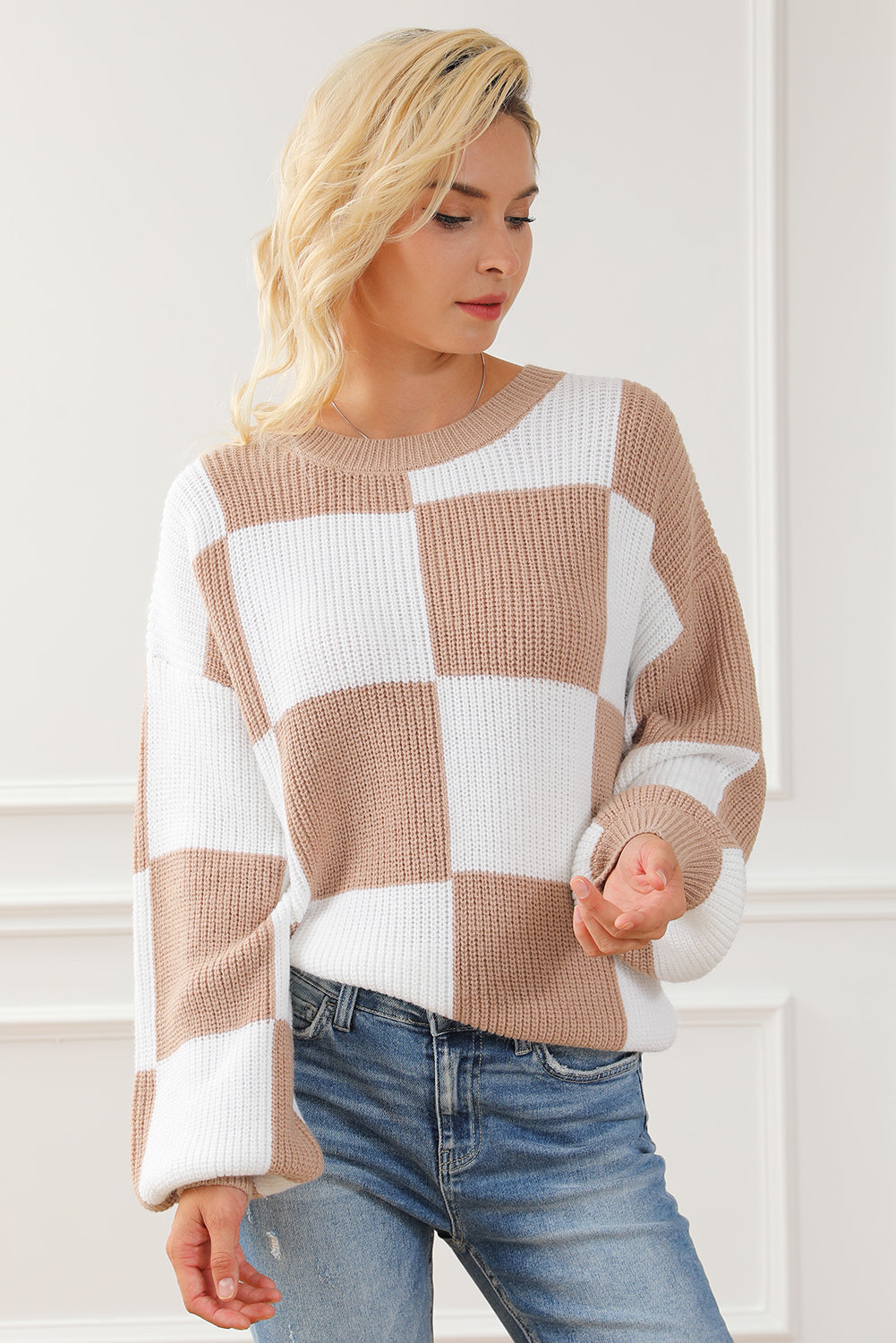 - This sweater for women is classic and stylish for the contrast checkered pattern