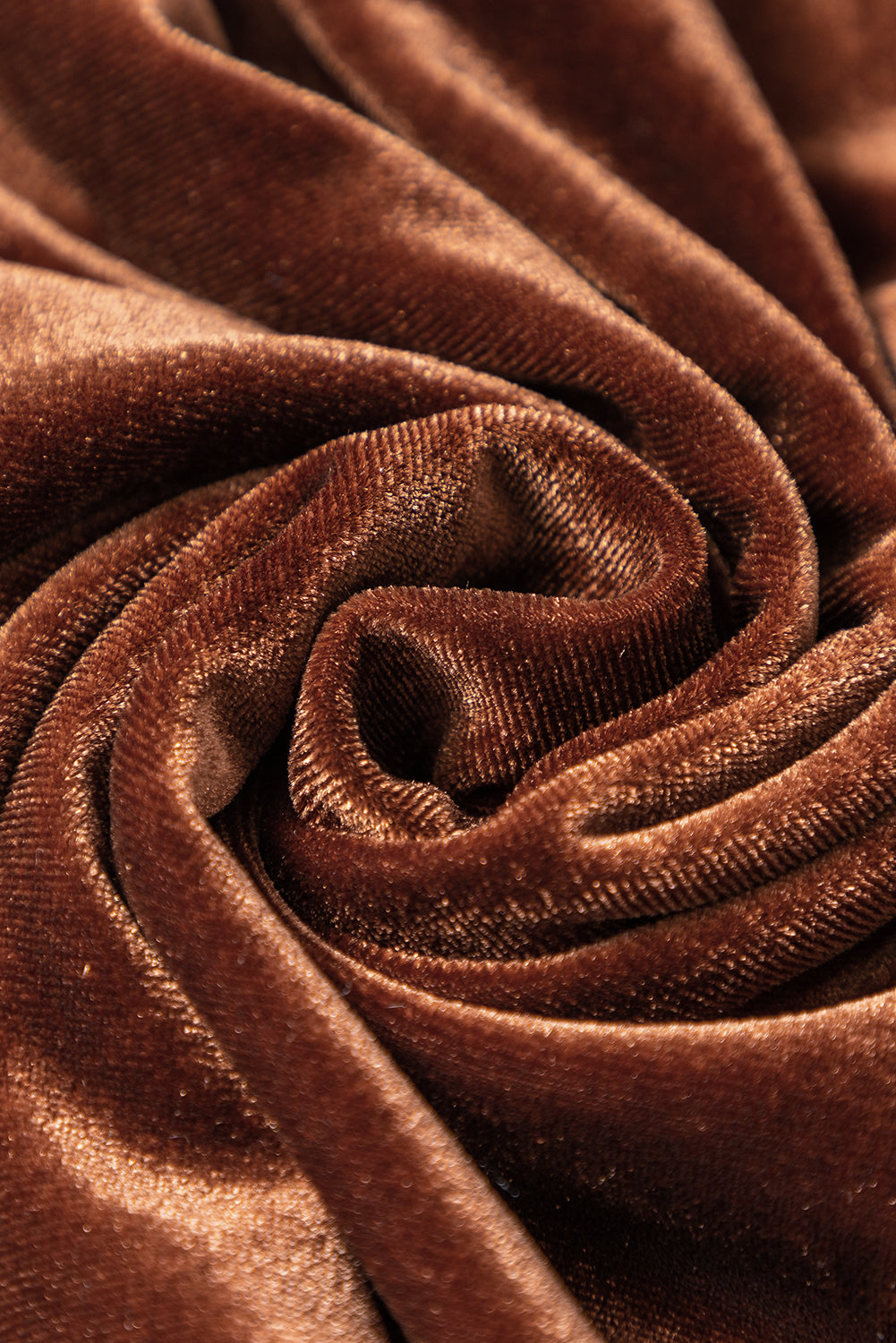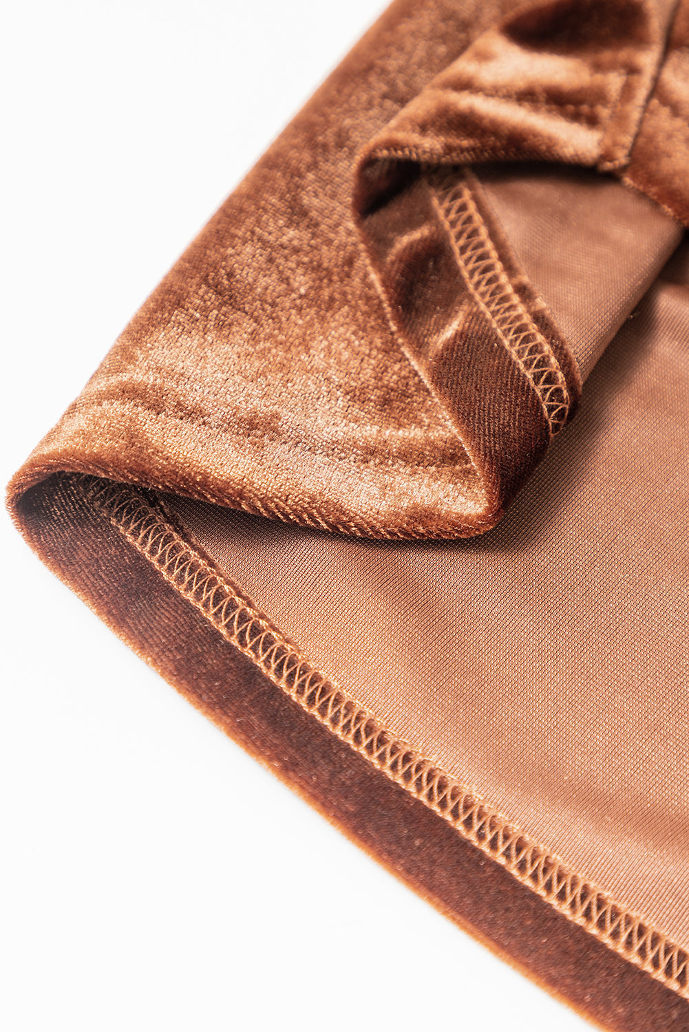 Coffee Collared V Neck Two Pockets Shift Velvet Dress