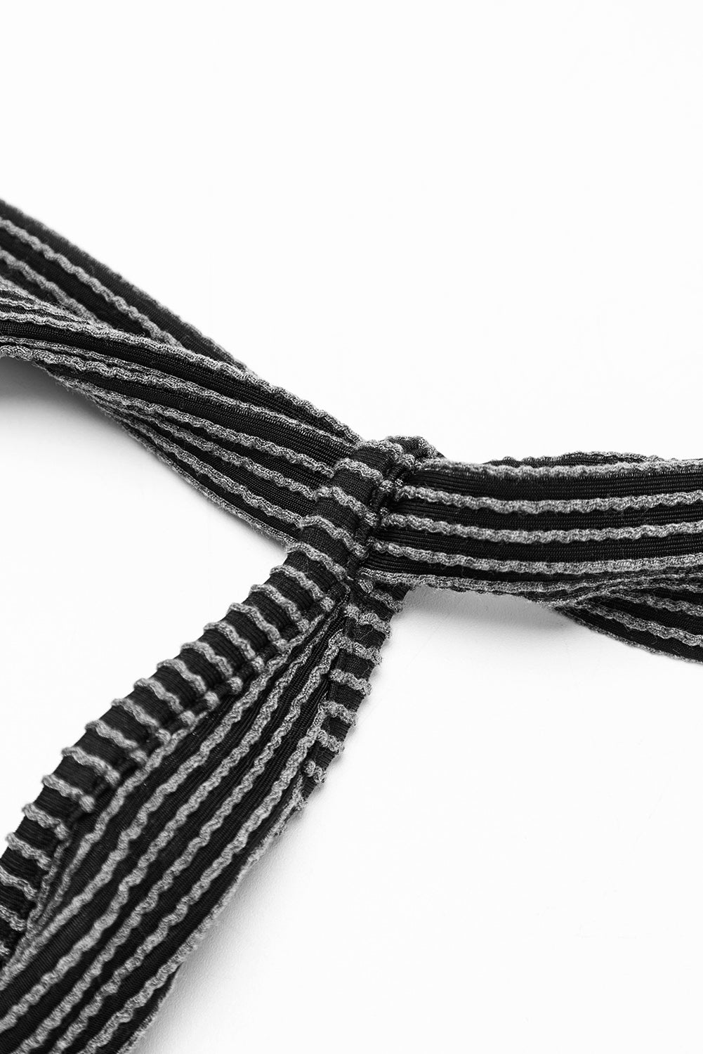 Dark Grey Striped Print Knotted Straps Pocketed Romper