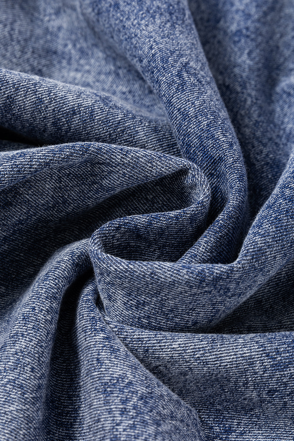 Dusk Blue Acid Wash Pearl Embellishments O-neck Denim Top