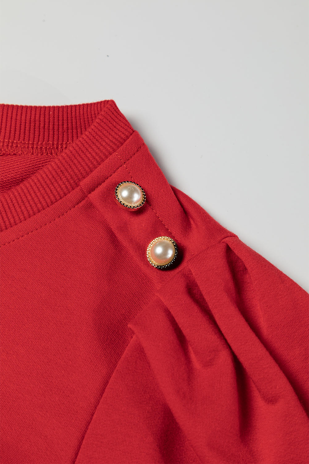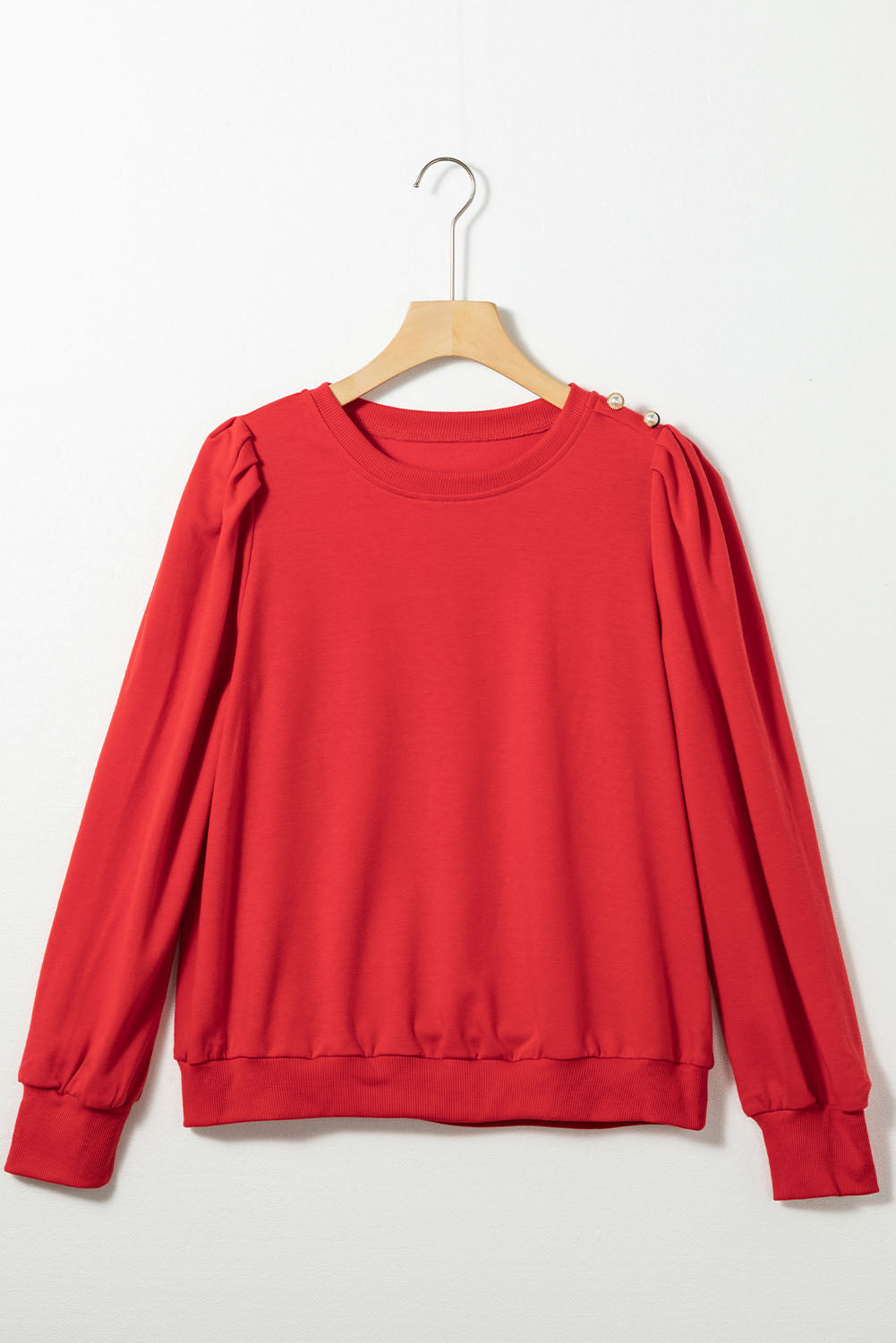 - Bishop sleeves, round neck, and shift cut to create a versatile style