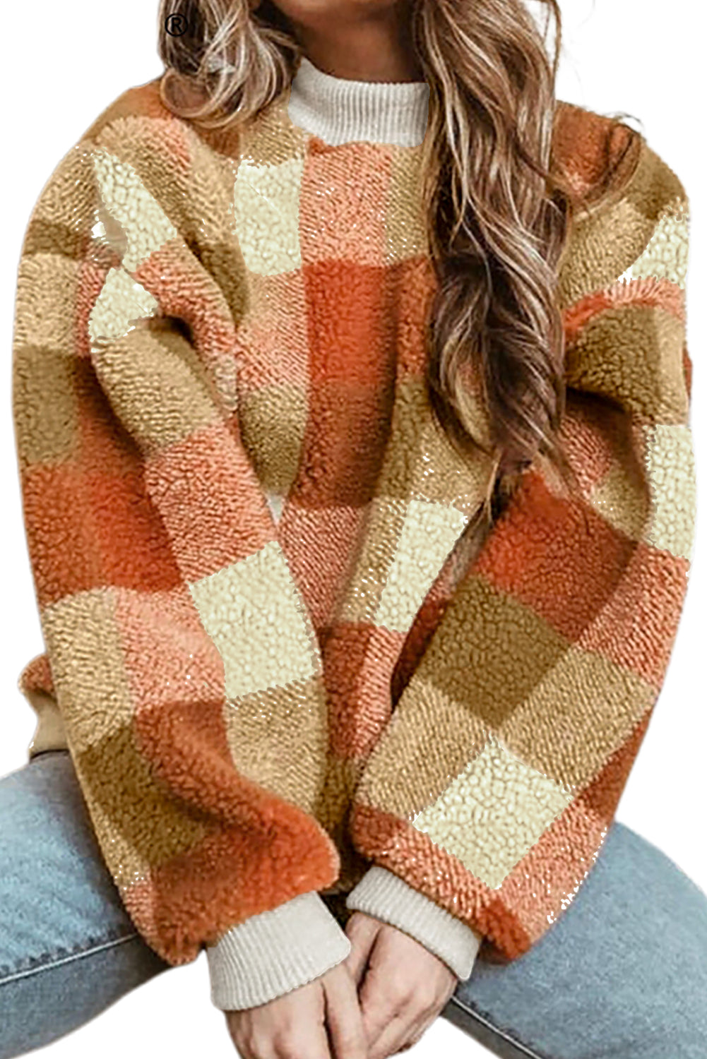 Gold Flame Vintage Checkered Fleece Baggy Sweatshirt