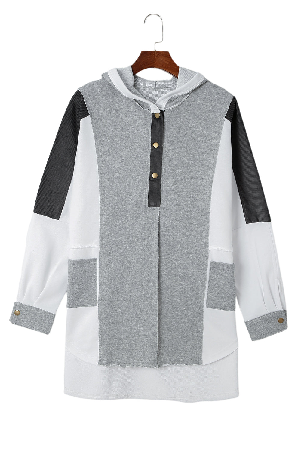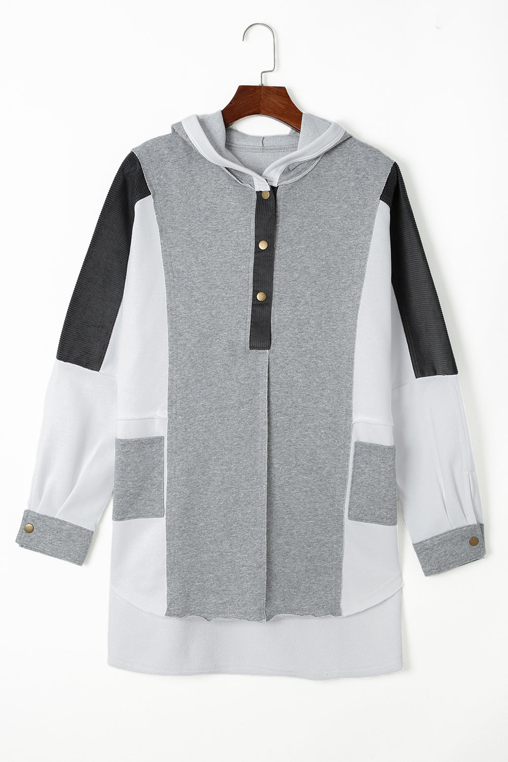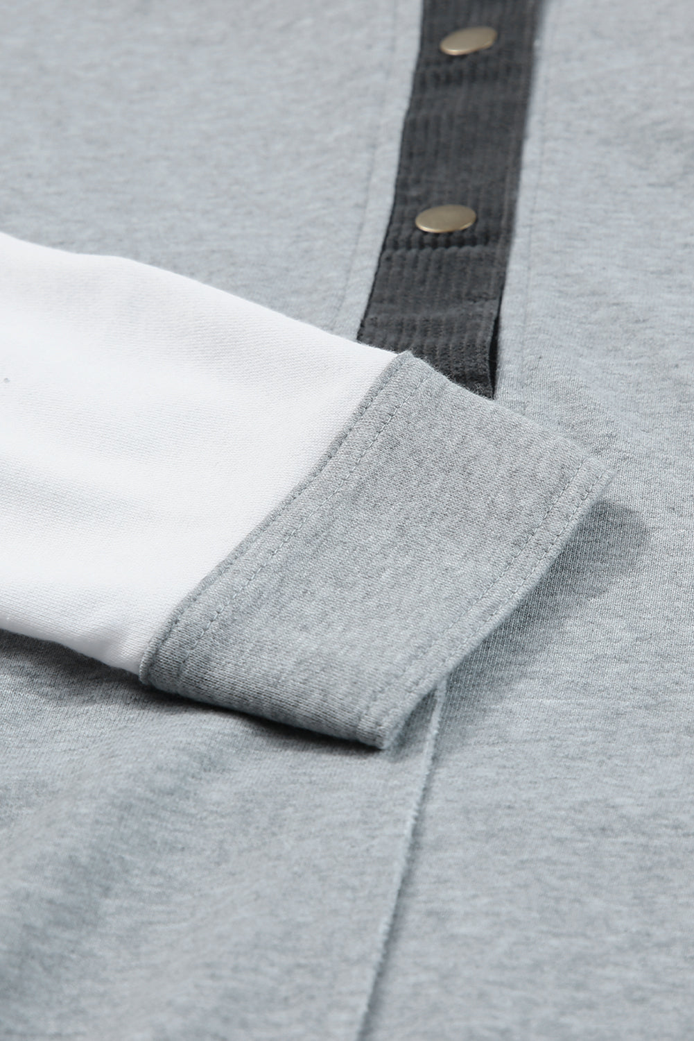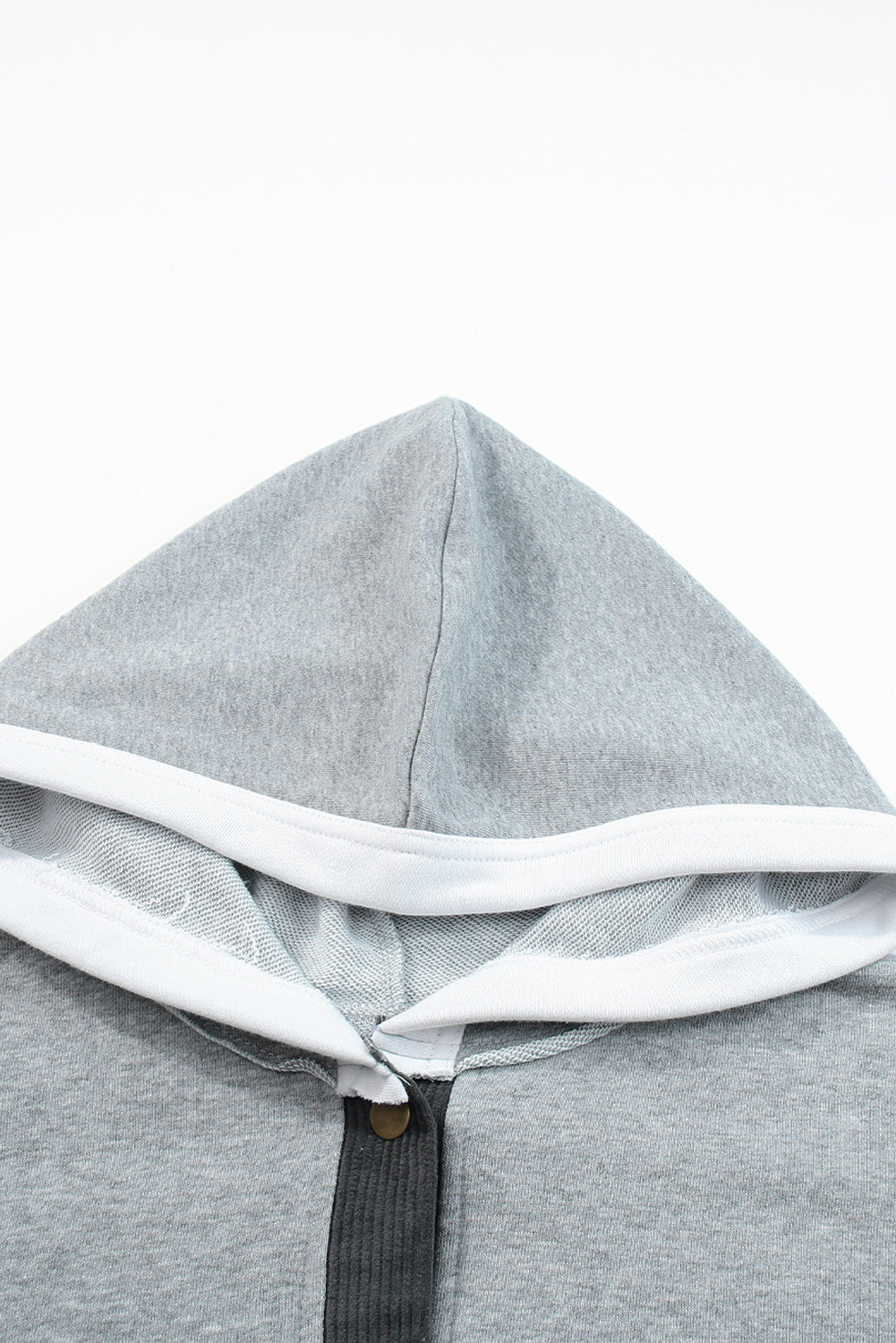 Gray Color Block Exposed Seam Buttoned Neckline Hoodie