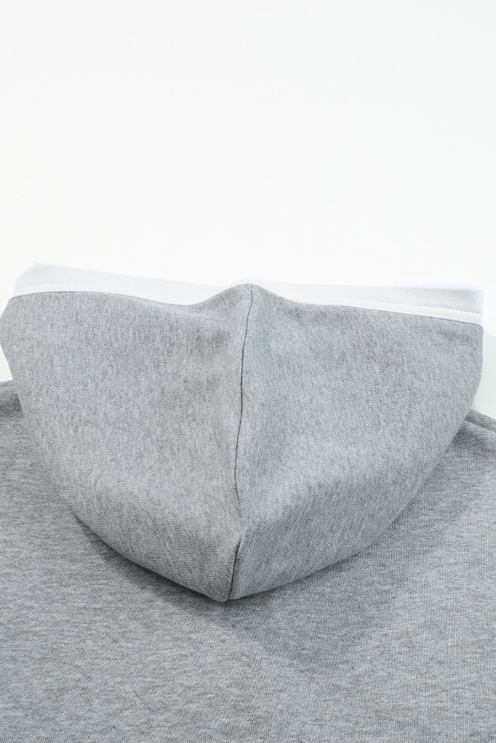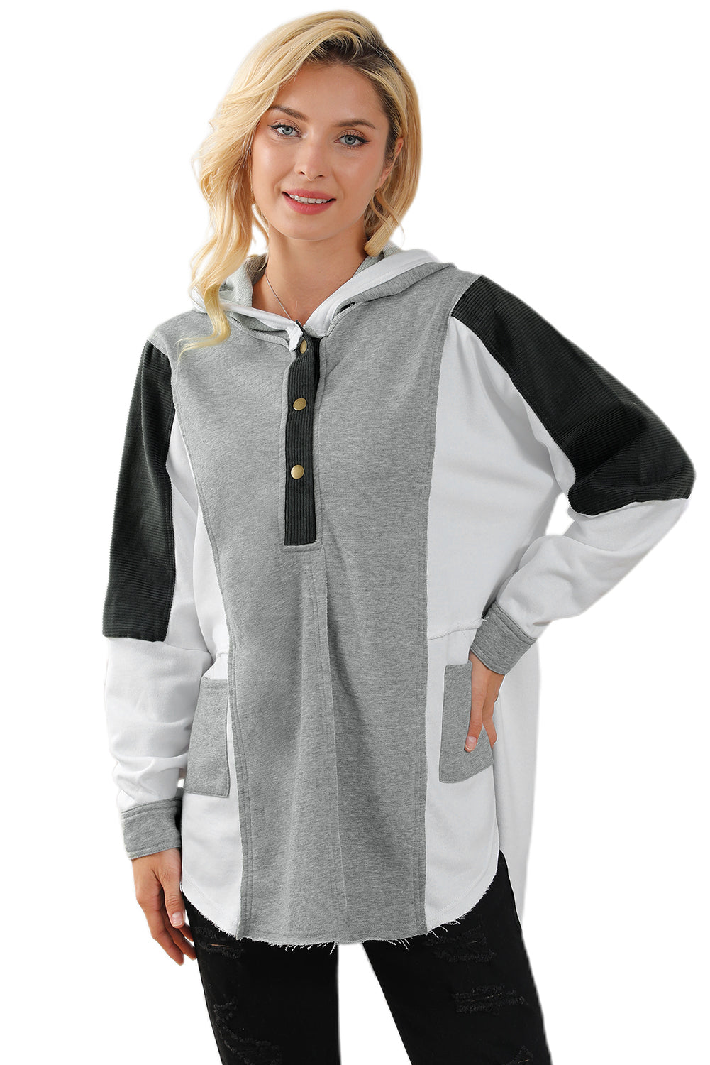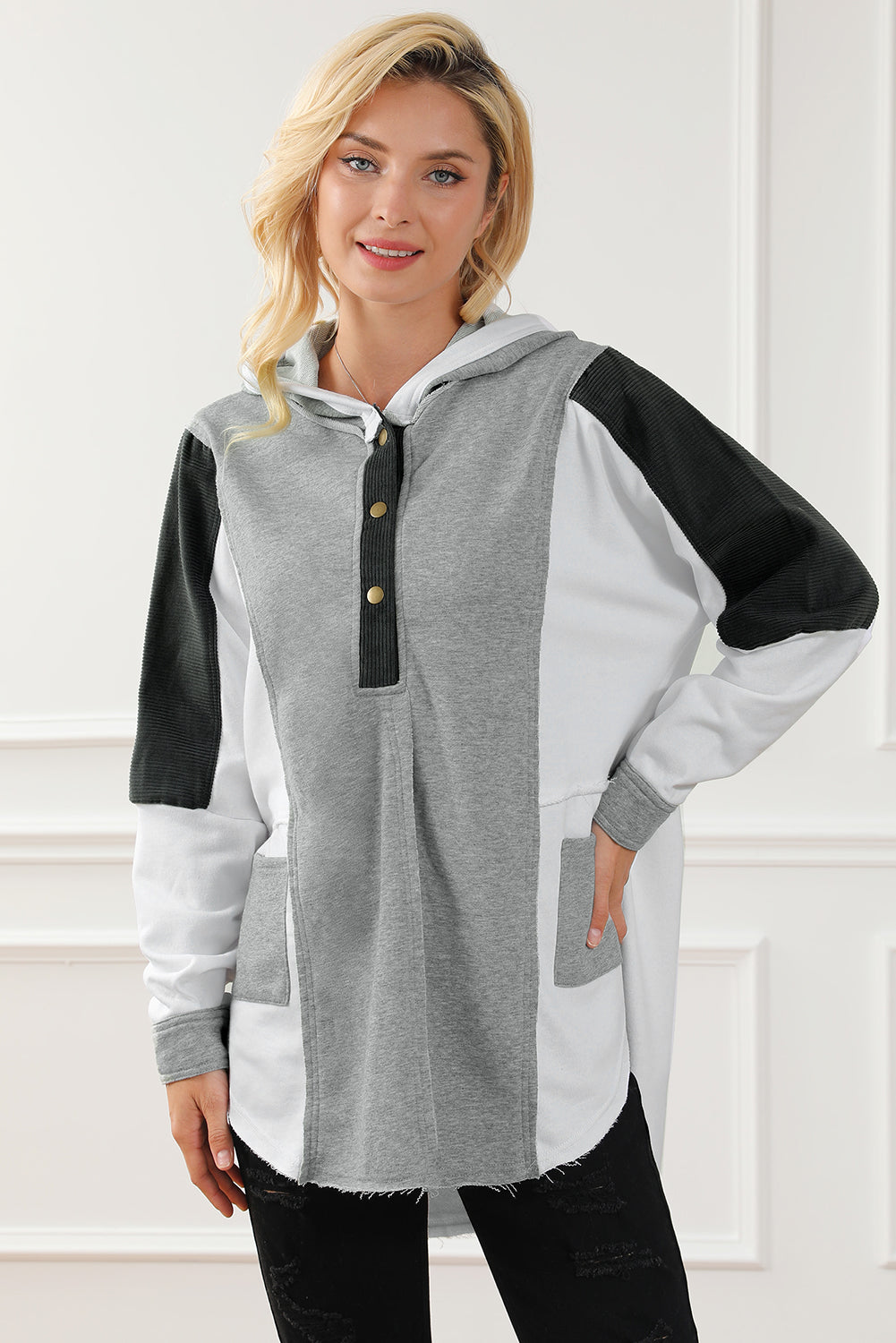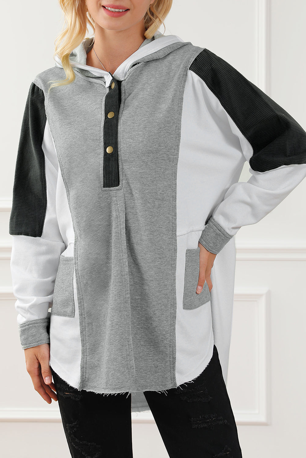 Gray Color Block Exposed Seam Buttoned Neckline Hoodie