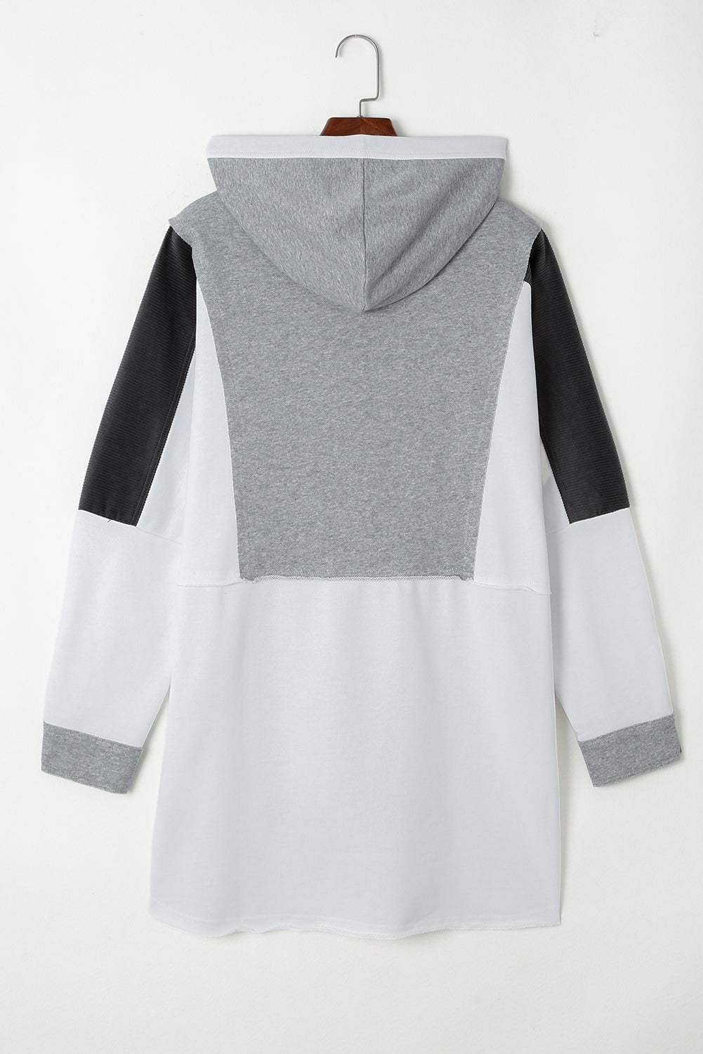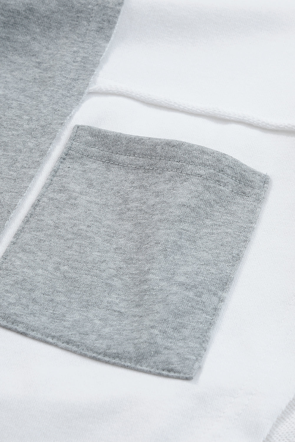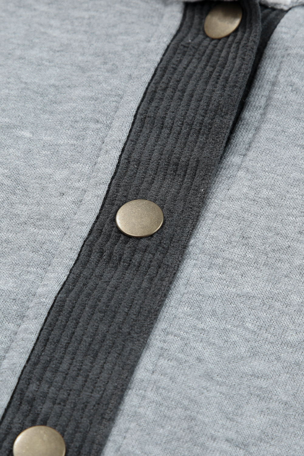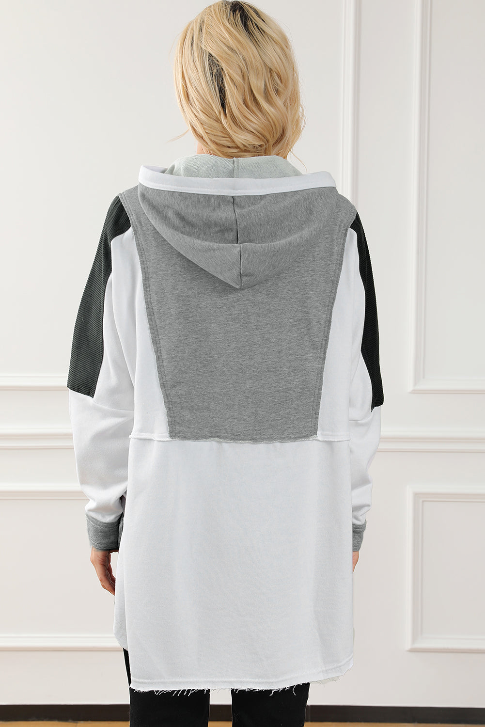 Gray Color Block Exposed Seam Buttoned Neckline Hoodie
