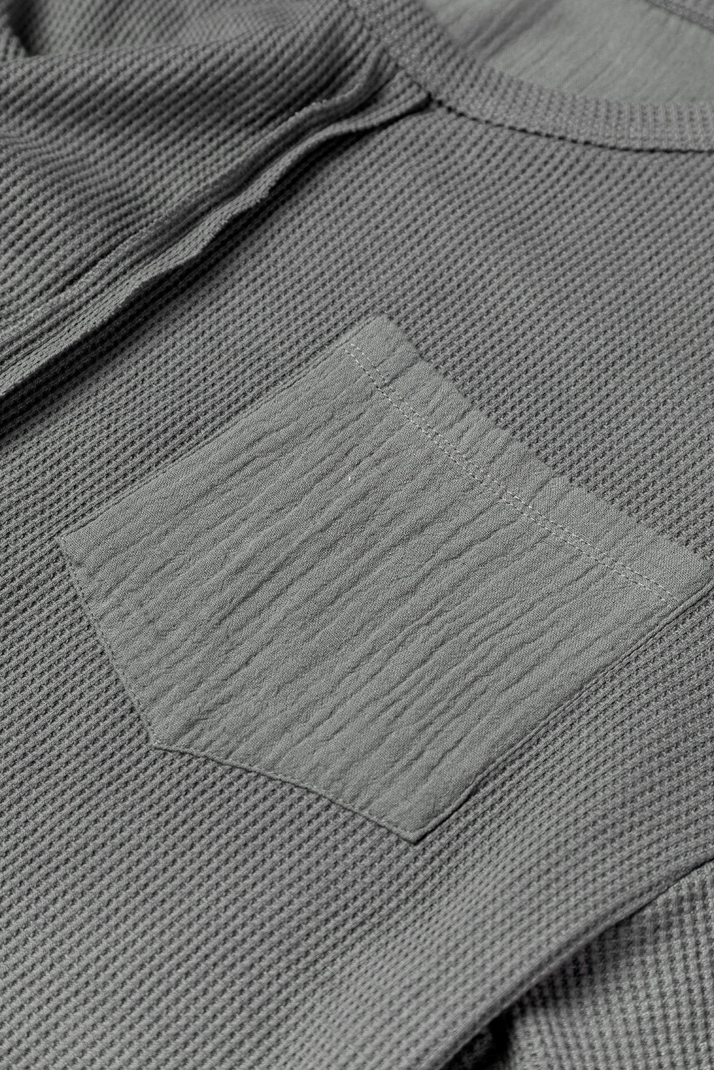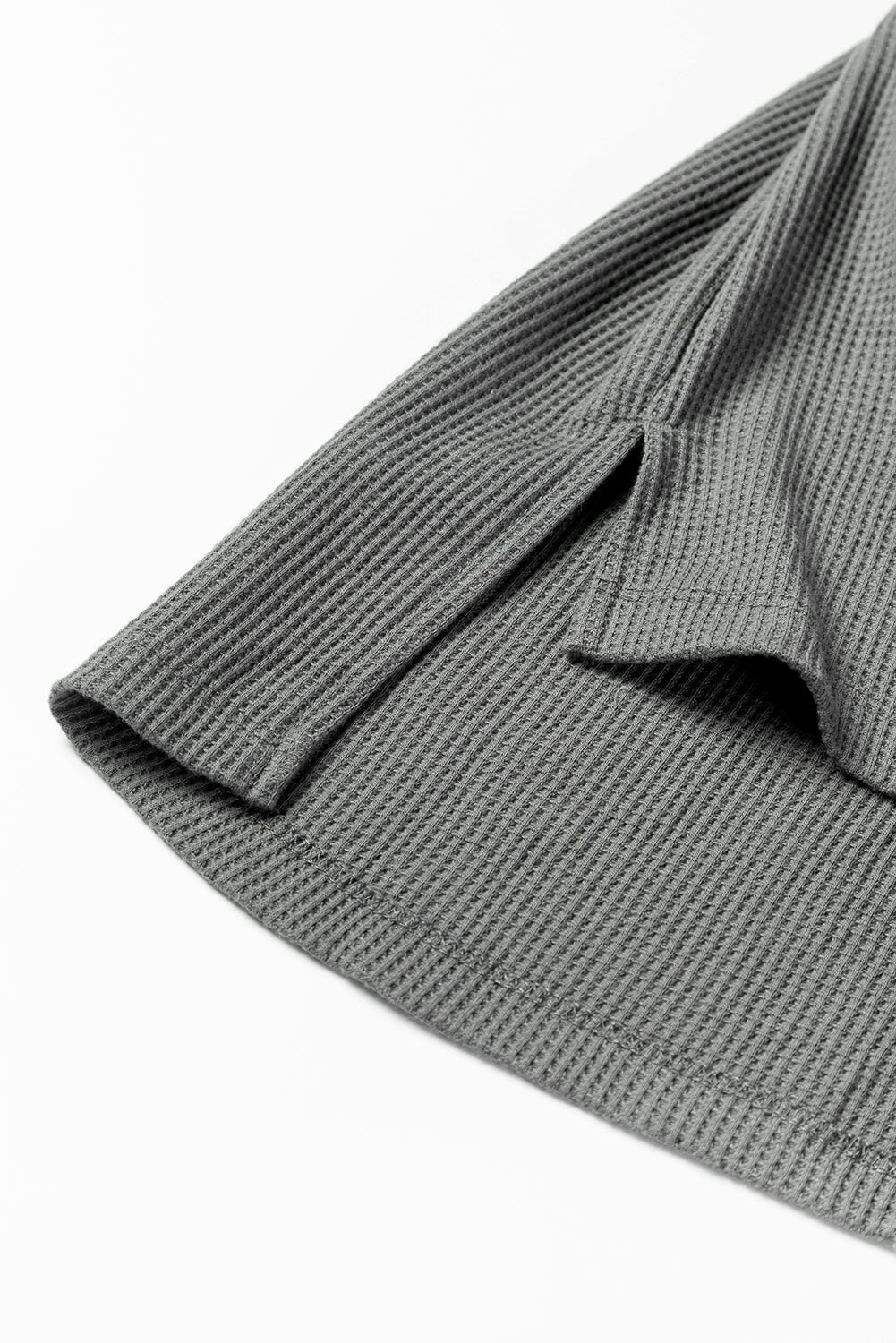 Gray Exposed Seam Patchwork Bubble Sleeve Waffle Knit Top