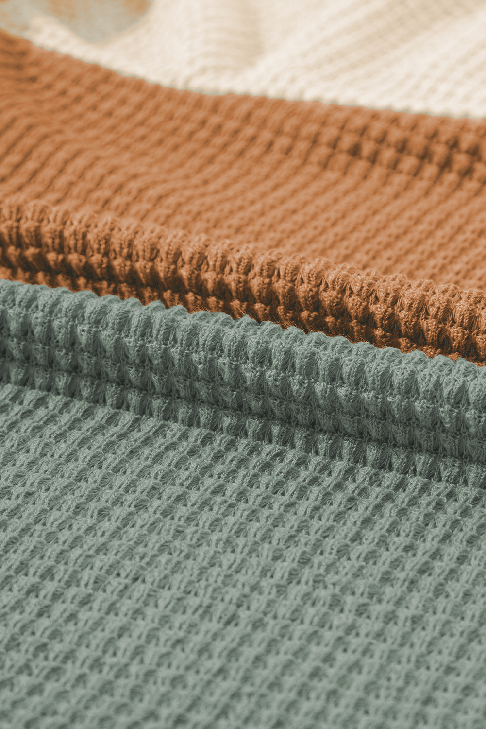 Green Stripe Textured Color Block Bubble Sleeve Baggy Top