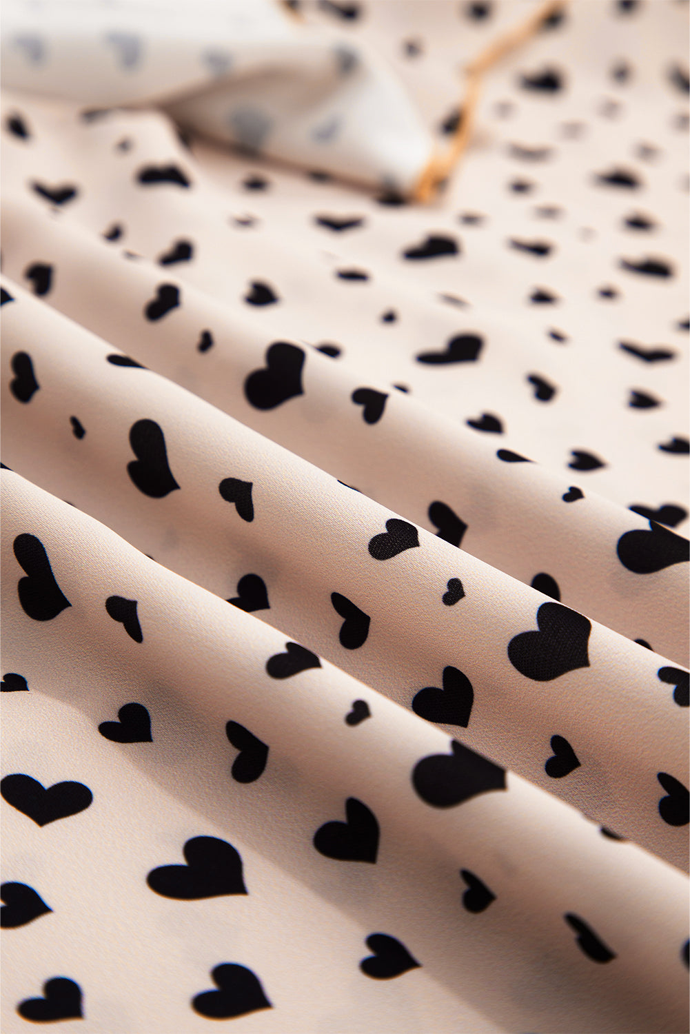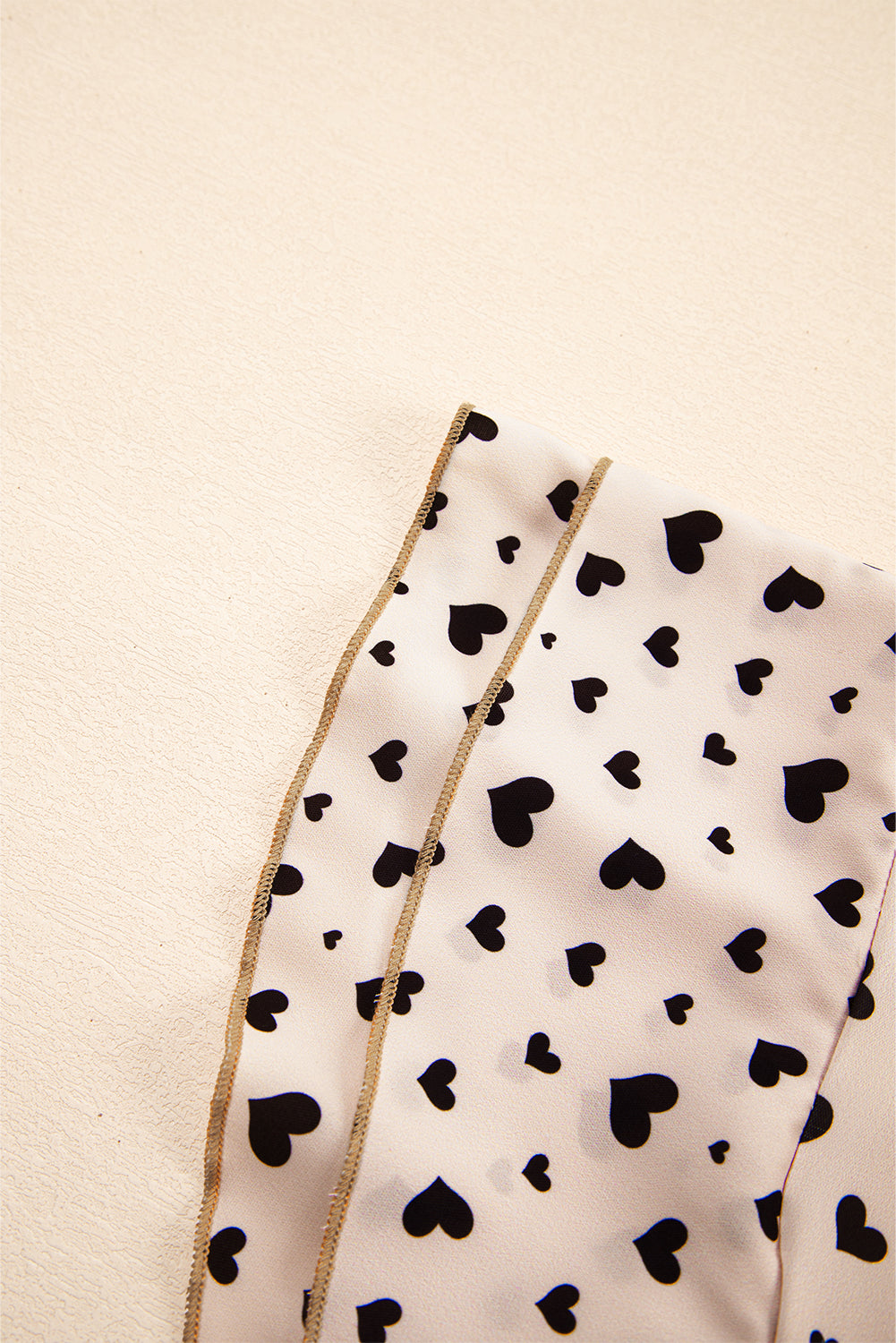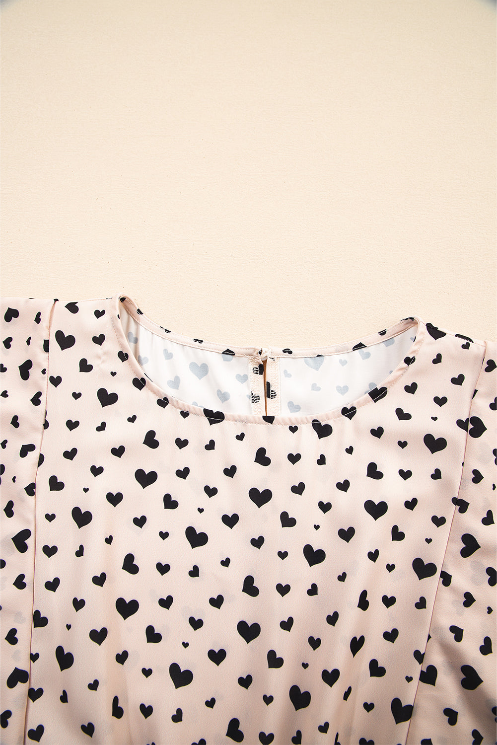 Khaki Heart Printed Flutter Sleeve Cinched Waist Tiered Ruffle Mini Dress