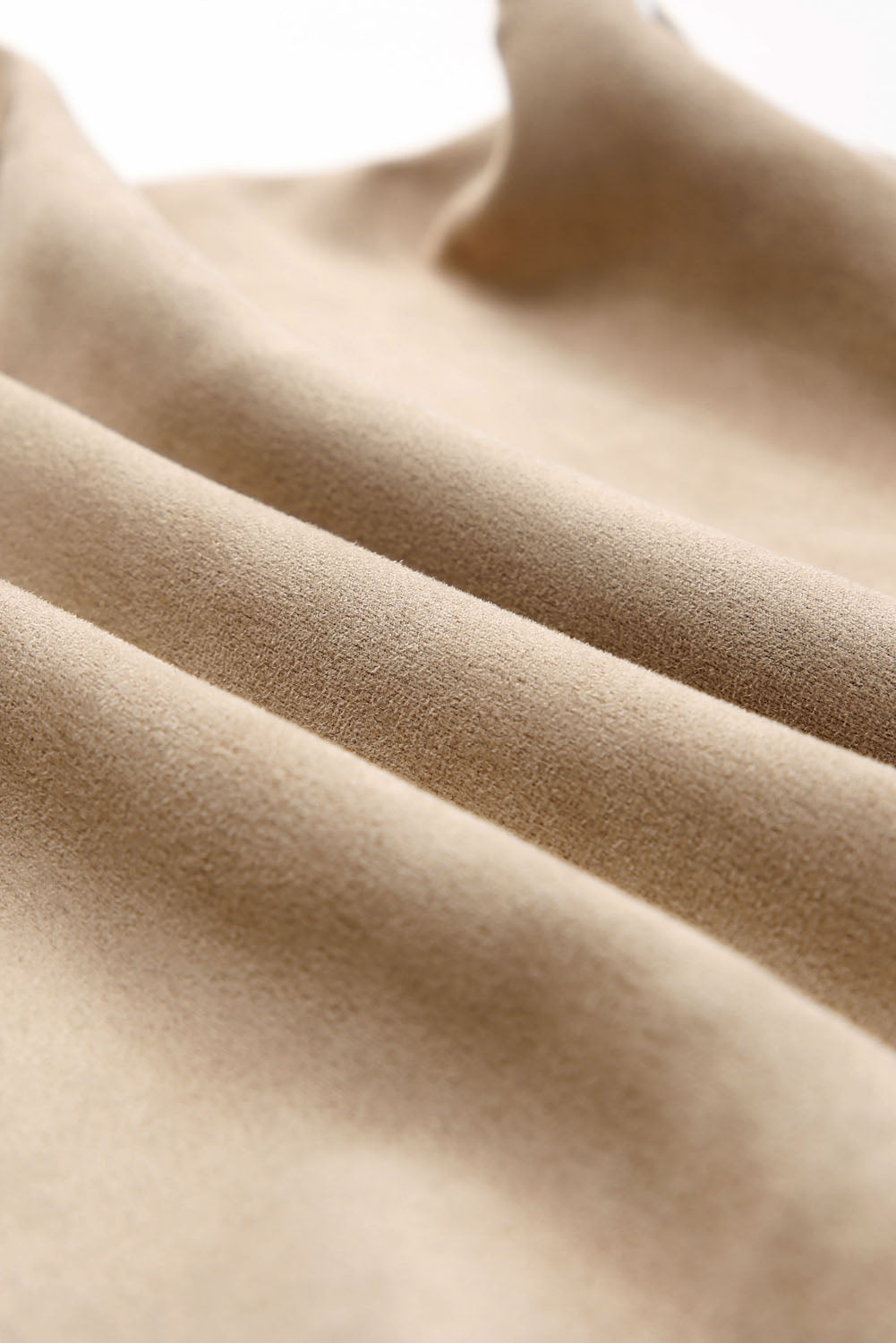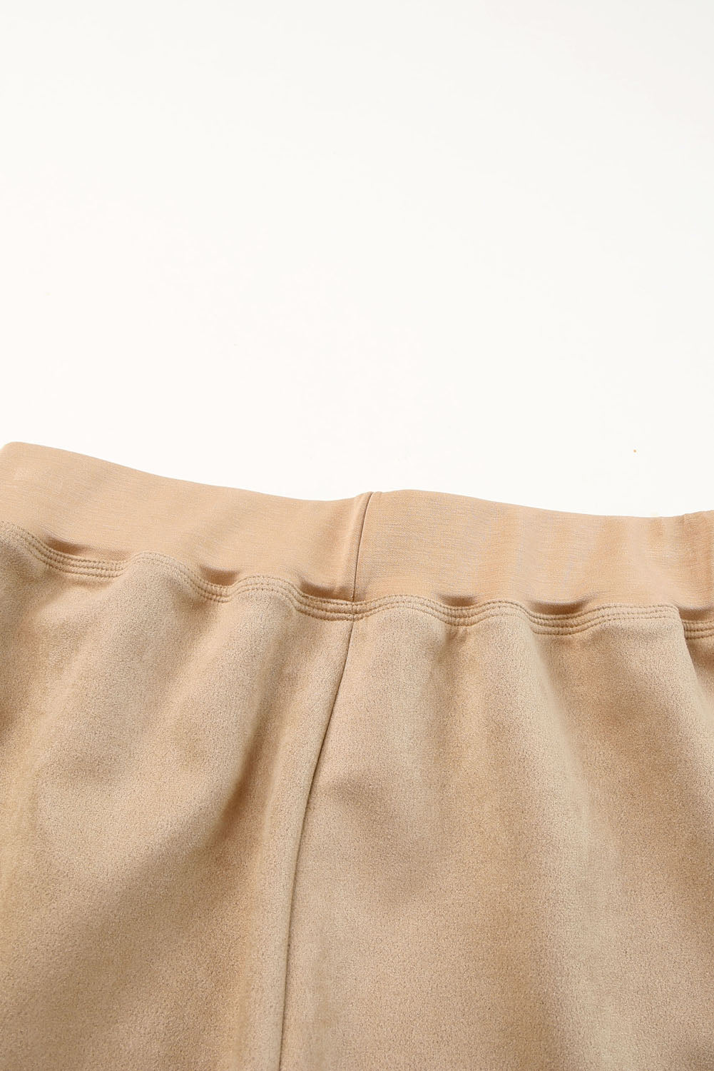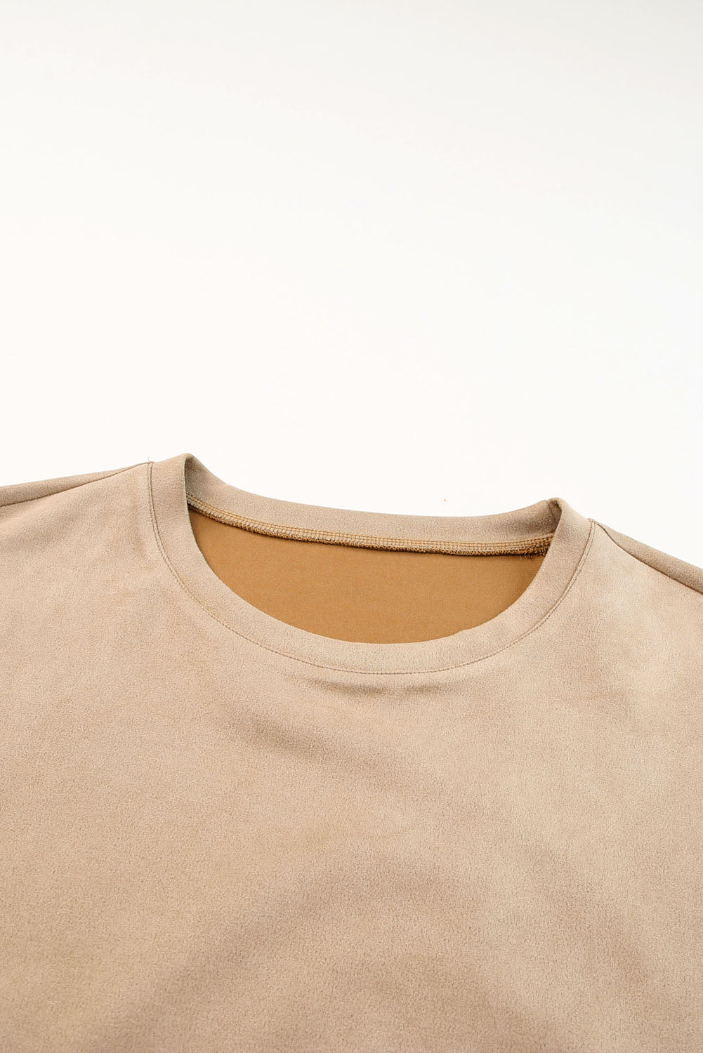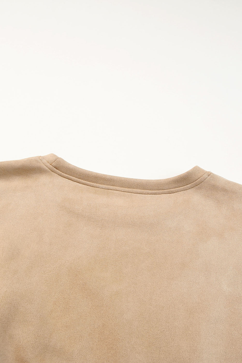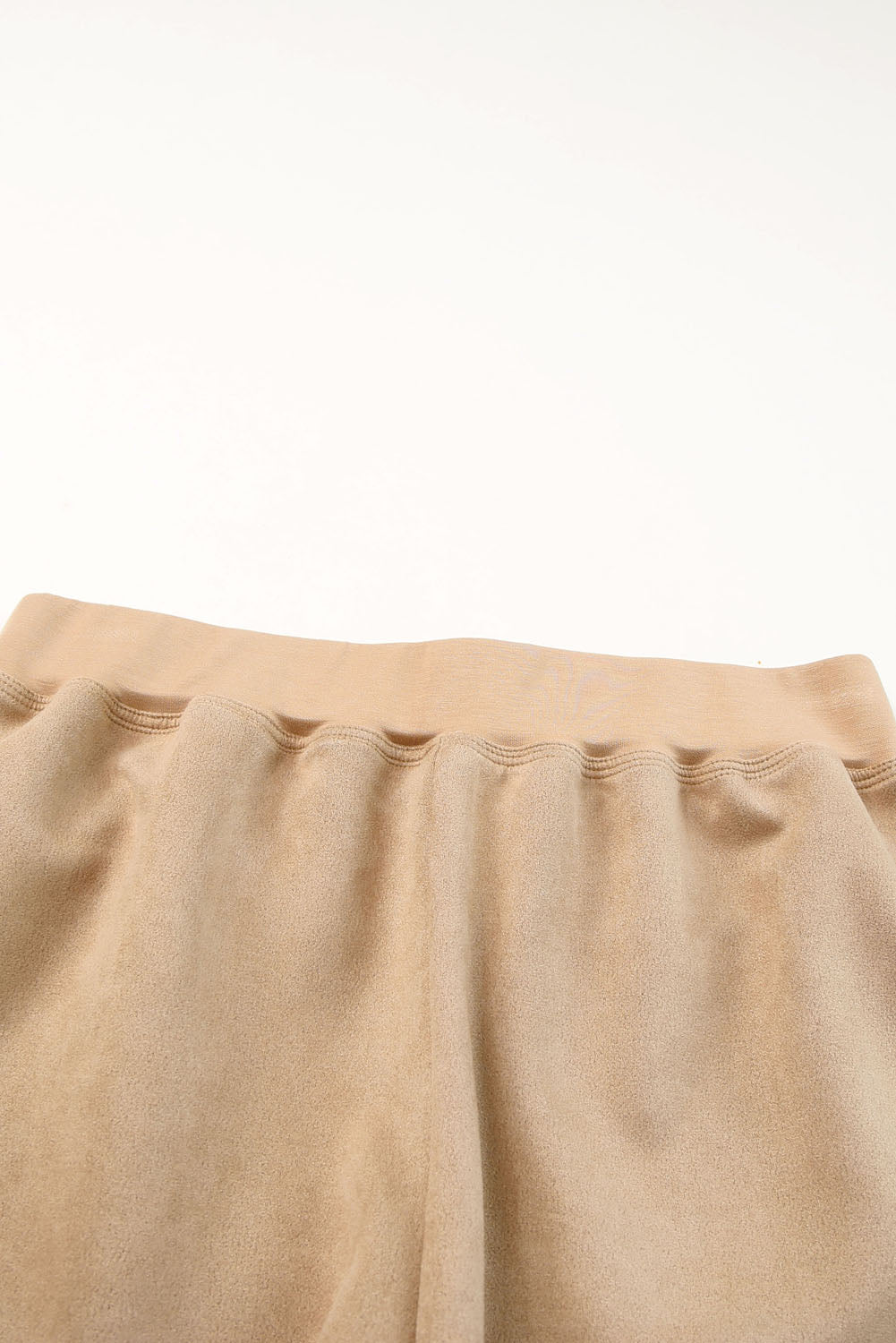 Khaki Piping Trim Long Sleeve Terry Shorts Set