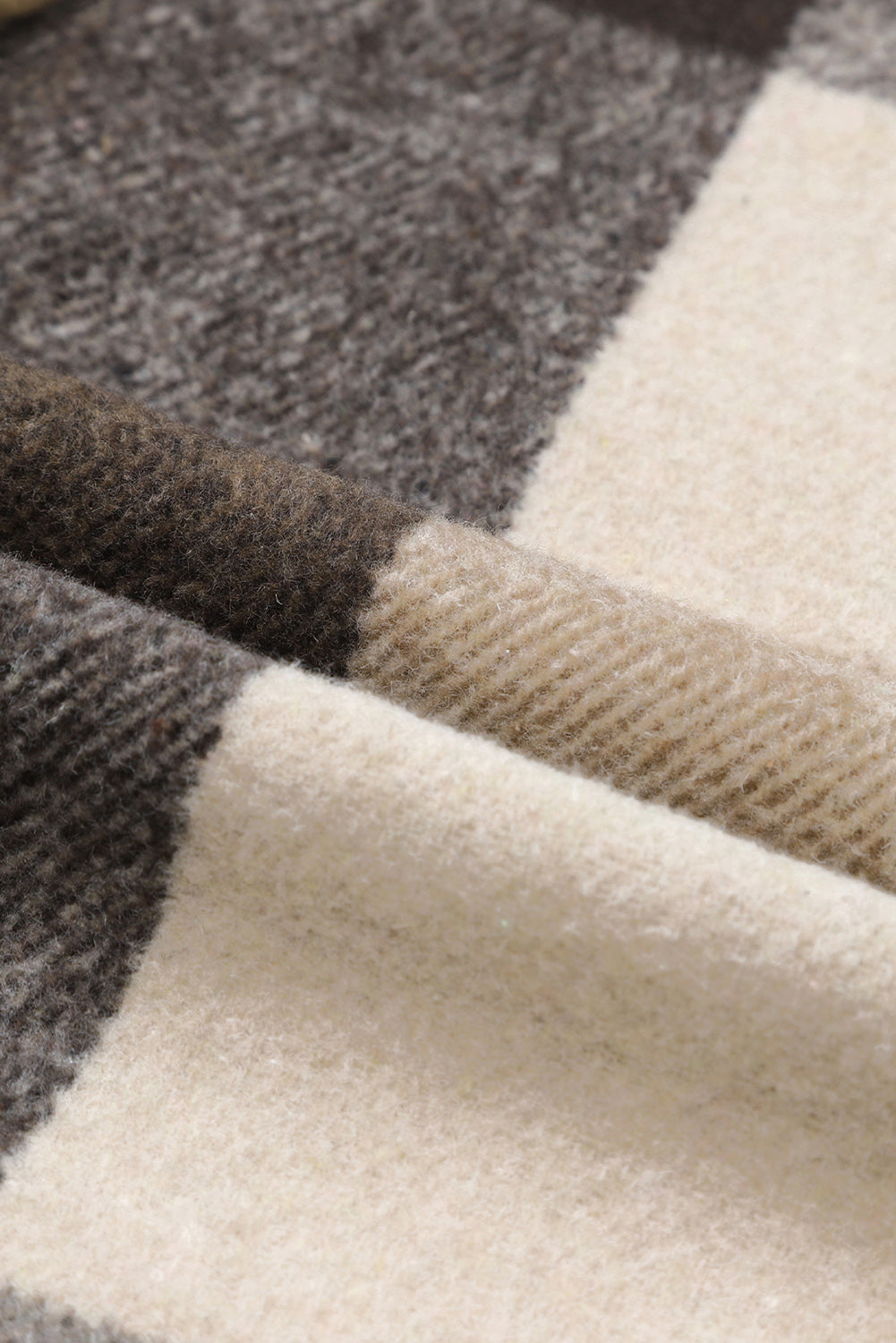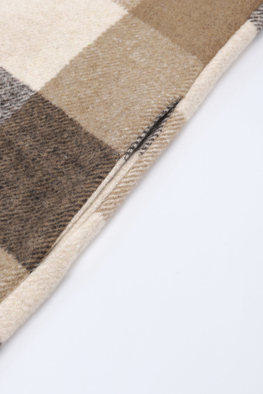 Khaki Plaid Button-Down Flap Pocket Long Shacket