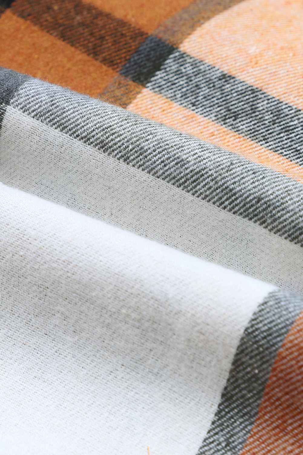 Khaki Plaid Pattern Collared Neck Ruffled Sleeve Shirt Dress